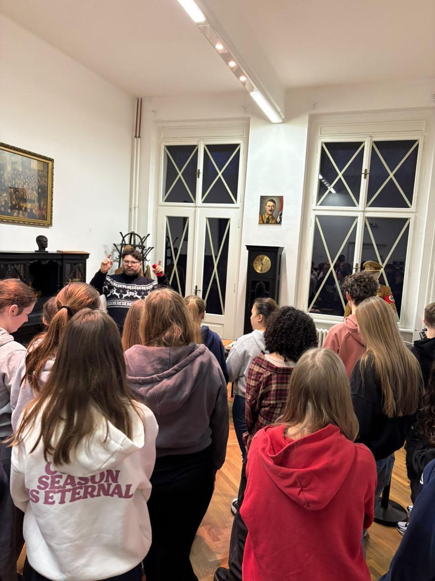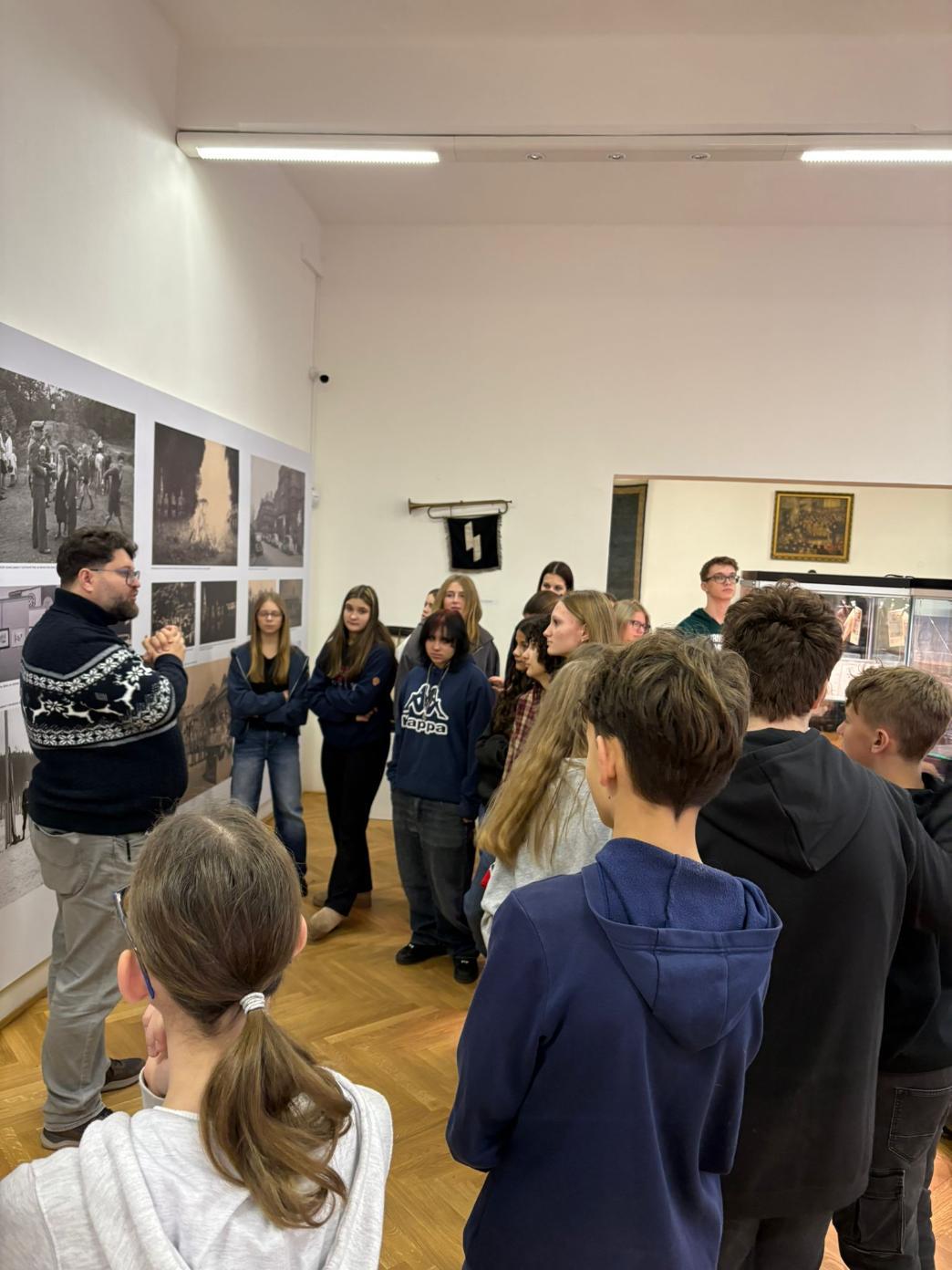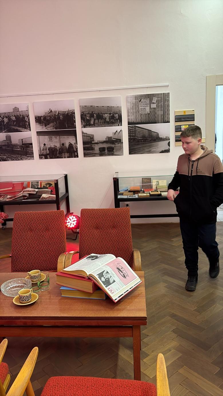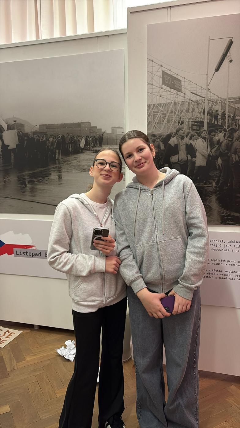 V pátek 12. prosince navštívili žáci 8. tříd Mostecké muzeum a galerii. V rámci výuky dějepisu si prohlédli výstavy věnované historii 20. století. Nejdříve se seznámili s životem lidí v Mostě během let 1939 až 1945, kdy toto území patřilo Německé říši a poté se přenesli do roku 1989, aby se dozvěděli o průběhu listopadových dní.