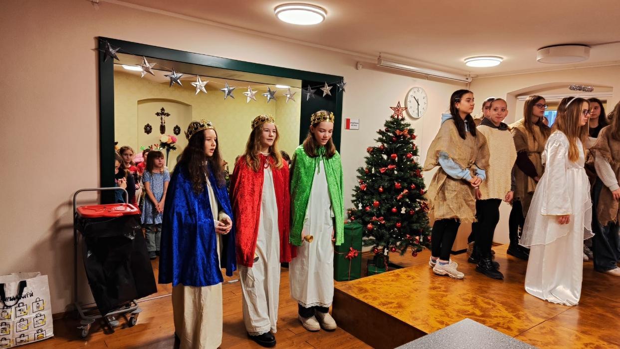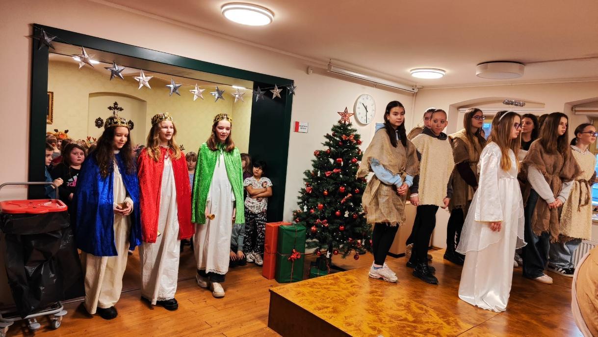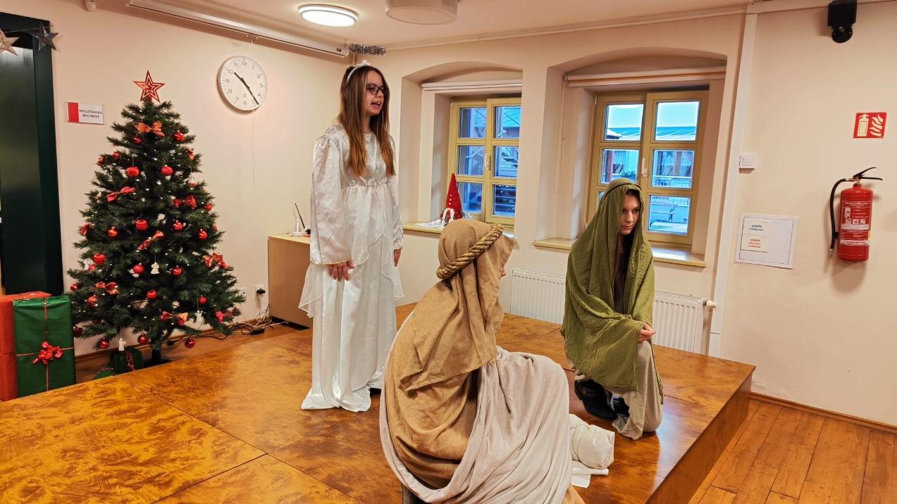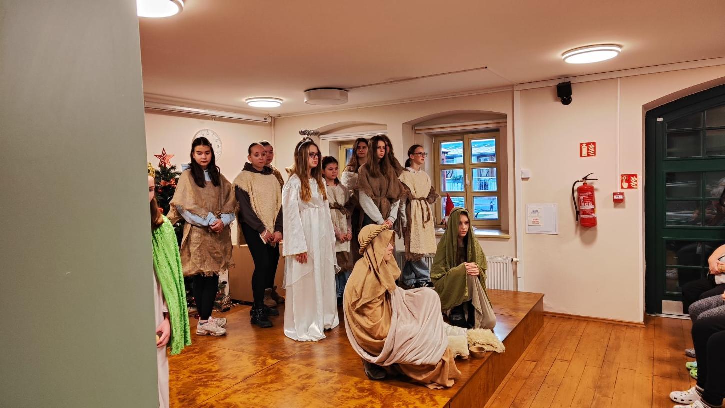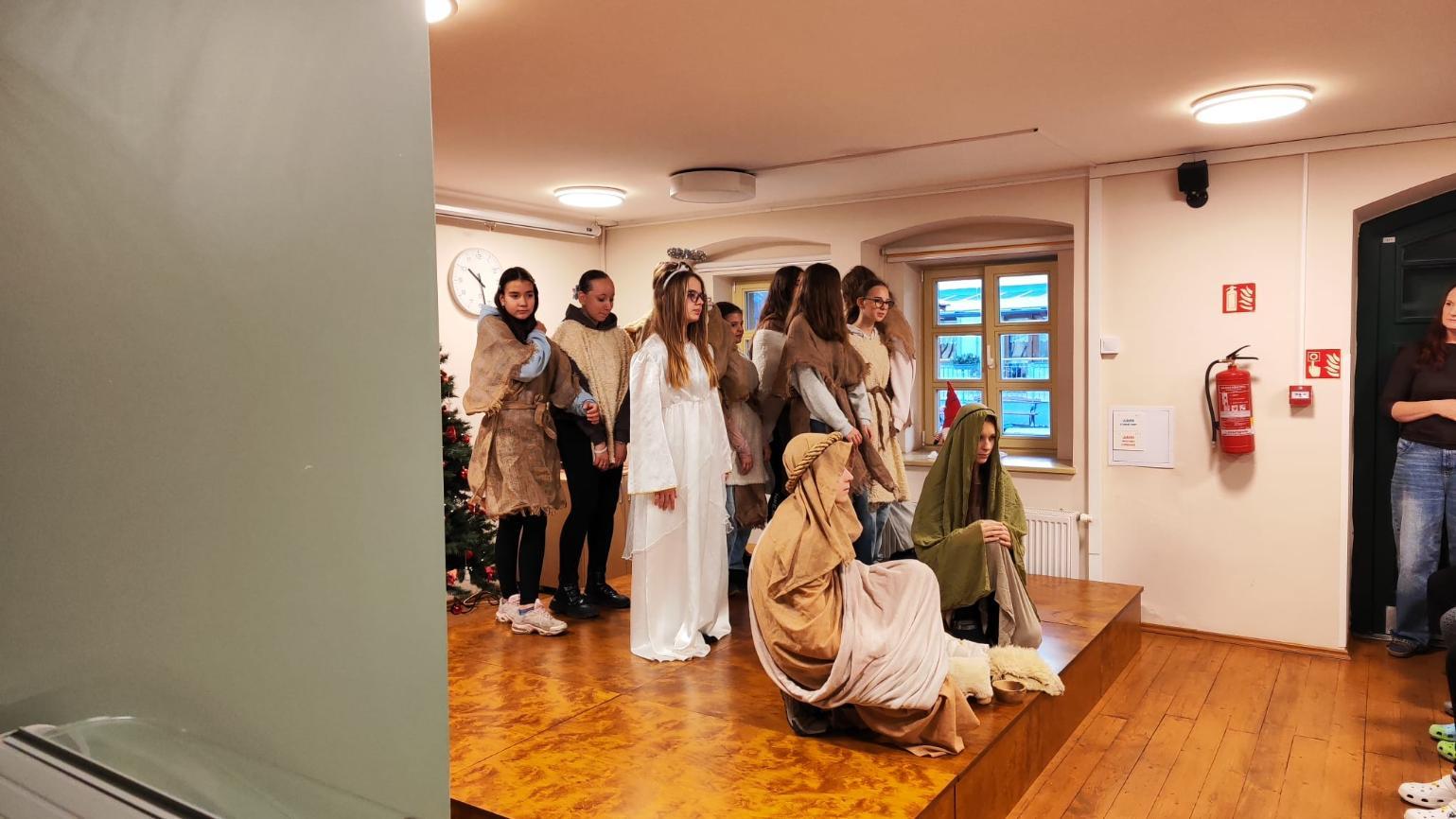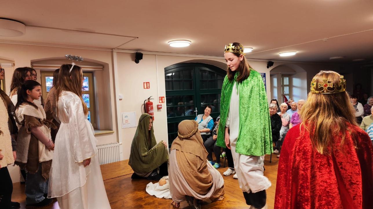 Ve středu 10. prosince naši žáci v rámci akce Dobrý skutek navštívili Domov seniorů v Žatci. Pro místní obyvatele si připravili malé předvánoční vystoupení. Nejdříve se představili naši nejmladší zástupci (žáci 1.A), kteří pod vedením paní učitelek Lenky Duškové a Marcely Holotové zazpívali vánoční koledy a písníčky Ve druhé části pak žáci převážně sedmých a osmých tříd zahráli pásmo Betlém, které nacvičili s pomocí paní učitelky Jroslavy Kumstýřové.