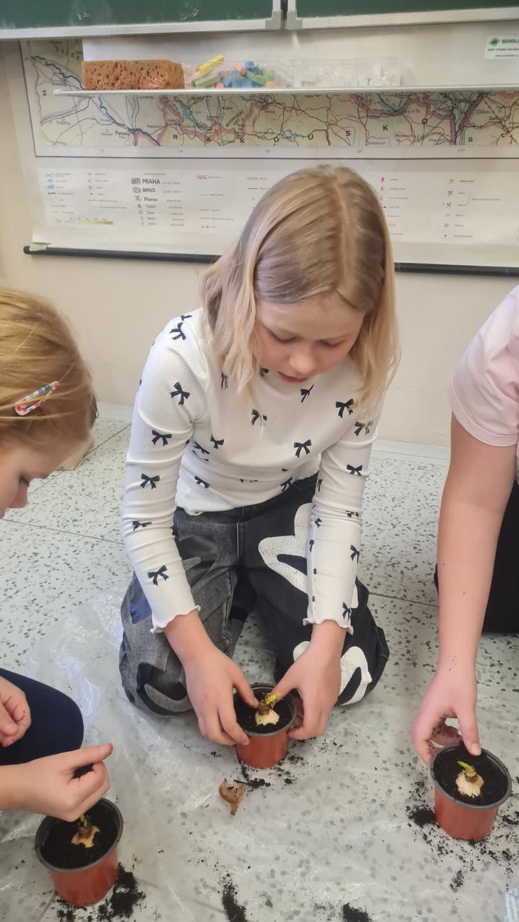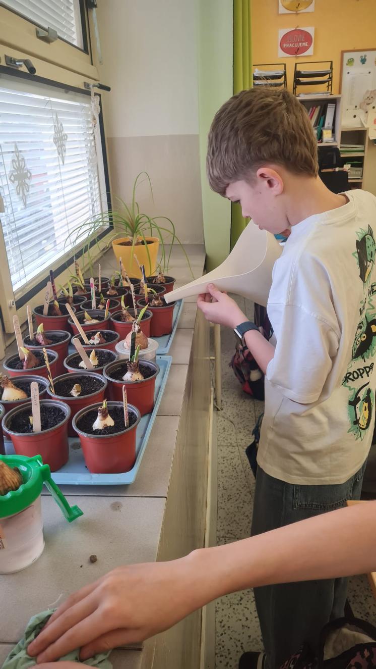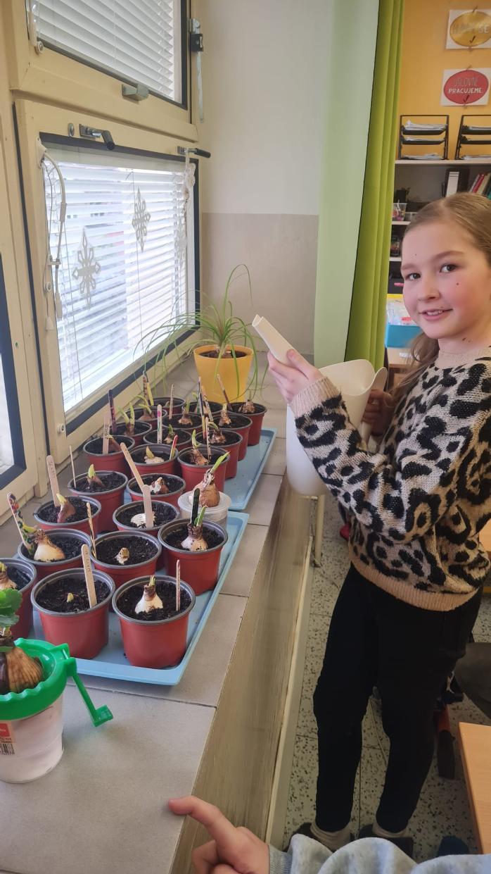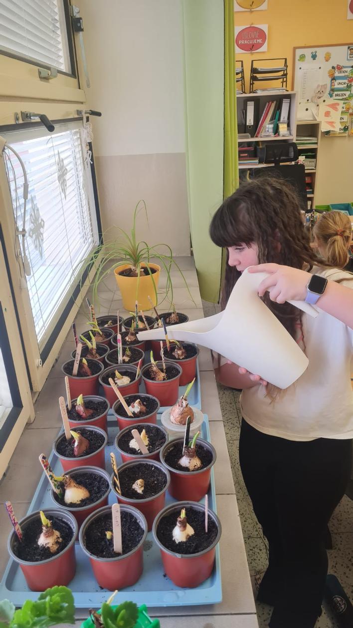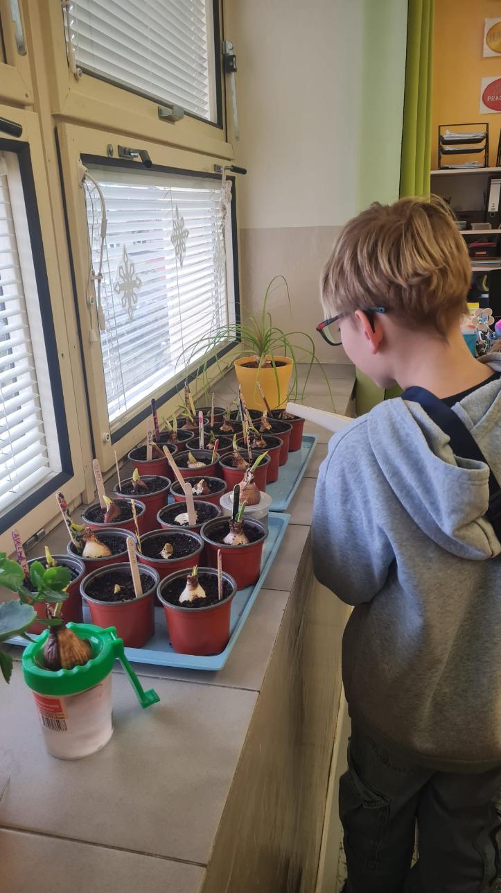 Začínající jaro se promítlo do výuky žáků 4.A. V rámci hodin si každý žák zasadil cibulku jarní květiny a poté si v hodině výtvarné výchovy tuto květinu nakreslil. Nyní se společně o ně starají, aby si ověřili, jak se jim obrázek povedly.