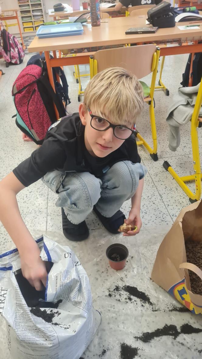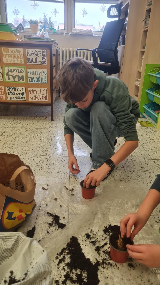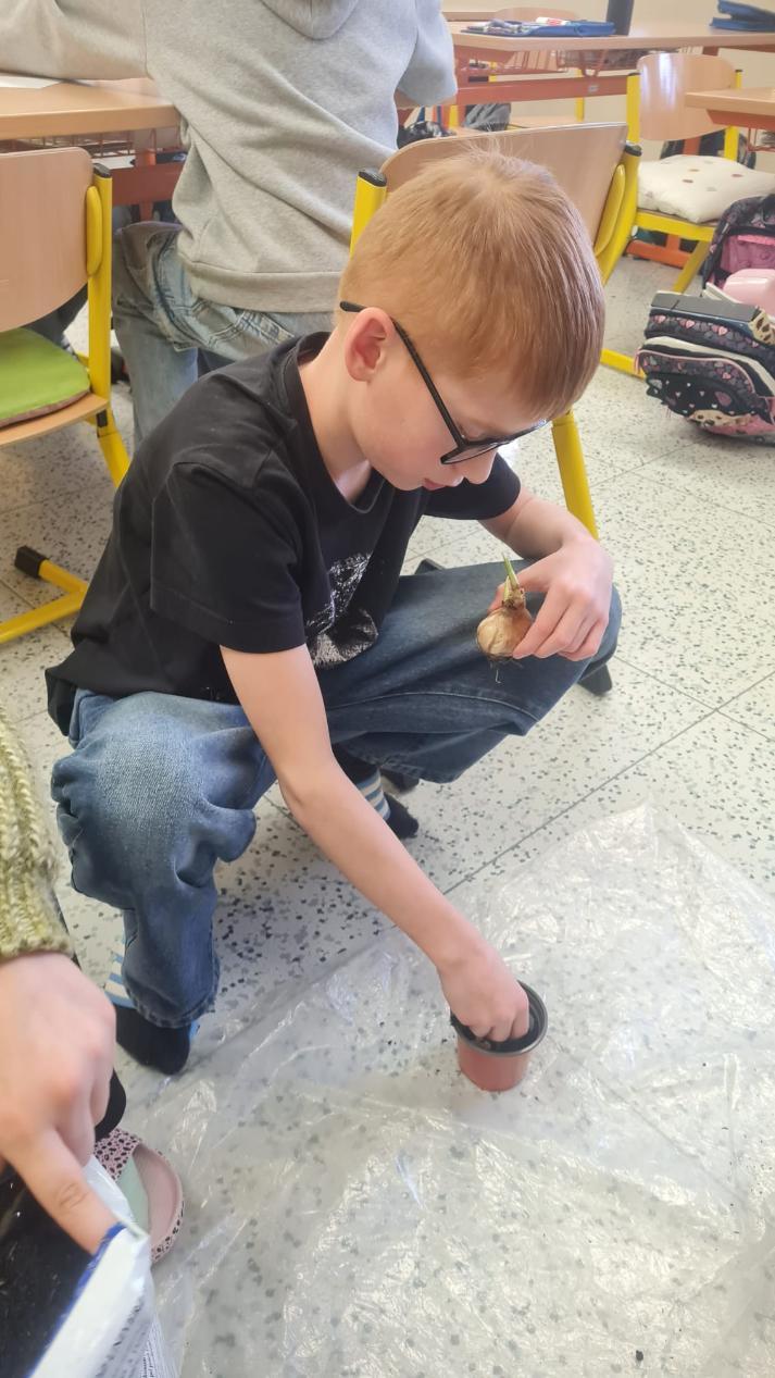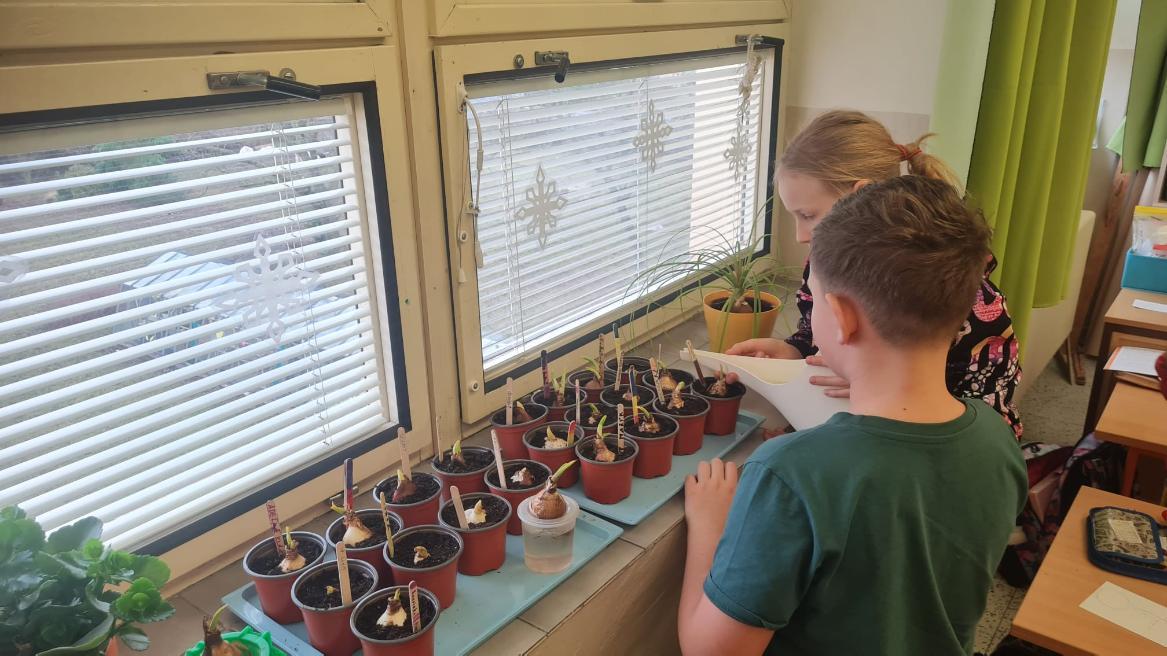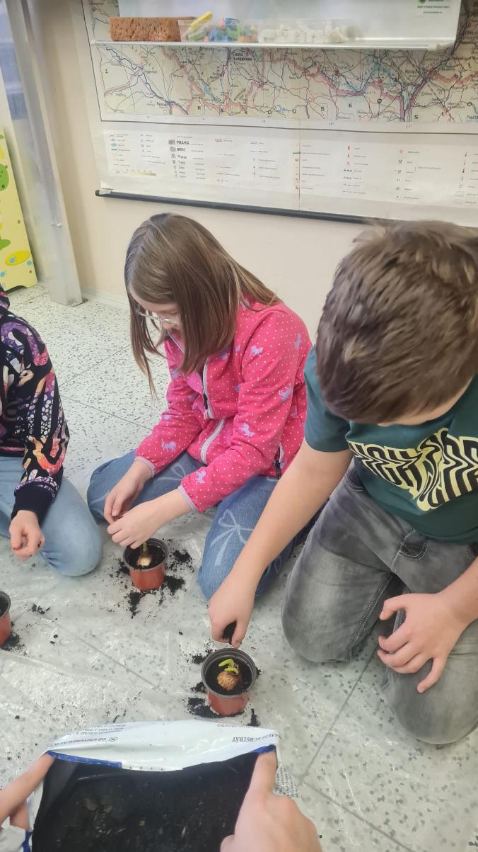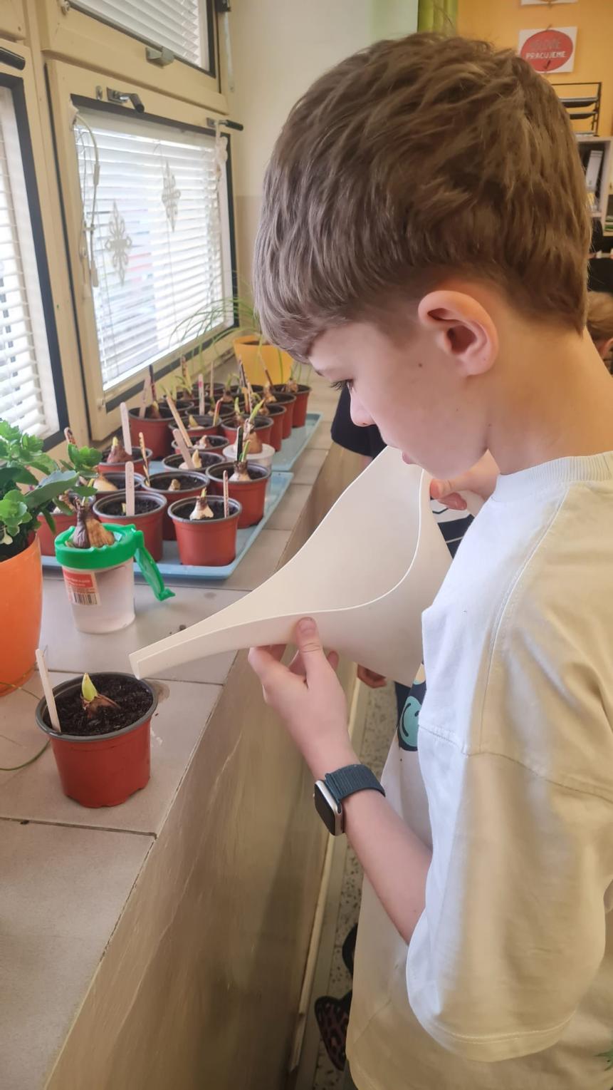 Začínající jaro se promítlo do výuky žáků 4.A. V rámci hodin si každý žák zasadil cibulku jarní květiny a poté si v hodině výtvarné výchovy tuto květinu nakreslil. Nyní se společně o ně starají, aby si ověřili, jak se jim obrázek povedly.
