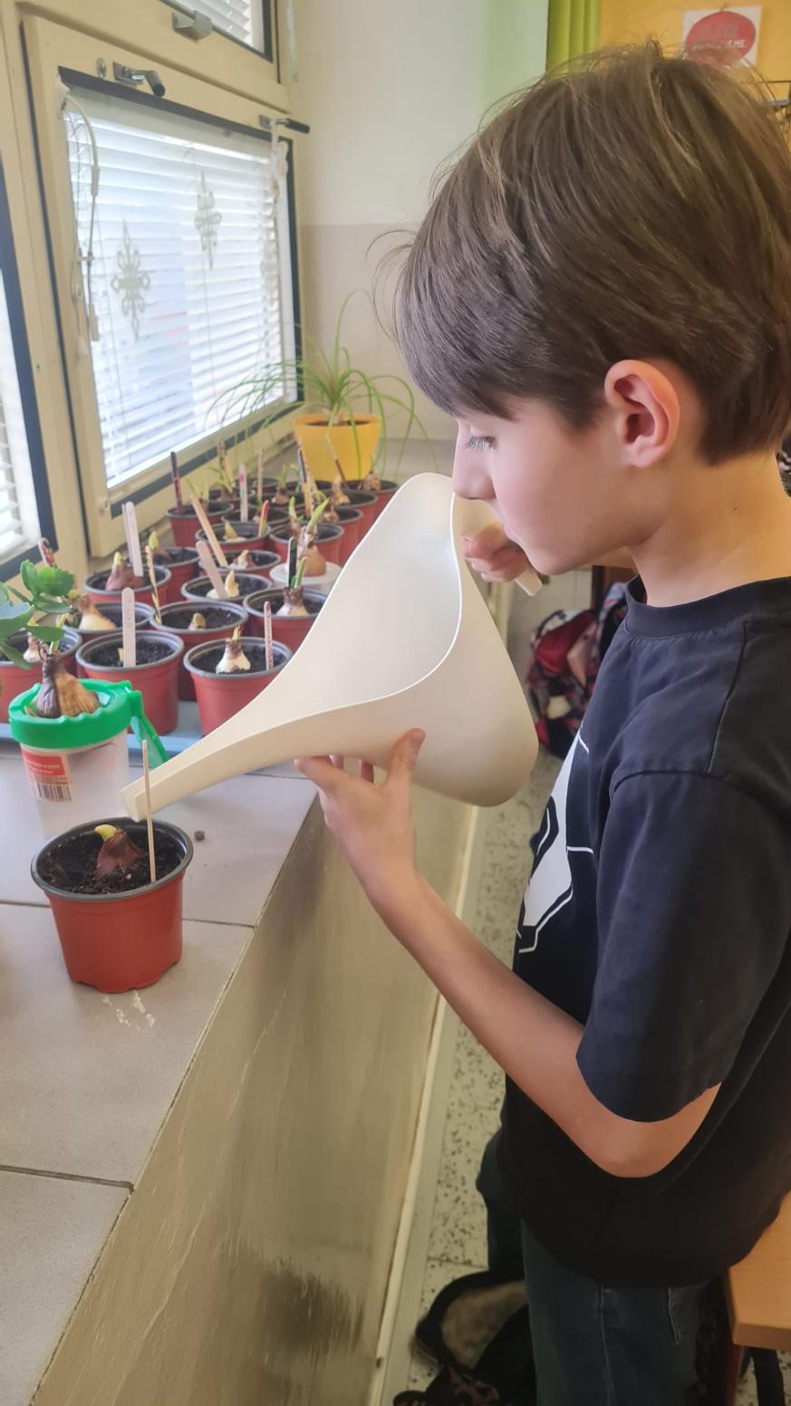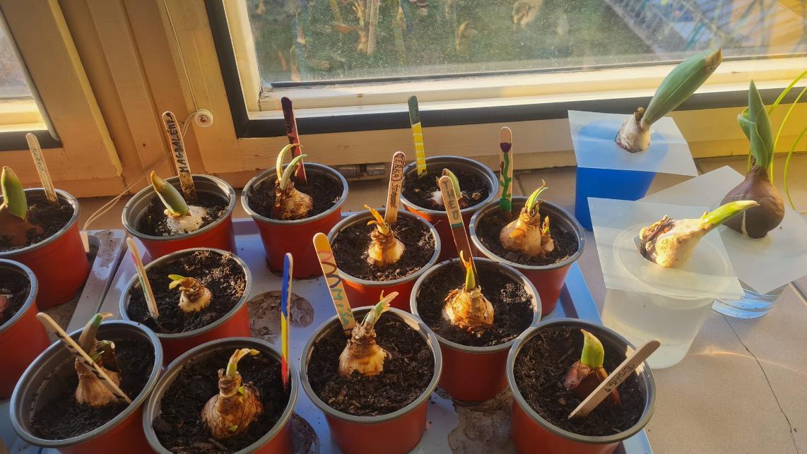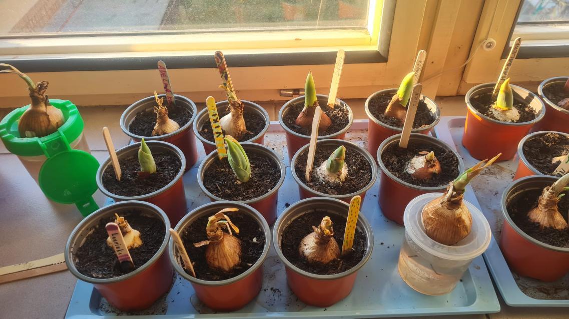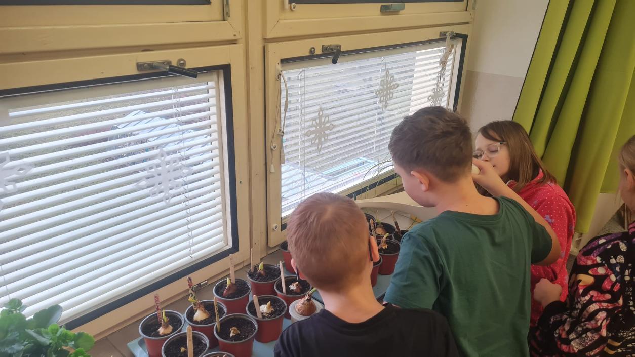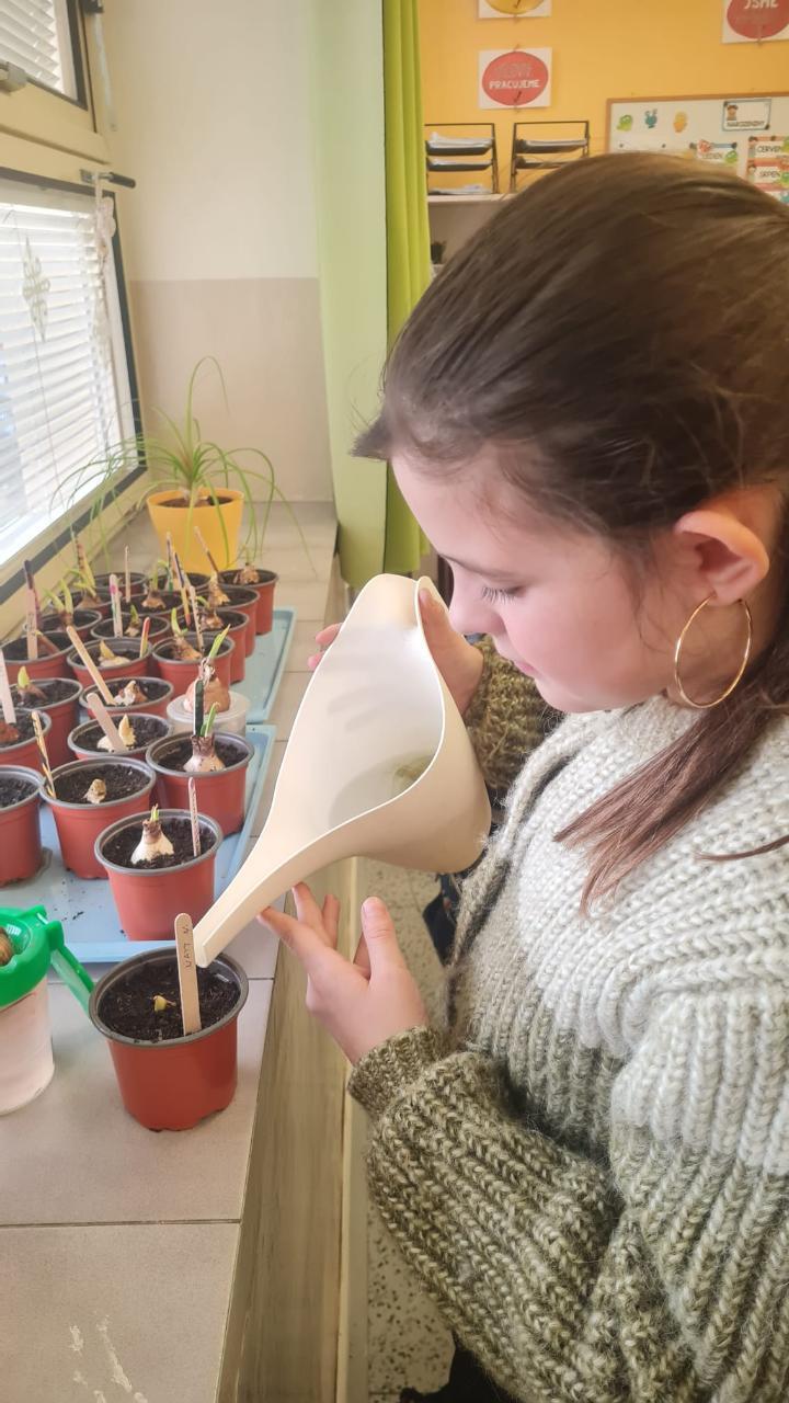 Začínající jaro se promítlo do výuky žáků 4.A. V rámci hodin si každý žák zasadil cibulku jarní květiny a poté si v hodině výtvarné výchovy tuto květinu nakreslil. Nyní se společně o ně starají, aby si ověřili, jak se jim obrázek povedly.