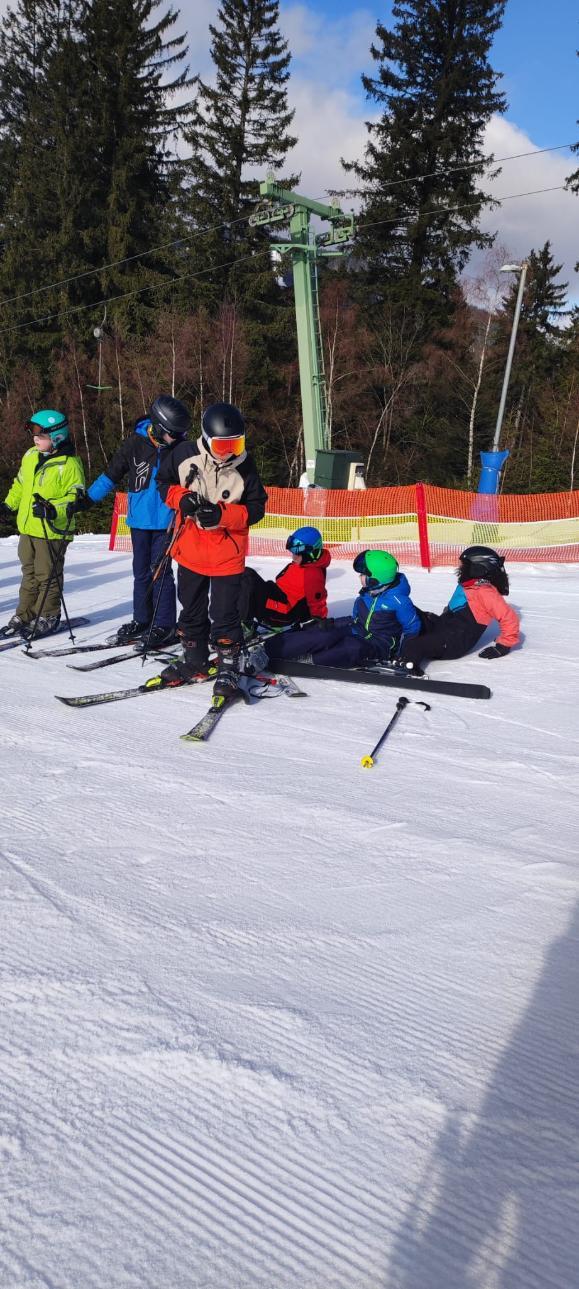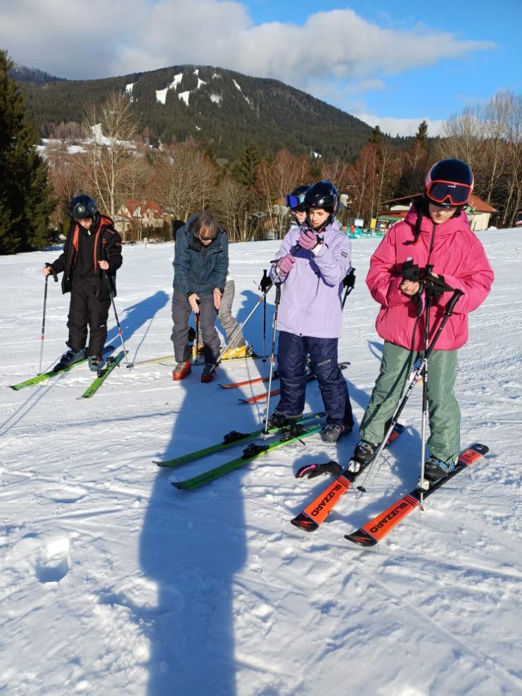 V neděli už začal vlastní výcvik. Někteří žáci se postavili na lyže poprvé v životě. Ti zkušenější se seznámili s celou sjezdovkou.