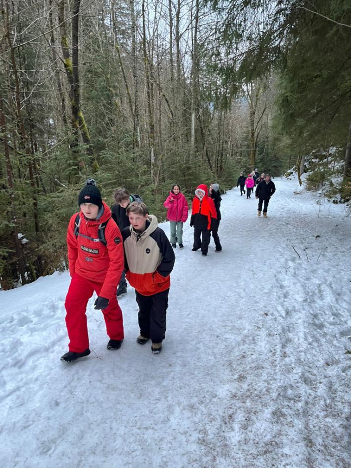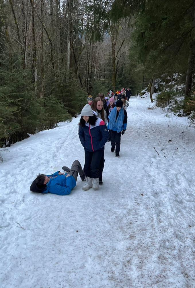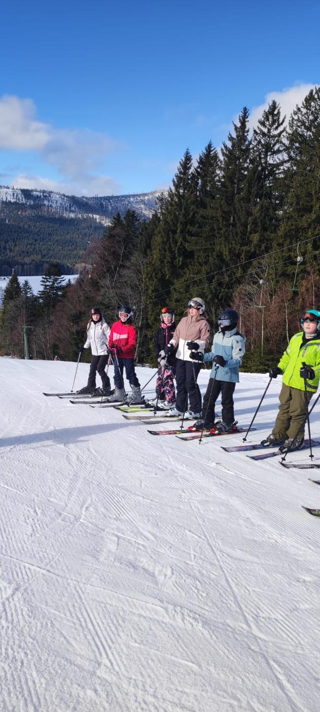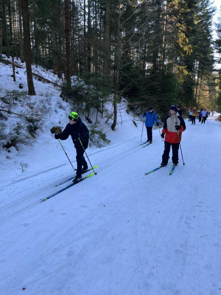 Od soboty 7. února probíhá lyžařský výcvik. Více než dvacítka převážně žáků sedmách tříd vyrazila do šumavské Železné Rudy. Tradičním dopravním prostředkem jim je vlak. Mezizastávkou na cestě je Plzeň. Kde si po návštěvě hlavního náměstí dali žáci přestávku na občersrtvení.