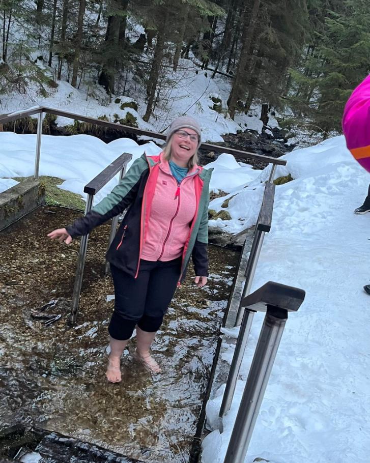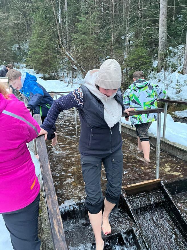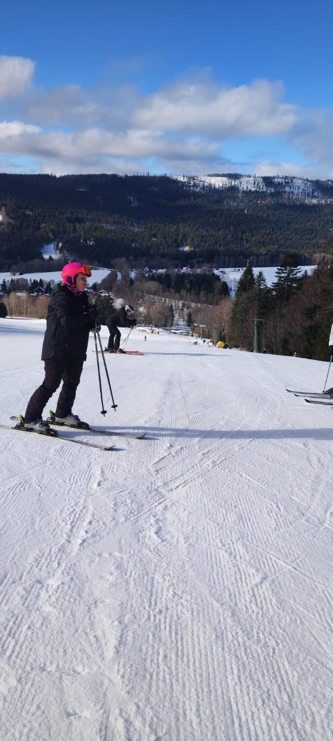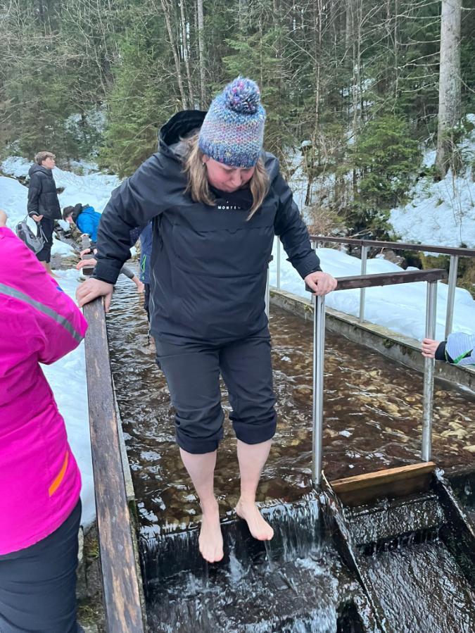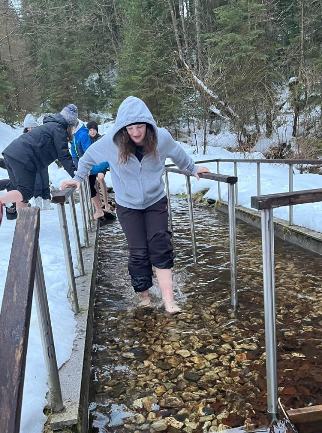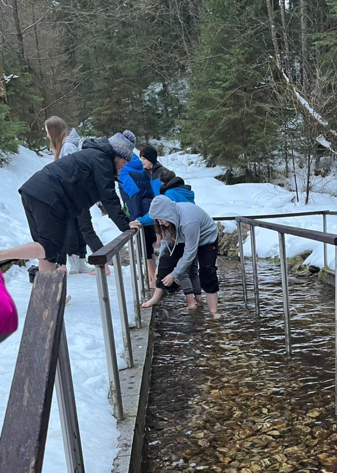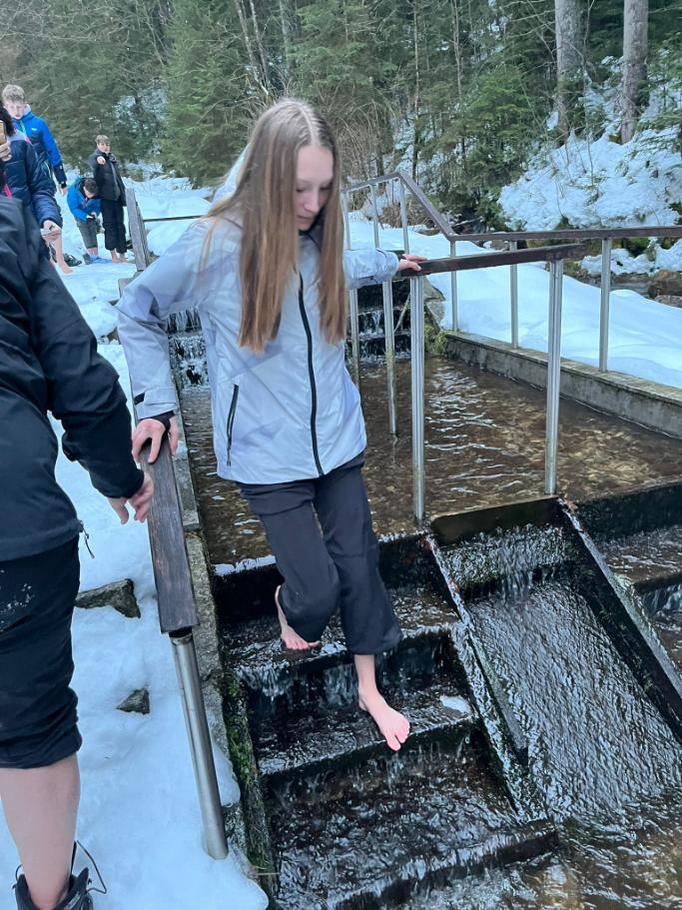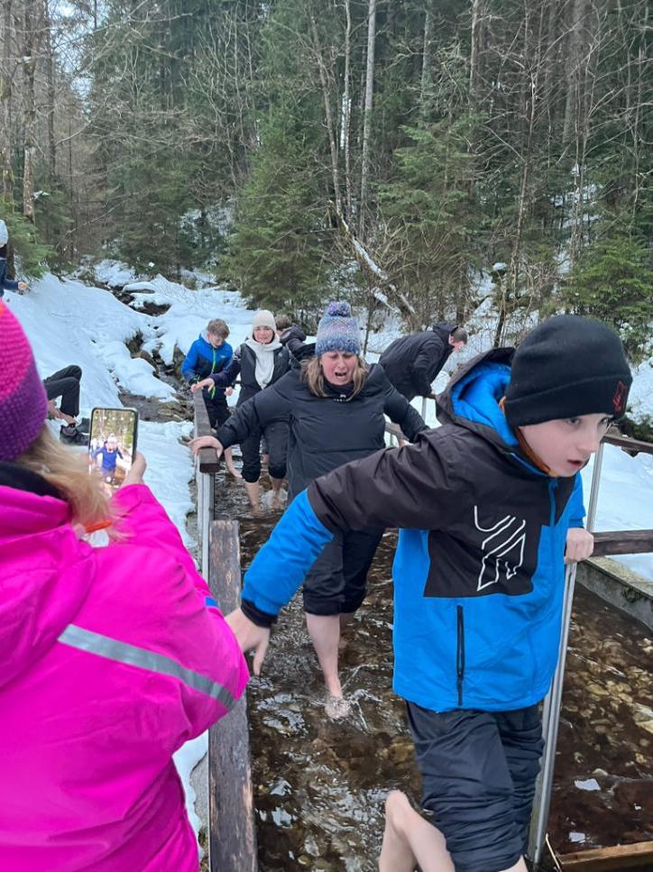 K pondělnímu lyžování nám přálo počasí. A tak jsme si mohli dopřát i trochu otužování v horských lázních.