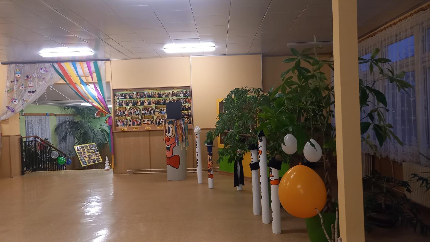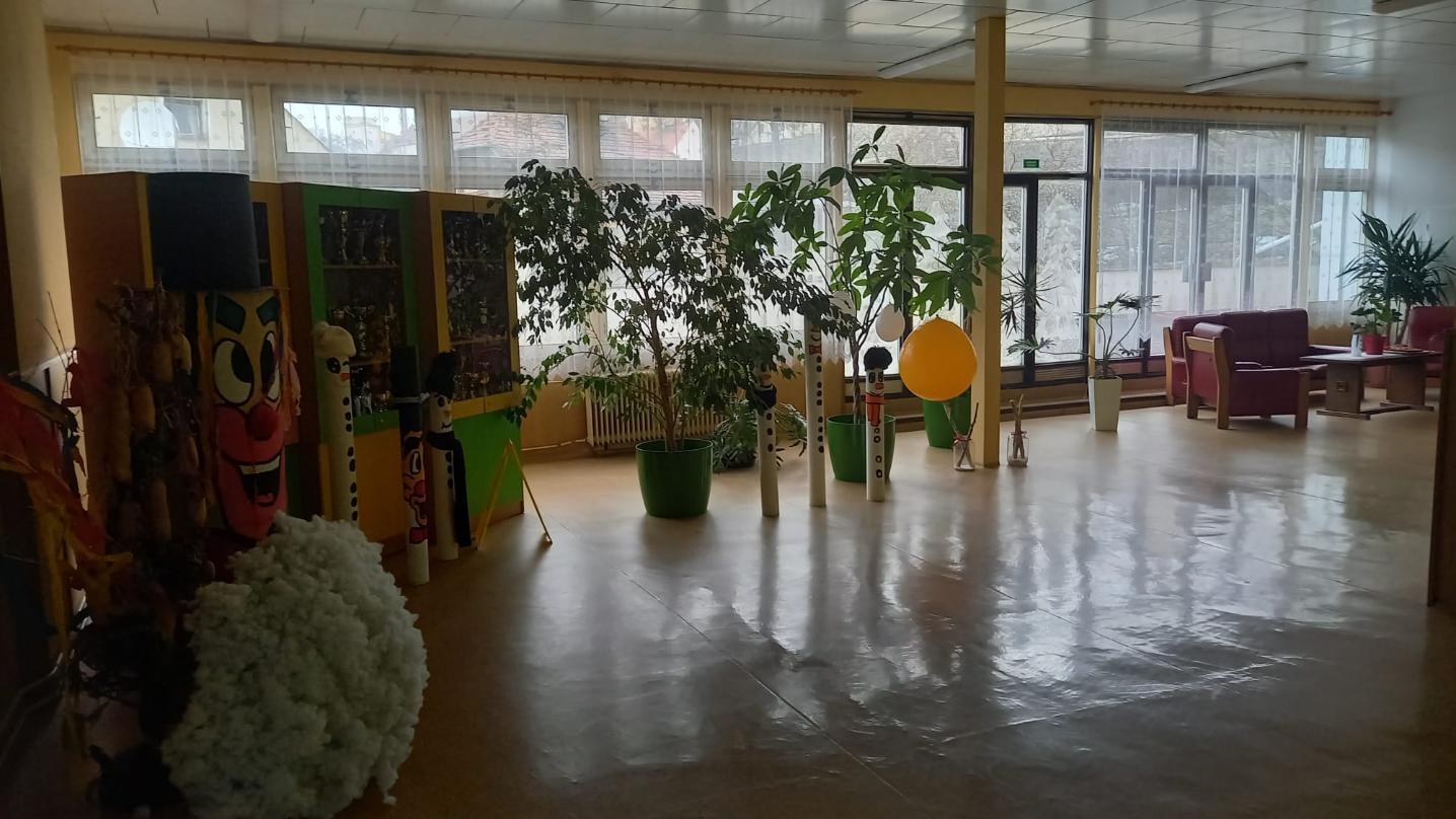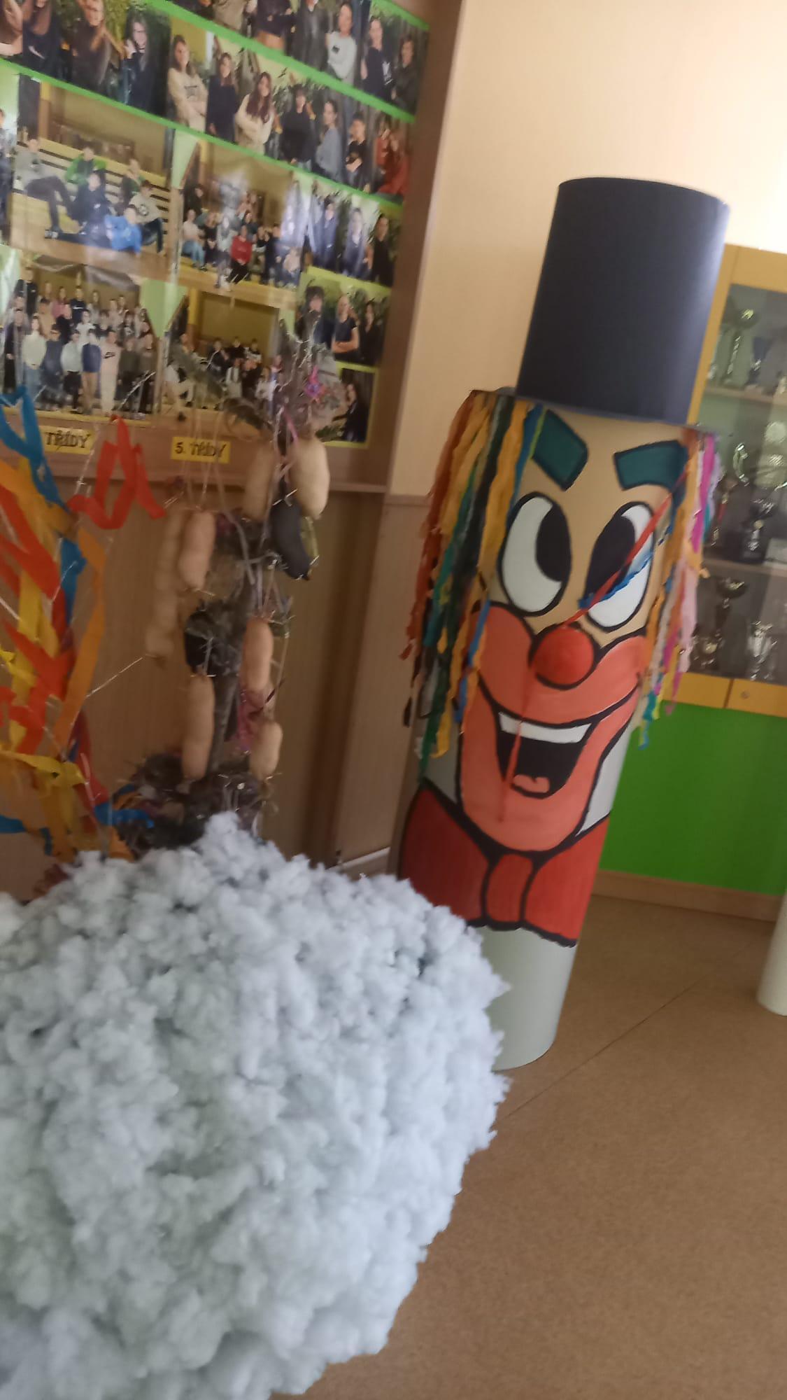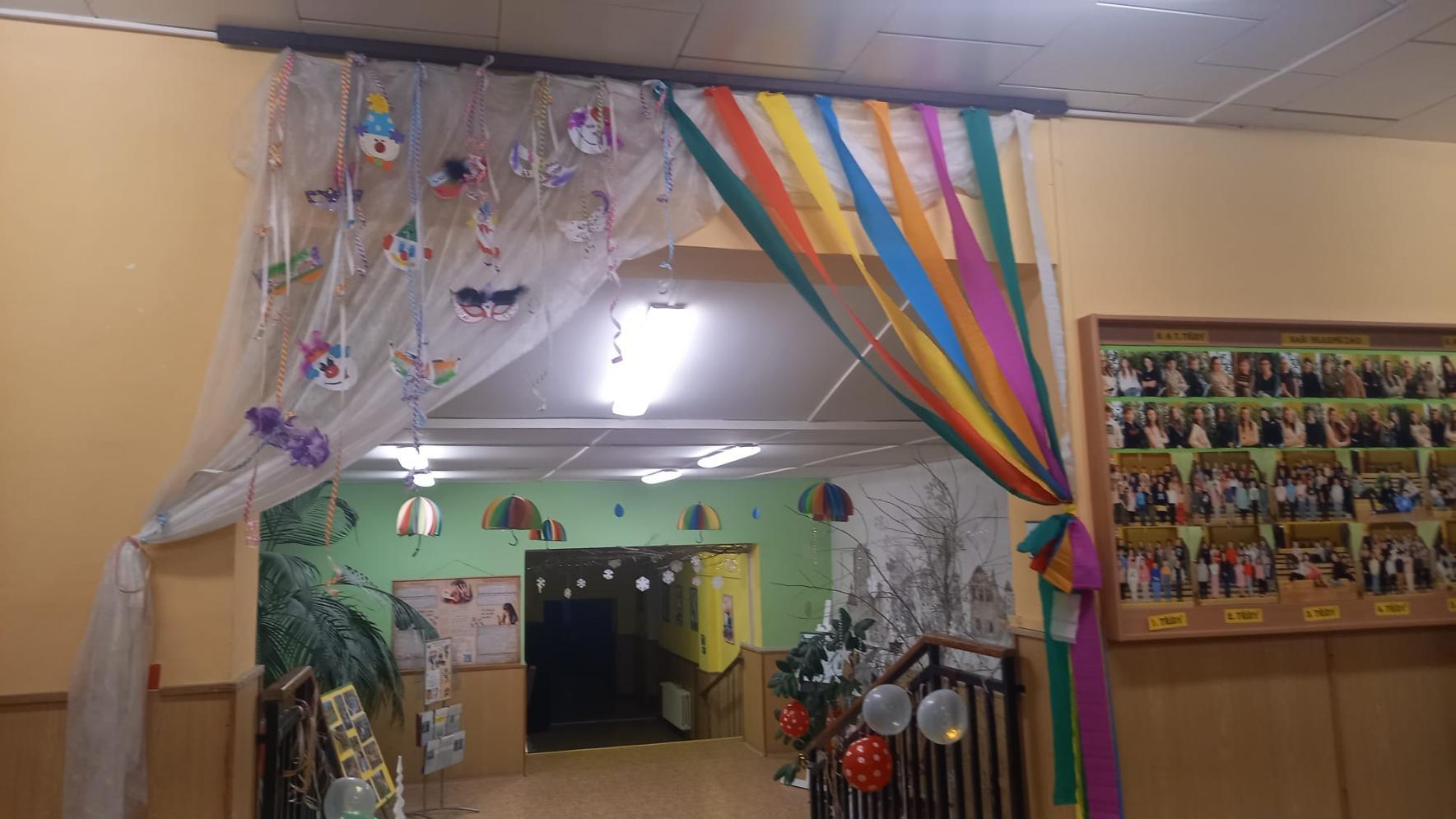 Prostory vstupu do školy vyzdobili žáci svými výrobky s karnevalovou tématikou.