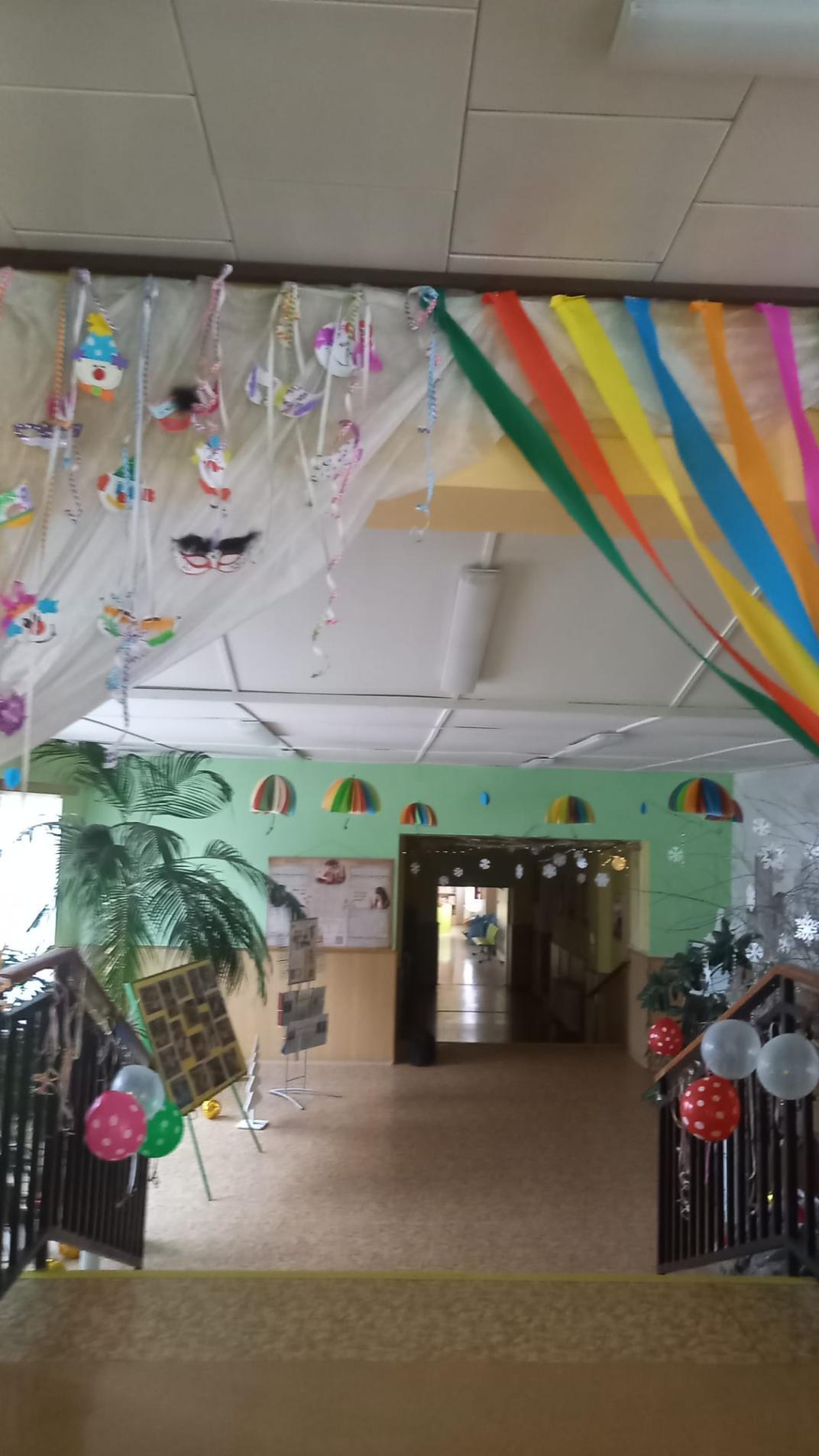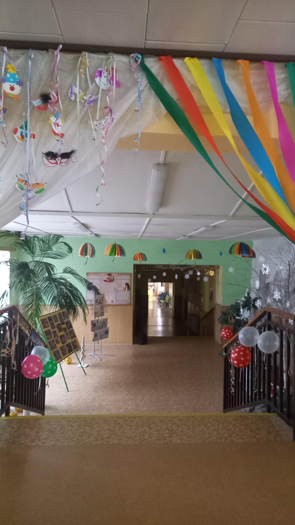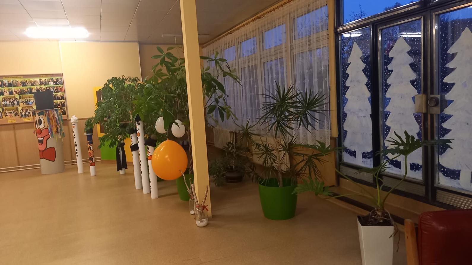 Prostory vstupu do školy vyzdobili žáci svými výrobky s karnevalovou tématikou.