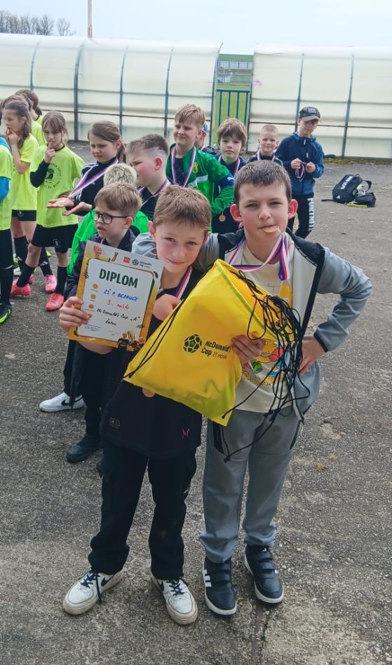 Ve středu 15. a čtvrtek 16. dubna se konalo oblastní kolo tradiční fotbalové soutěže žáků 1. stupně. Většího úspěchu dosáhli naši žáci ve středu v mladší kategorii - vybojovali pěkné 3. místo a tím si zajistili postup do okresního kola. Jejich starším spolužákům se ve čtvrtek dařilo méně, obsadili místo šesté. Všem žákům děkujeme za reprezentaci školy a mladším žákům držíme palce do dalších zápasů.