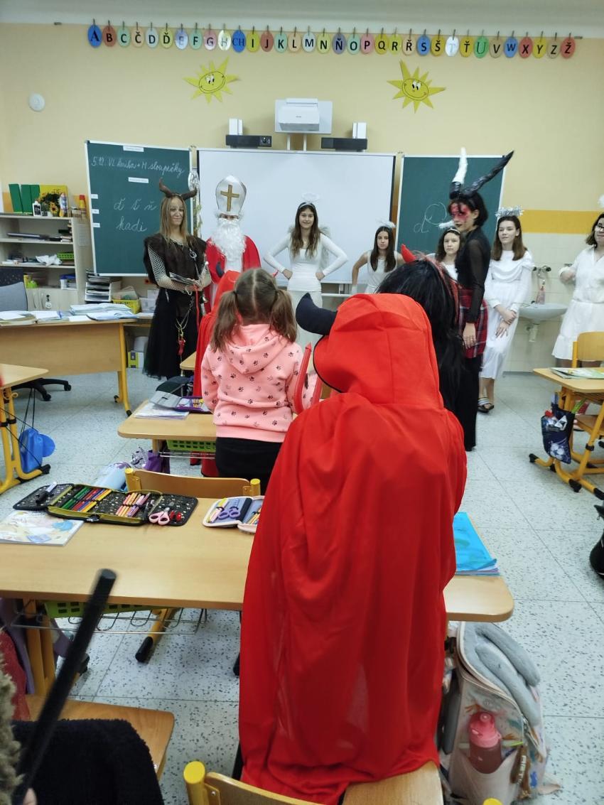 V pátek 5. prosince se celá škola stala místem setkání čertů, Mikulášů a andělů.