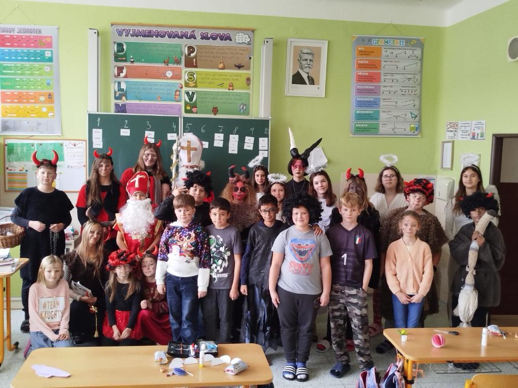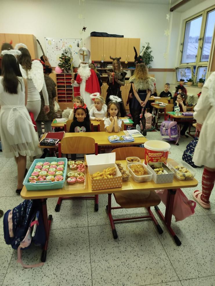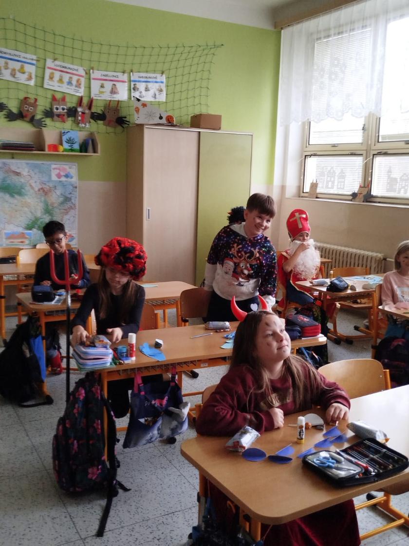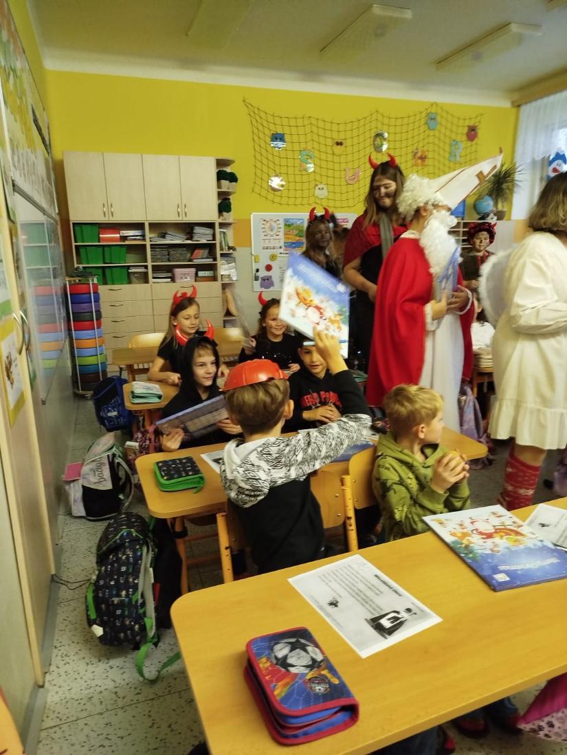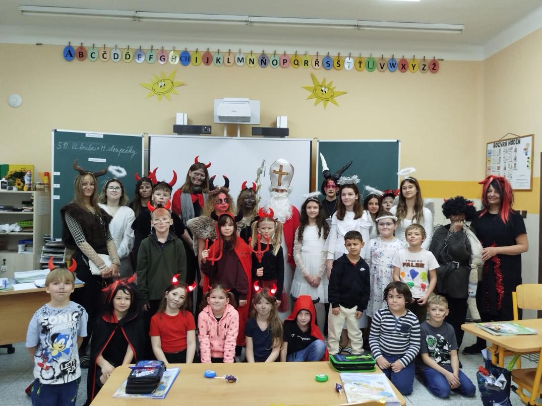 V pátek 5. prosince se naše škola stala místem srazu malých i velkých čertů, andělů a samozřejmě nemohlo chybět ani několik Mikulášů. Pořadateli tohoto setkání byli členové žákovské rady za významné pomoci paní učitelky Kumstýřové. Vše již začalo ráno ve školní družině. během dopoledne každou třídu prvního stupně poté navštívil Mikuláš se svou družinou, aby dali malým hříšníkům šanci k jejich nápravě. Zároveň se tento den nesl v duchu vánočních ponožek. V několika třídách v tento den probíhaly zároveň vánoční dílny, na kterých žáci vyráběli výrobky pro nastávající Vánoční trhy. Nálada celého dne se přenesla i do školní jídelny, kde jako zákusek čekala na strávníky malá mikulášská figurka.