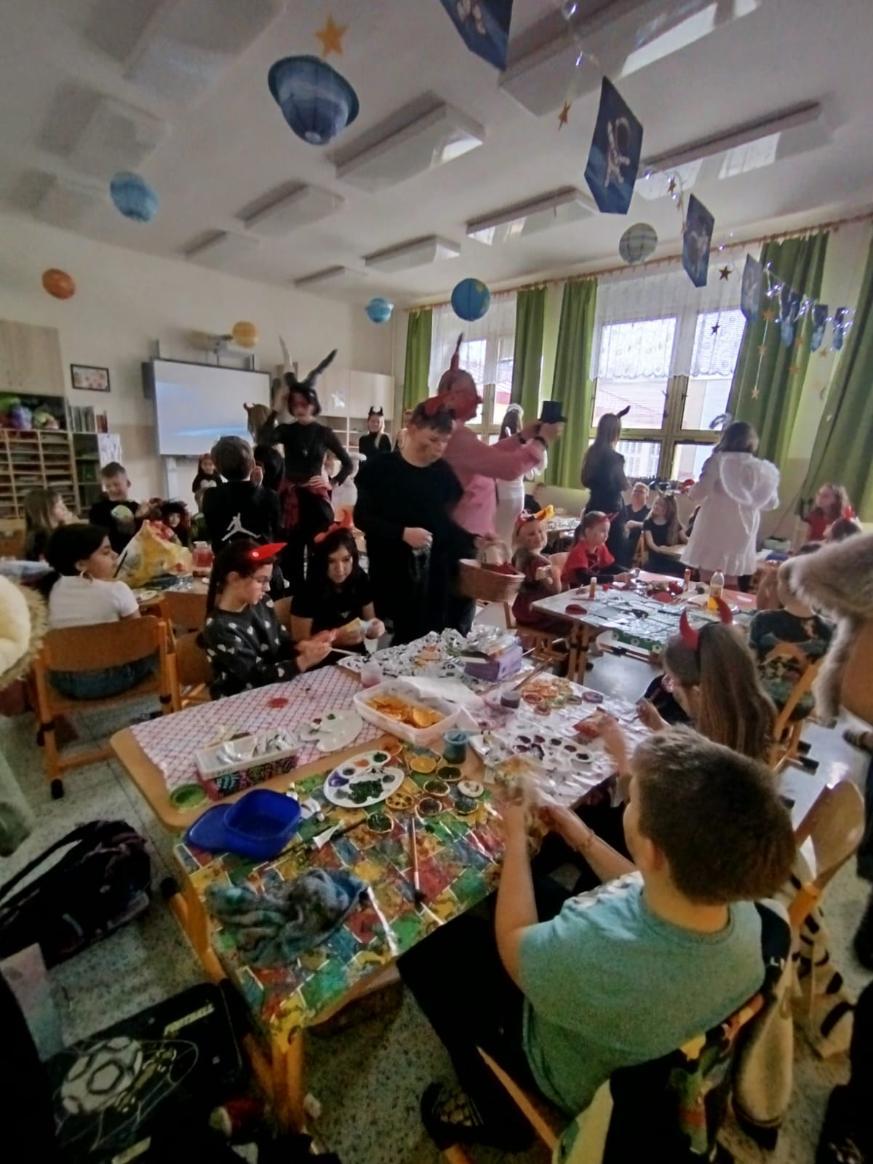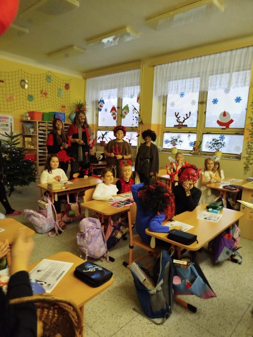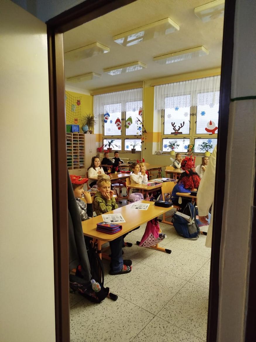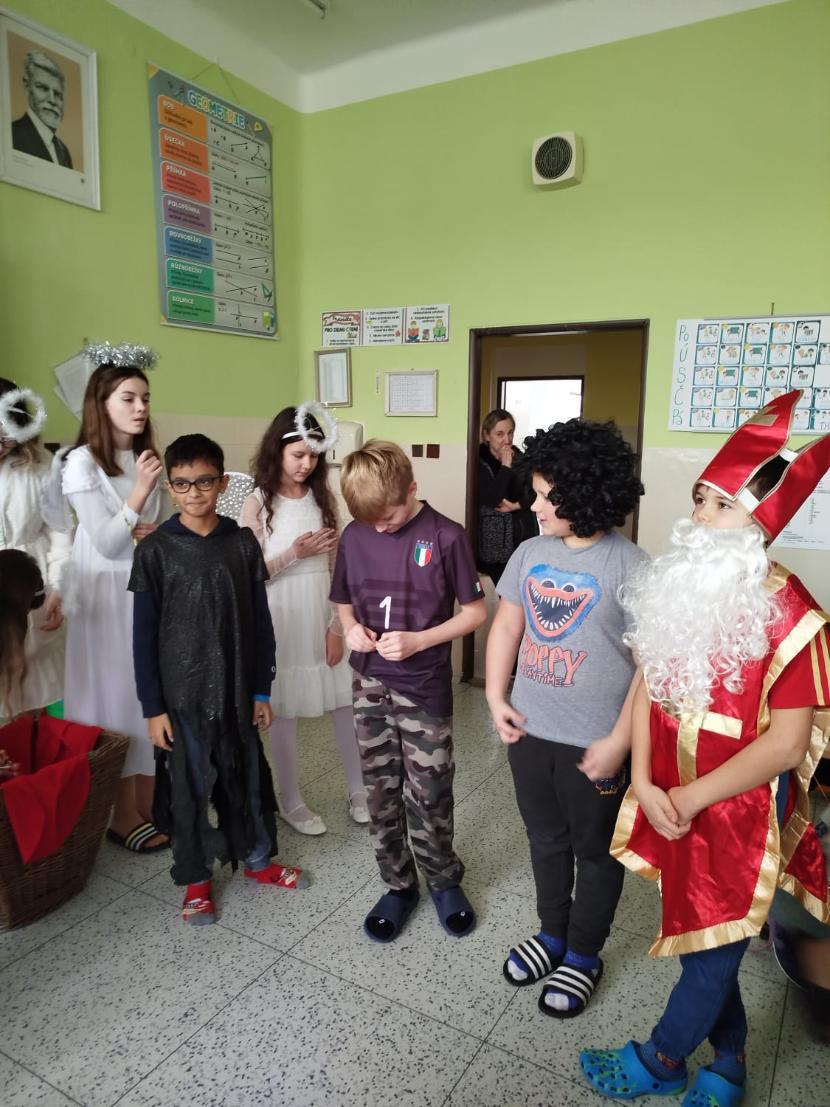 V pátek 5. prosince se naše škola stala místem srazu malých i velkých čertů, andělů a samozřejmě nemohlo chybět ani několik Mikulášů. Pořadateli tohoto setkání byli členové žákovské rady za významné pomoci paní učitelky Kumstýřové. Vše již začalo ráno ve školní družině. během dopoledne každou třídu prvního stupně poté navštívil Mikuláš se svou družinou, aby dali malým hříšníkům šanci k jejich nápravě. Zároveň se tento den nesl v duchu vánočních ponožek. V několika třídách v tento den probíhaly zároveň vánoční dílny, na kterých žáci vyráběli výrobky pro nastávající Vánoční trhy. Nálada celého dne se přenesla i do školní jídelny, kde jako zákusek čekala na strávníky malá mikulášská figurka.
