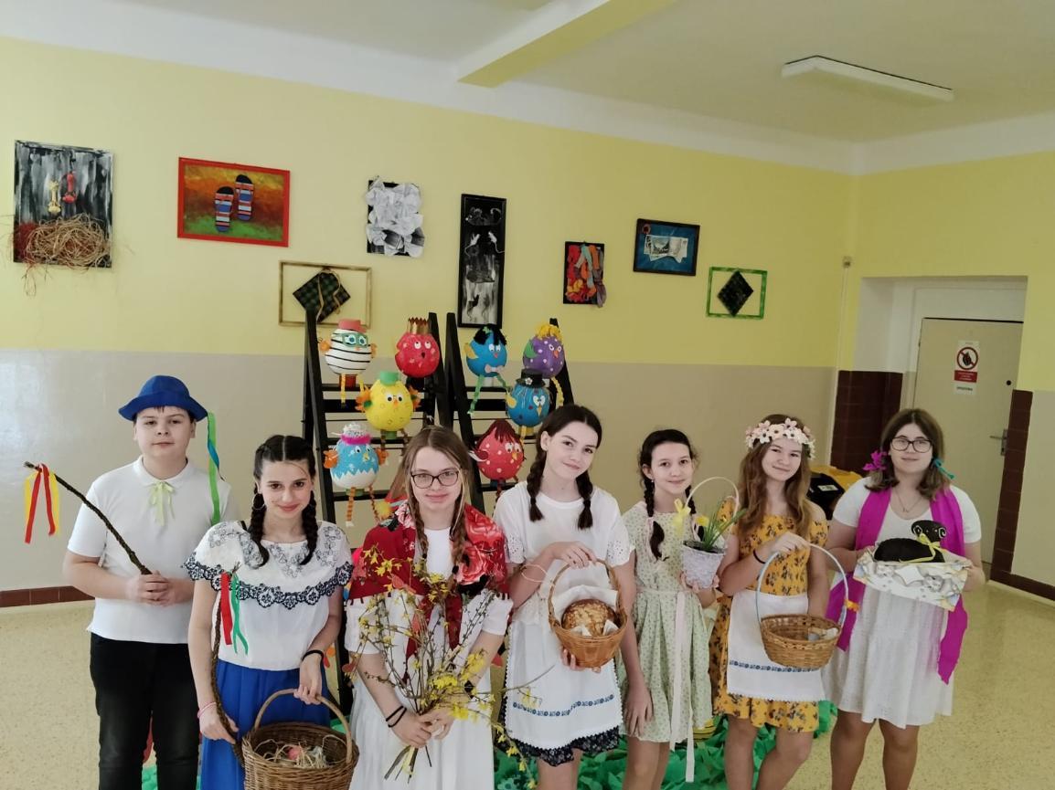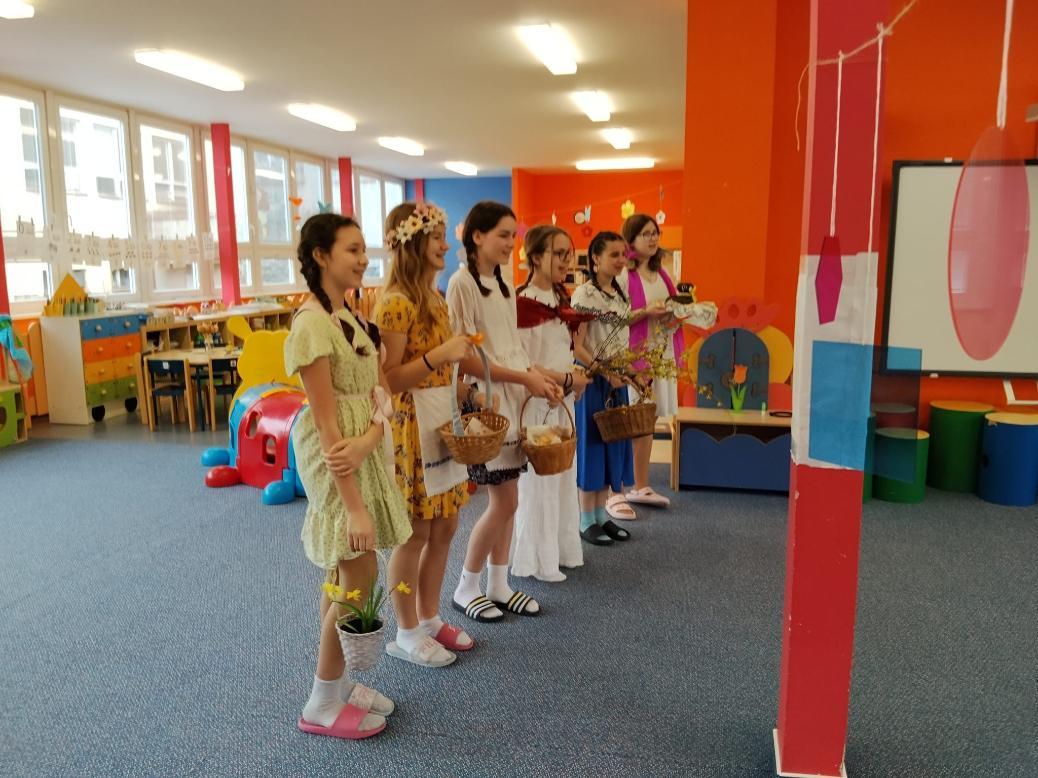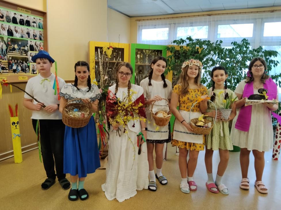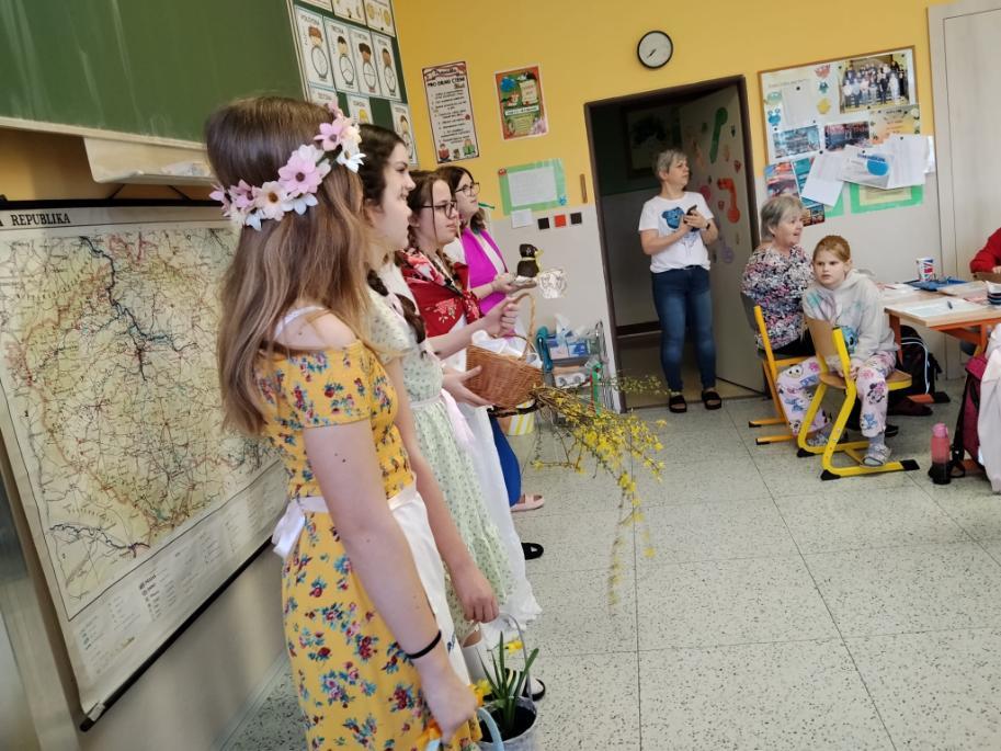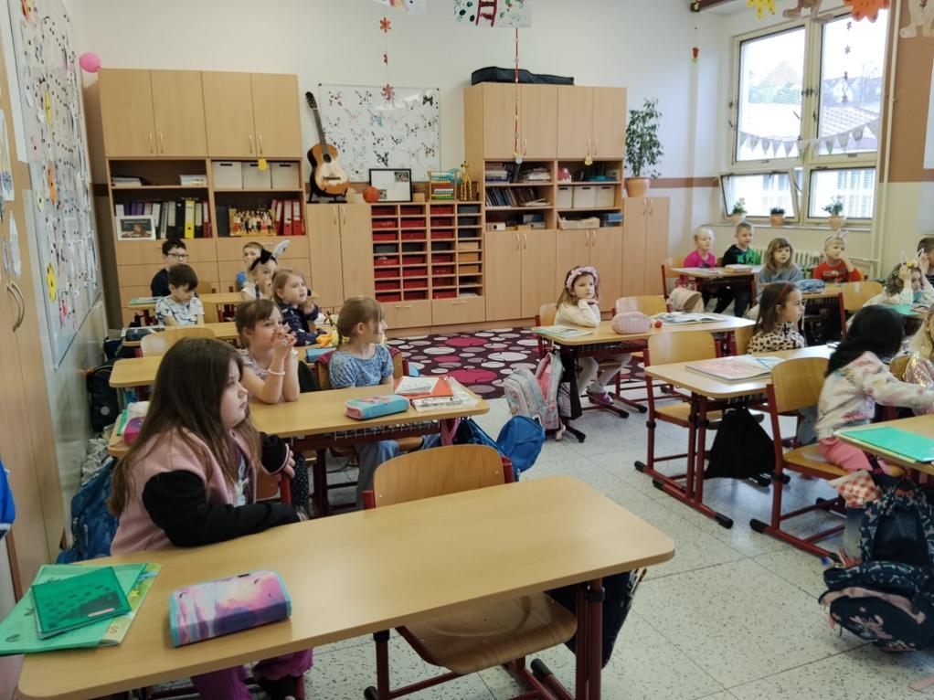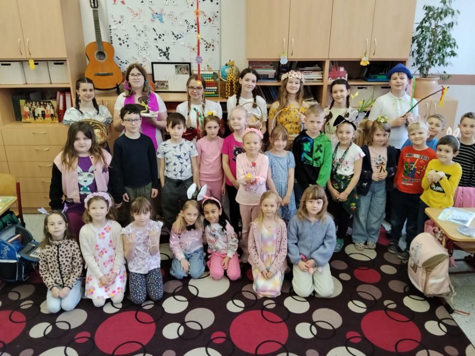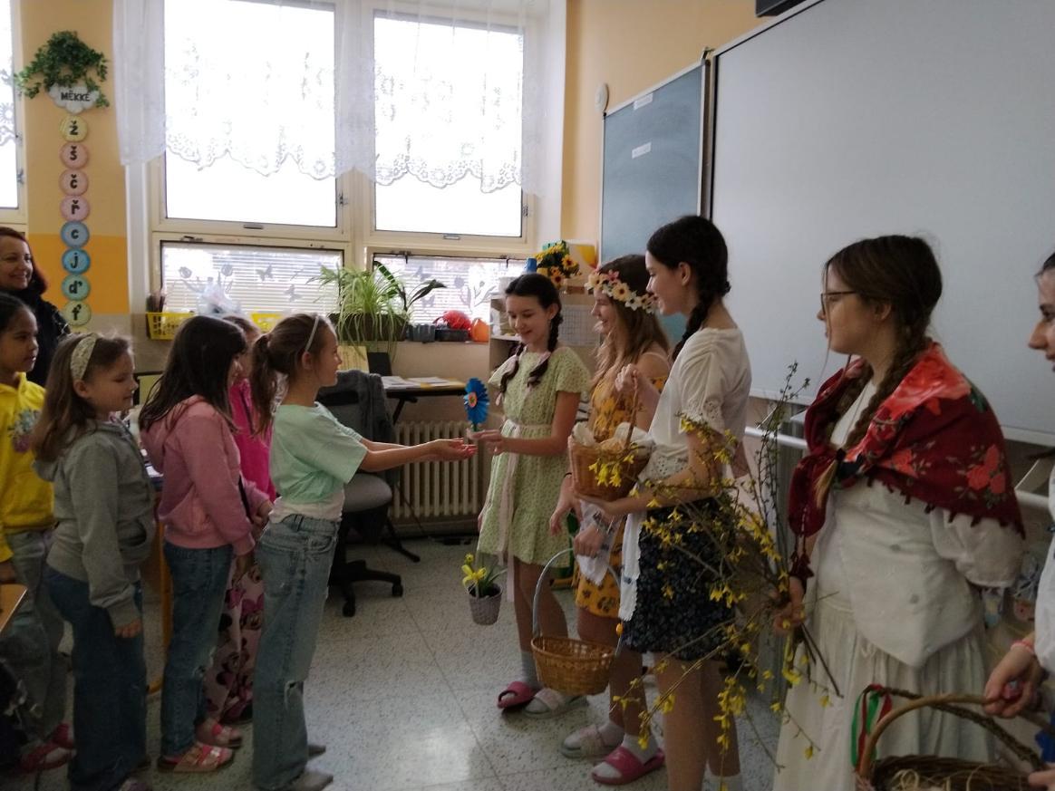 Poslední březnové dny patřily na nší škole přpravám na blížící se Velikonoce. V hodinách pracovních činností, výtvarné výchovy a samostatných velikonočních dílnách žáci vyráběli různé dekorace s velikonoční tématikou. Ty byly použité na výzdobu školy a byly k zakoupení na tradičních Velikonočních trzích v pondělí 30. března. Všechny přípravy pak vyvrcholily ve středu 1. dubna. V tento den jednotlivé třídy 1. supně (a také místní školku) navštěvovala velikonoční družina, která žákům představila zvyky a tradice, které jsou s tímto obdobím spojené.