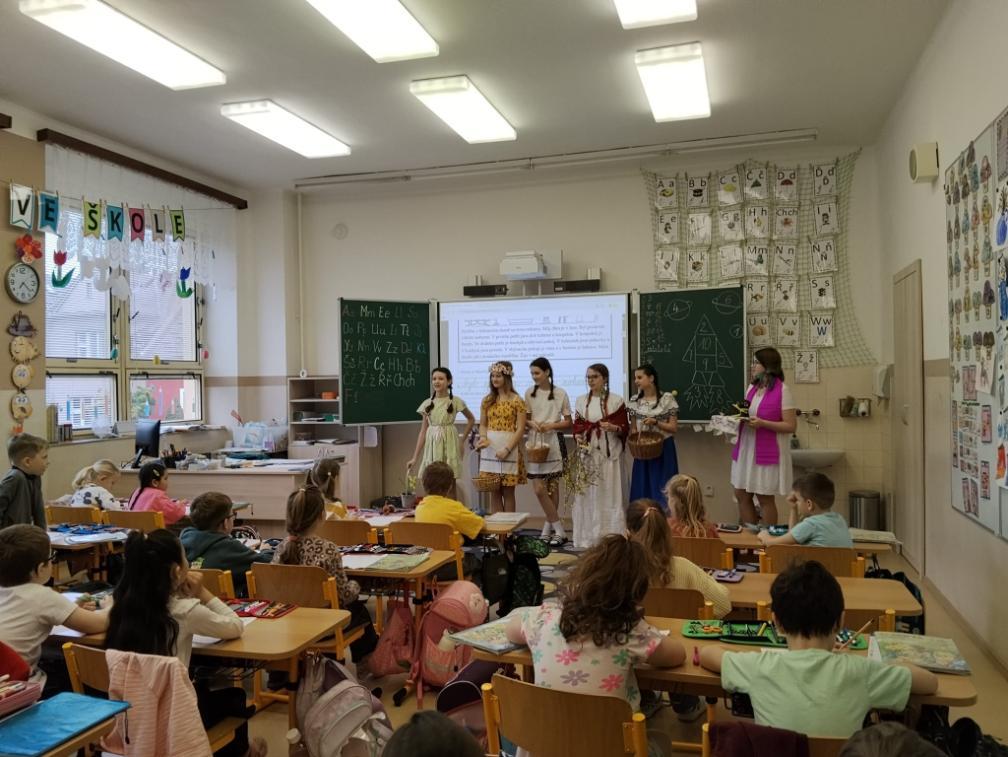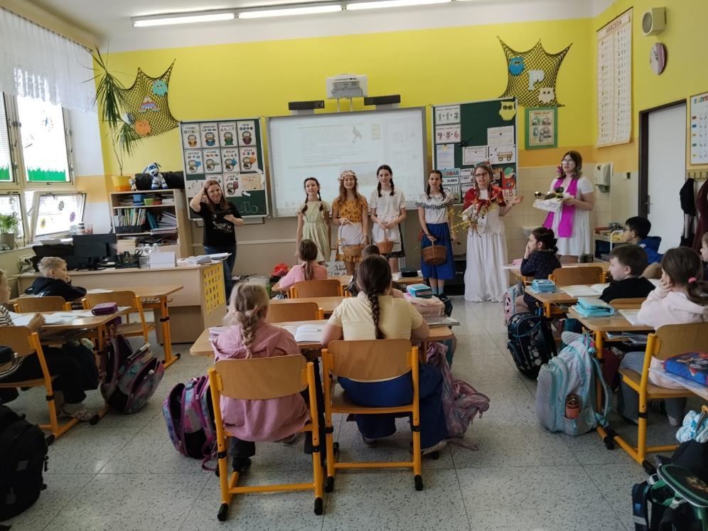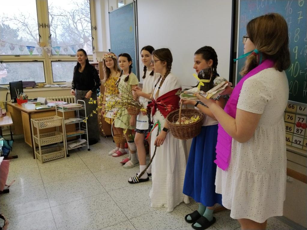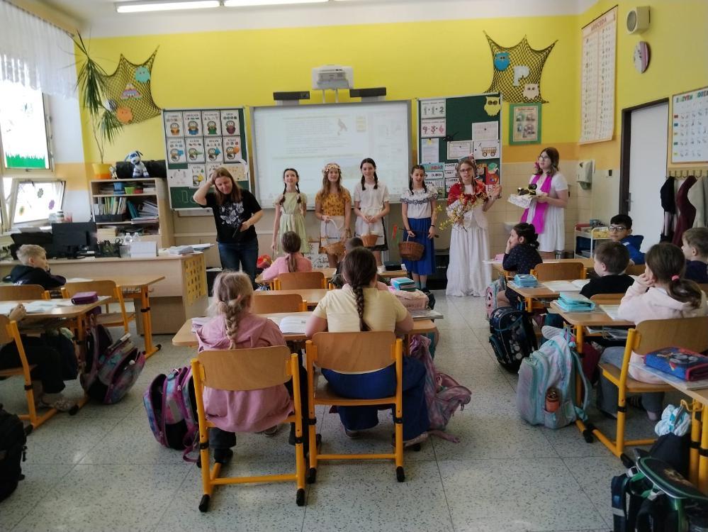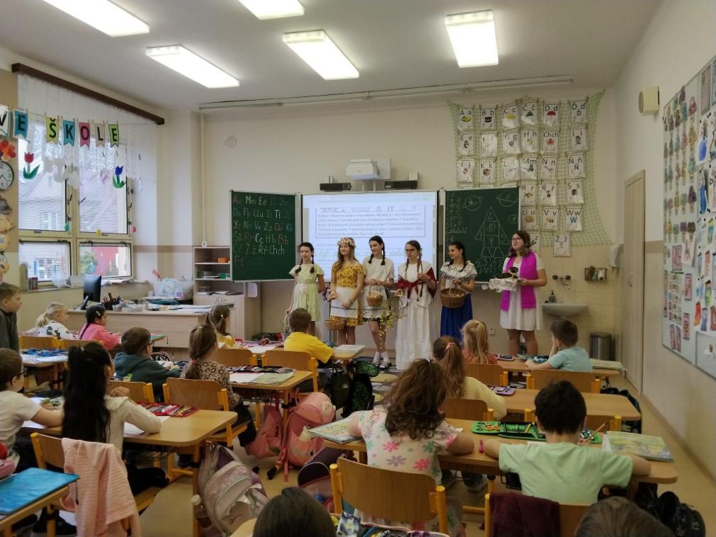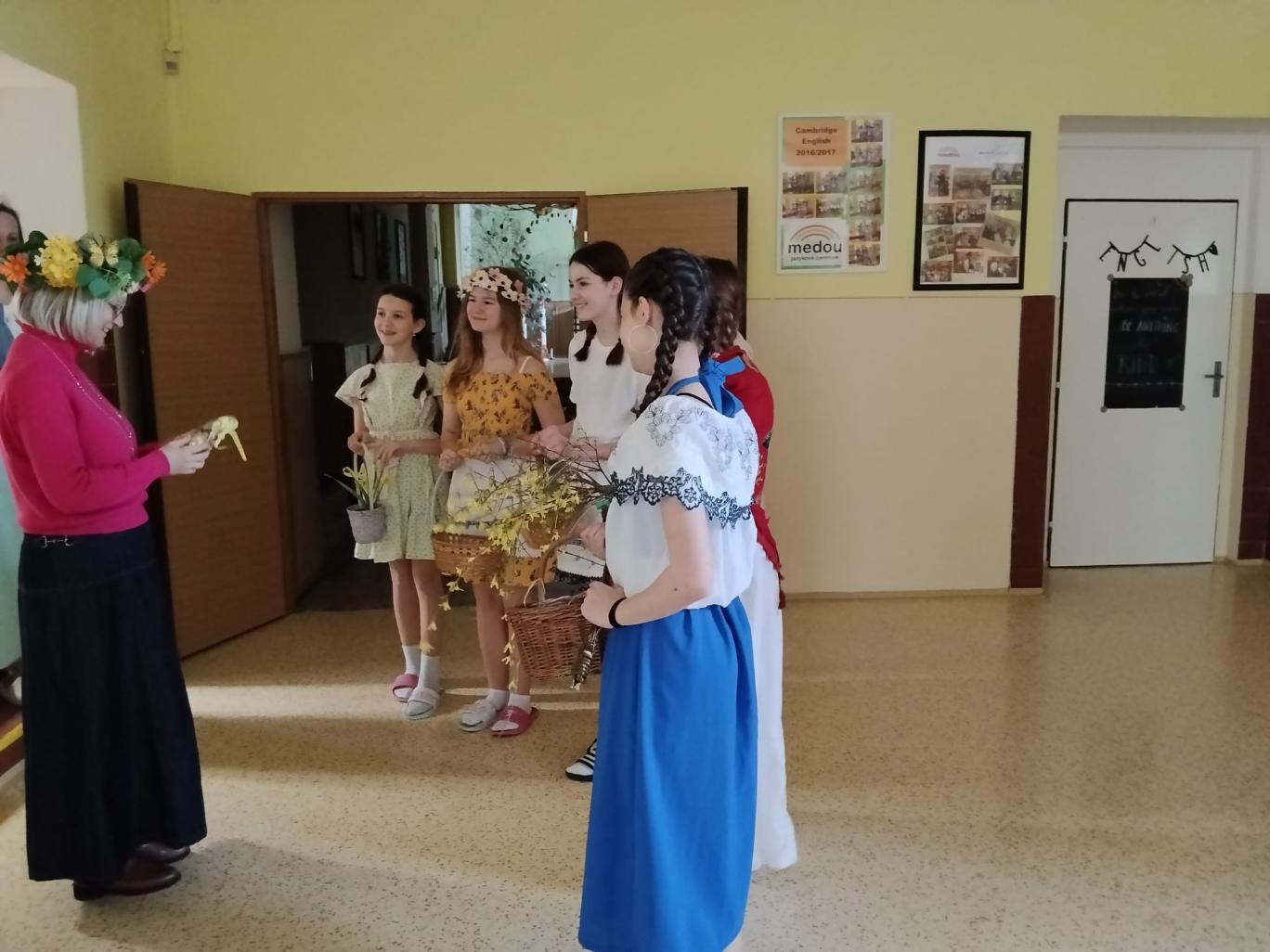 Poslední březnové dny patřily na nší škole přpravám na blížící se Velikonoce. V hodinách pracovních činností, výtvarné výchovy a samostatných velikonočních dílnách žáci vyráběli různé dekorace s velikonoční tématikou. Ty byly použité na výzdobu školy a byly k zakoupení na tradičních Velikonočních trzích v pondělí 30. března. Všechny přípravy pak vyvrcholily ve středu 1. dubna. V tento den jednotlivé třídy 1. supně (a také místní školku) navštěvovala velikonoční družina, která žákům představila zvyky a tradice, které jsou s tímto obdobím spojené.