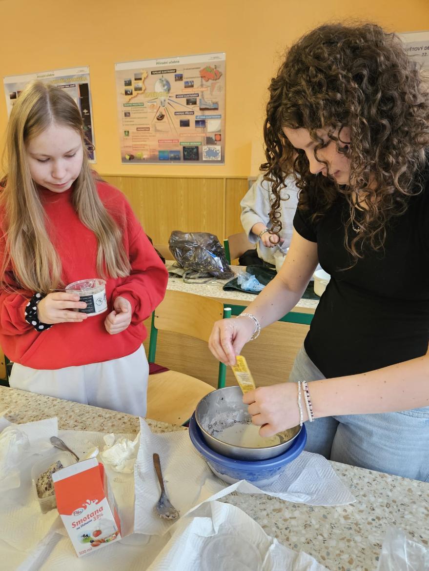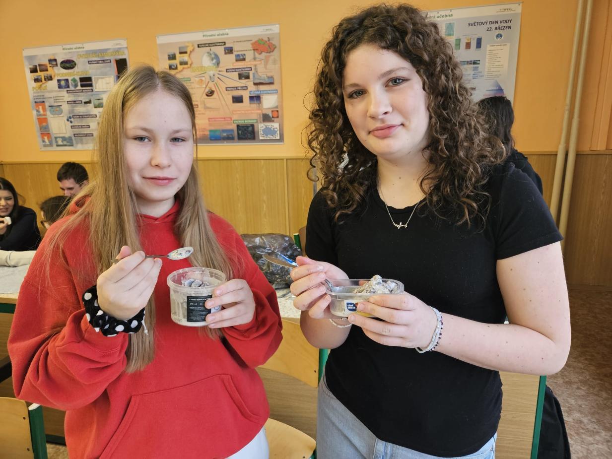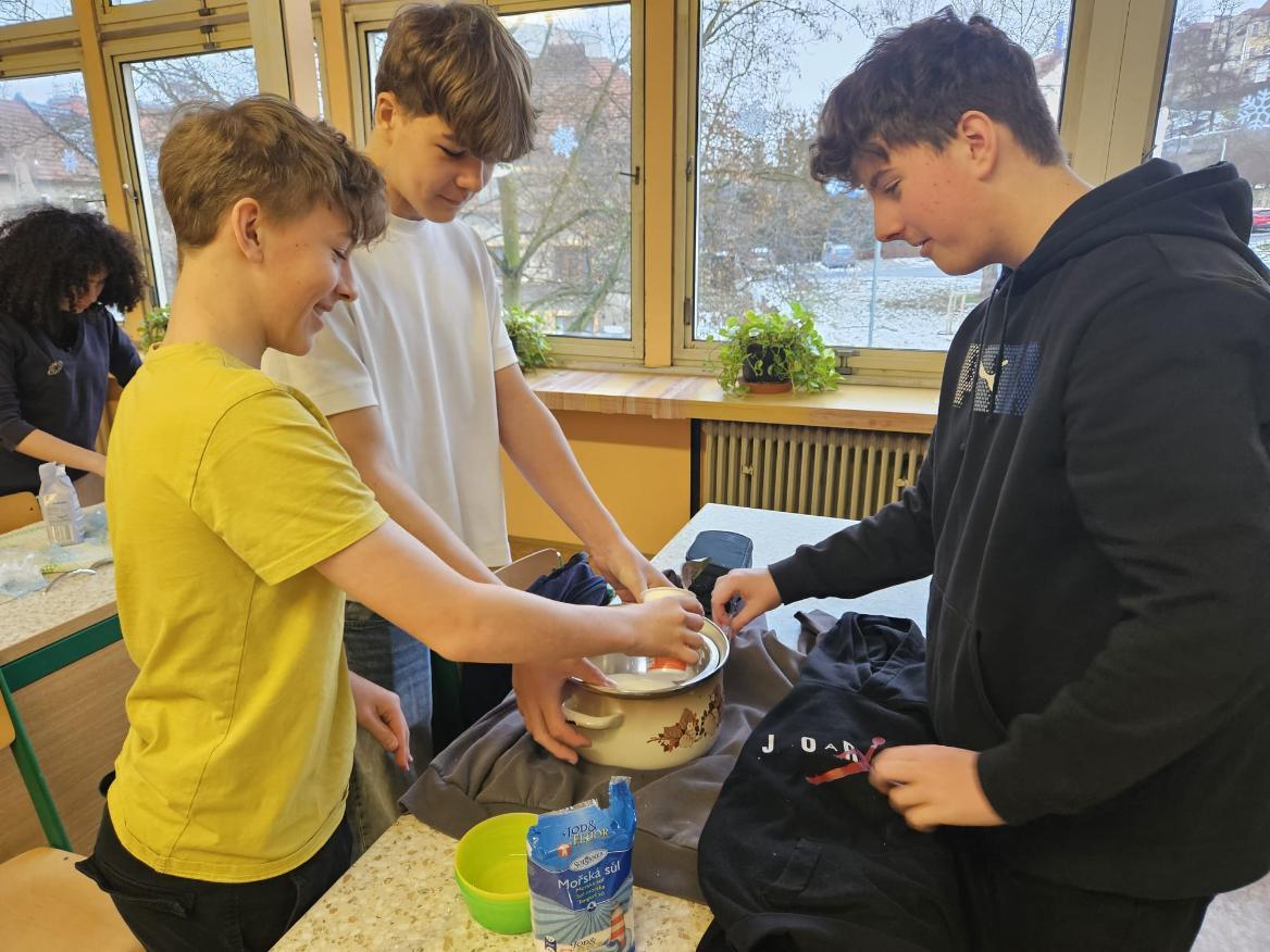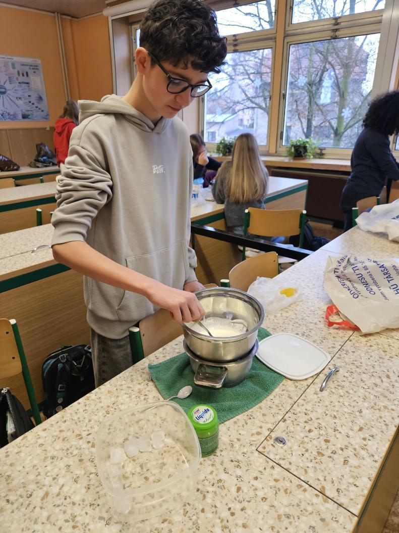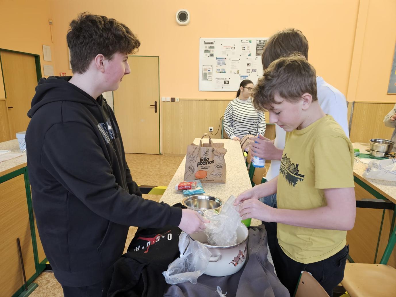 V rámci výuky o tepelných přeměnách si osmáci udělali vlastní zmrzlinu.
