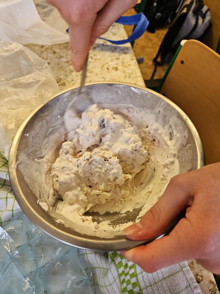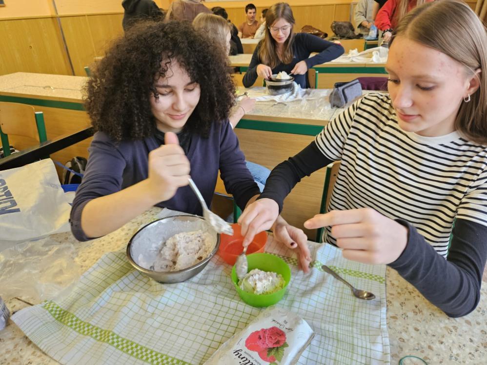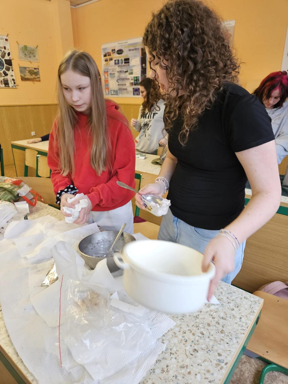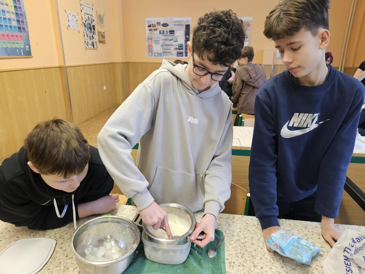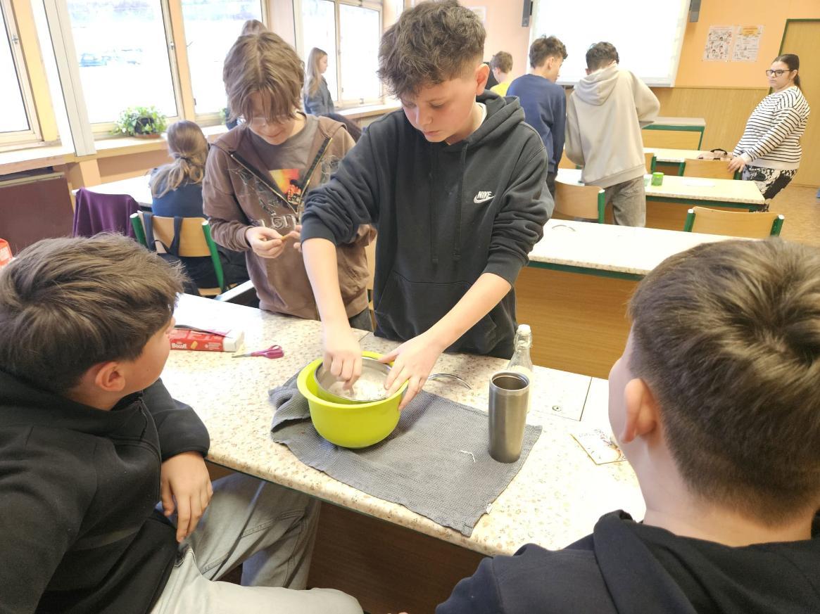 V rámci výuky o tepelných přeměnách si osmáci udělali vlastní zmrzlinu.