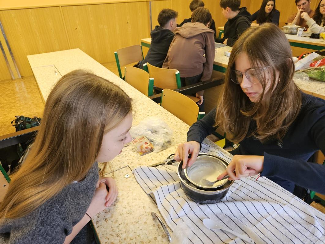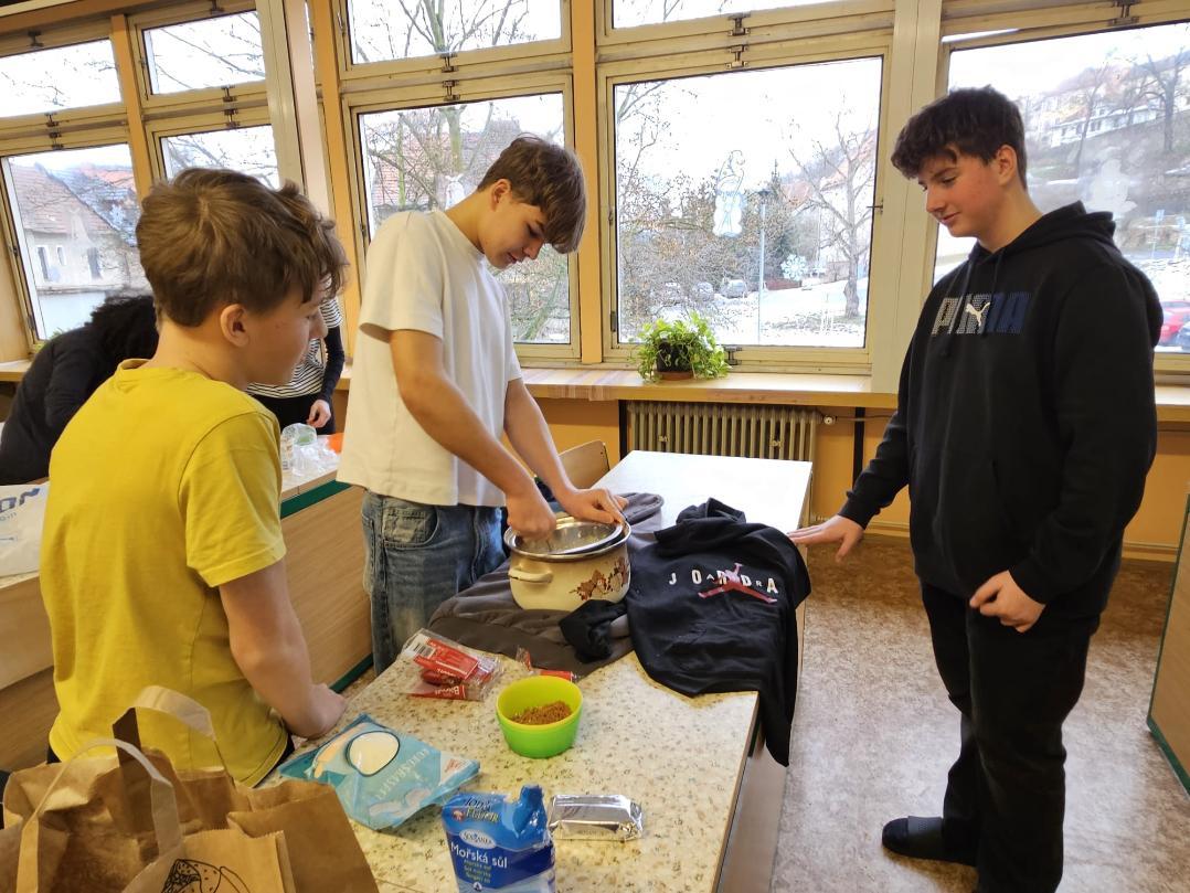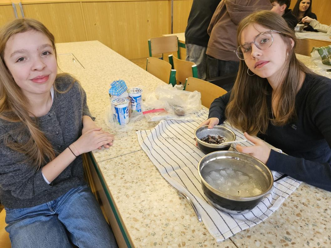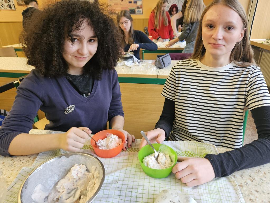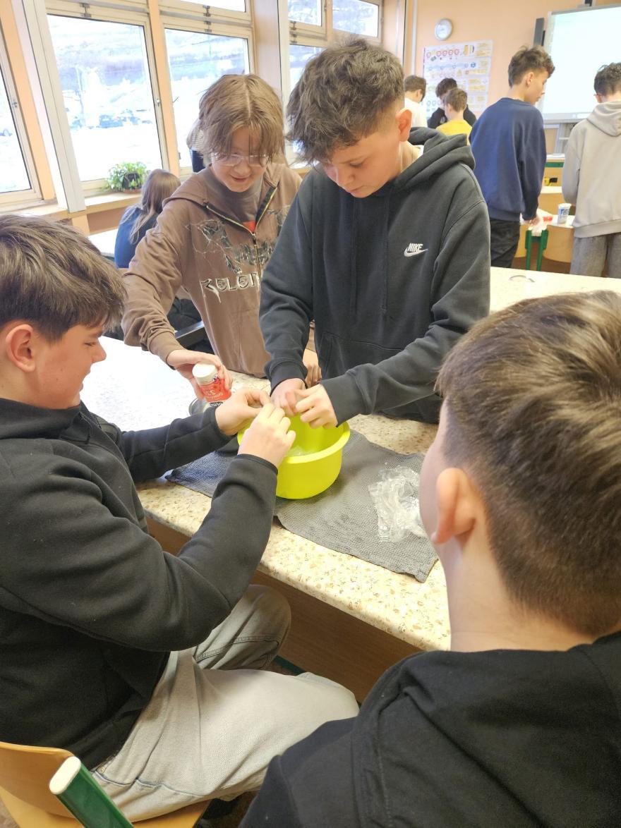 V rámci výuky o tepelných přeměnách si osmáci udělali vlastní zmrzlinu.