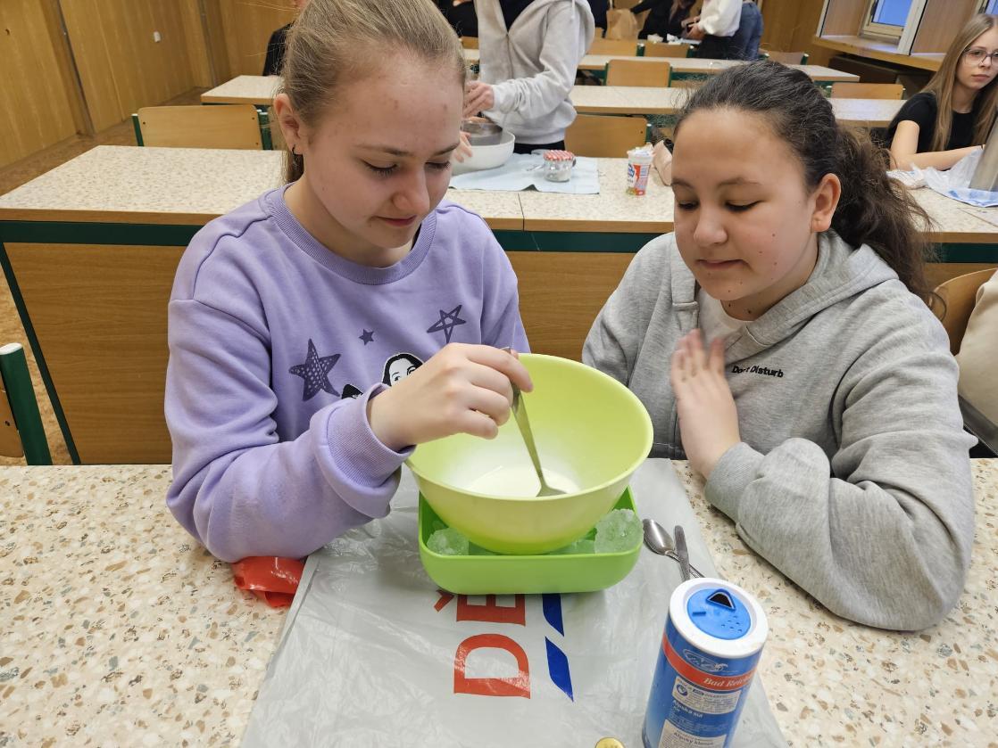 Za poznáváním tepelných přeměn udělali osmáci sladkou tečku - vyrobili si vlastní zmrzlinové poháry.