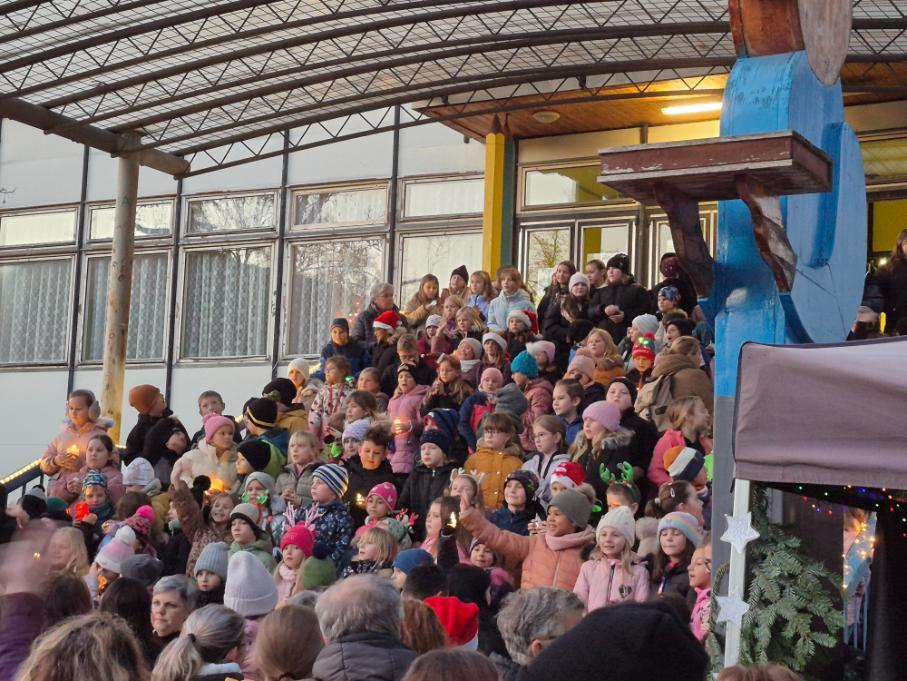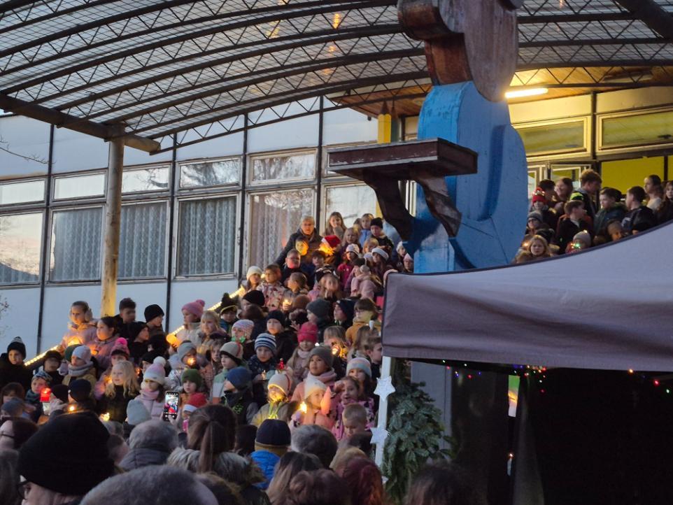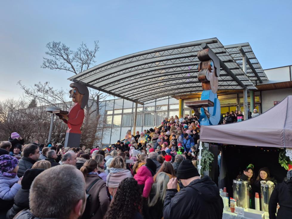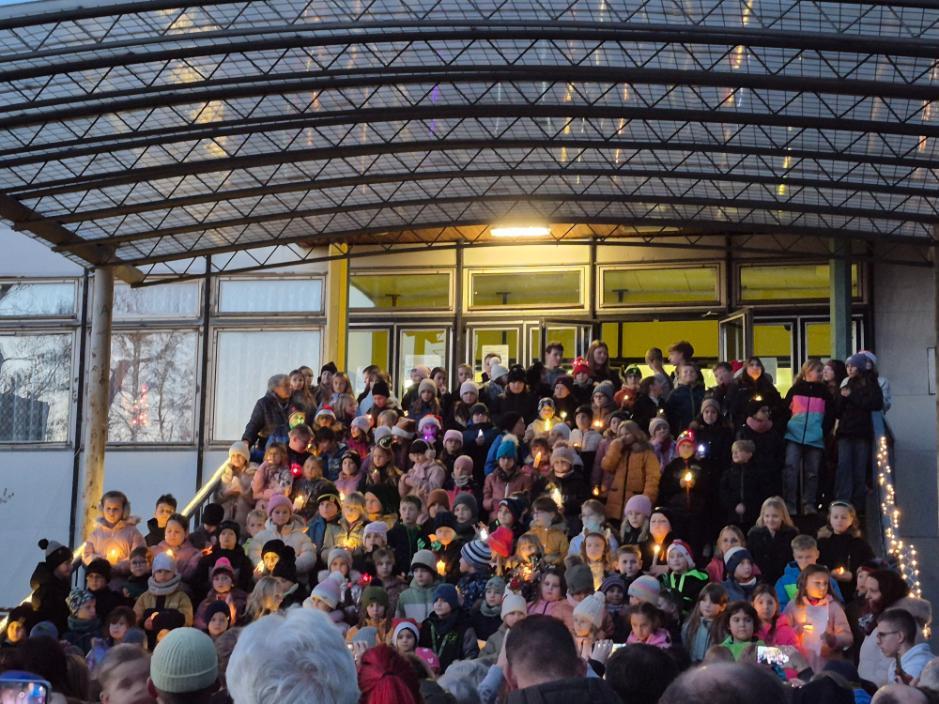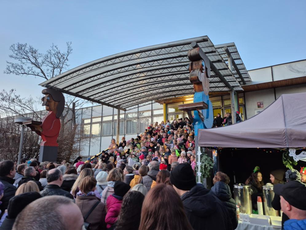 Novodobou tradicí na naší škole se stalo setkání žáků a rodičů v rámci akce Zpívání na schodech. Ve čtvrtek 11. prosince se tak prostranství před naší školou zcela zaplnilo diváky, kteří sledovali vystoupení žáků tříd nižšího stupně podpořených několika deváťáky. Příjemná atmosféra plná vánočních koled a písniček byla umocněna možností malého občerstvení nabízeného našimi vánočními skřítky (našimi milými asistentkami).