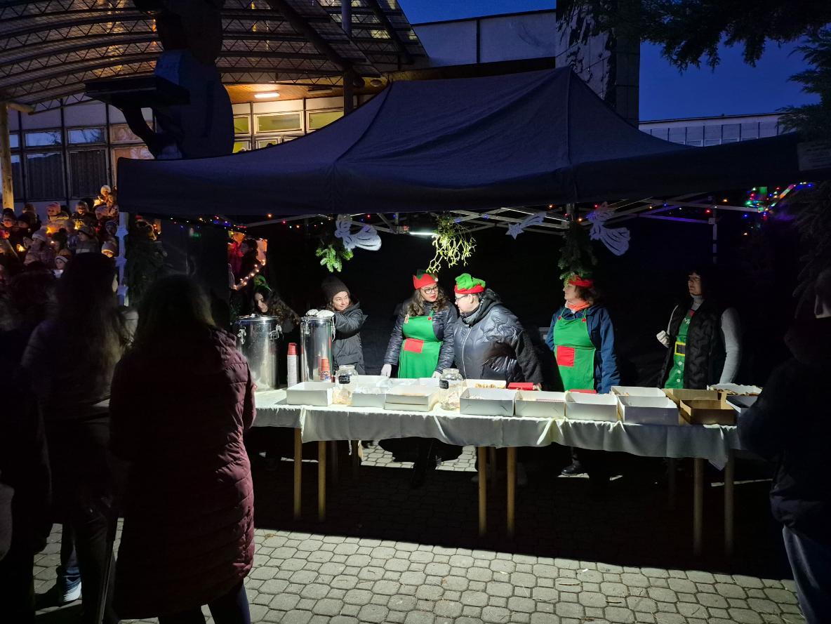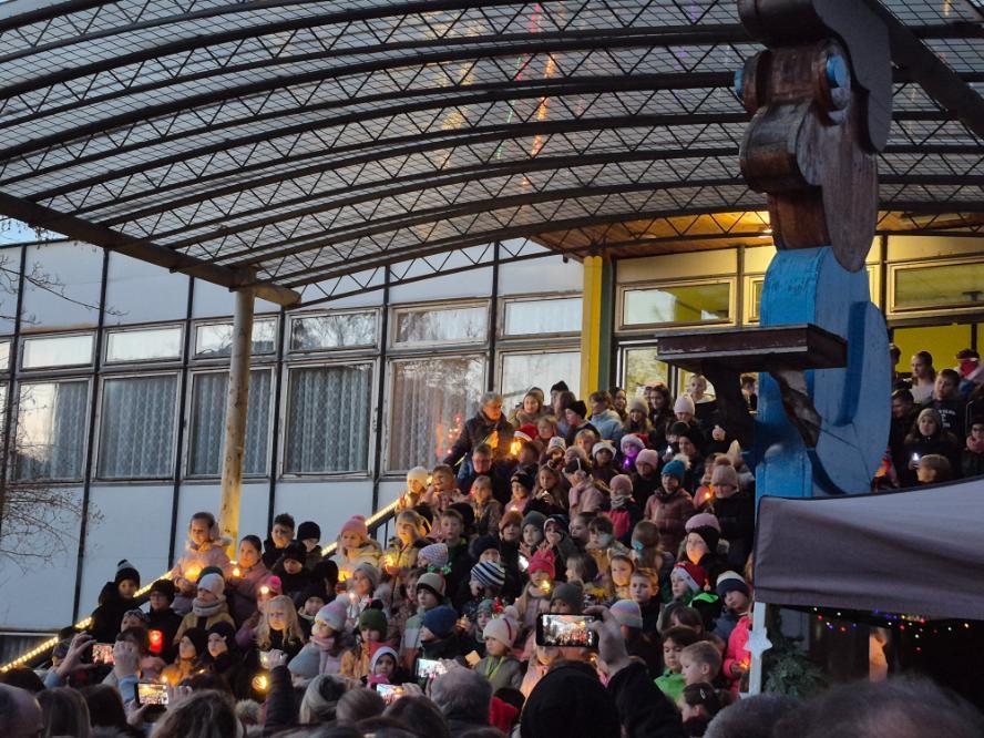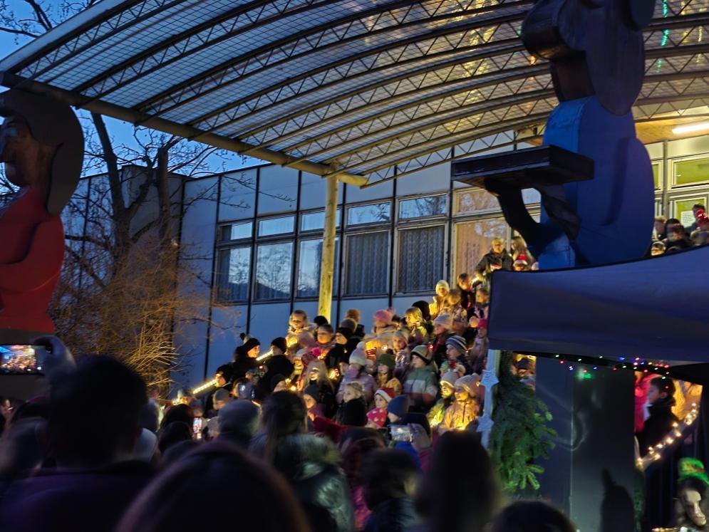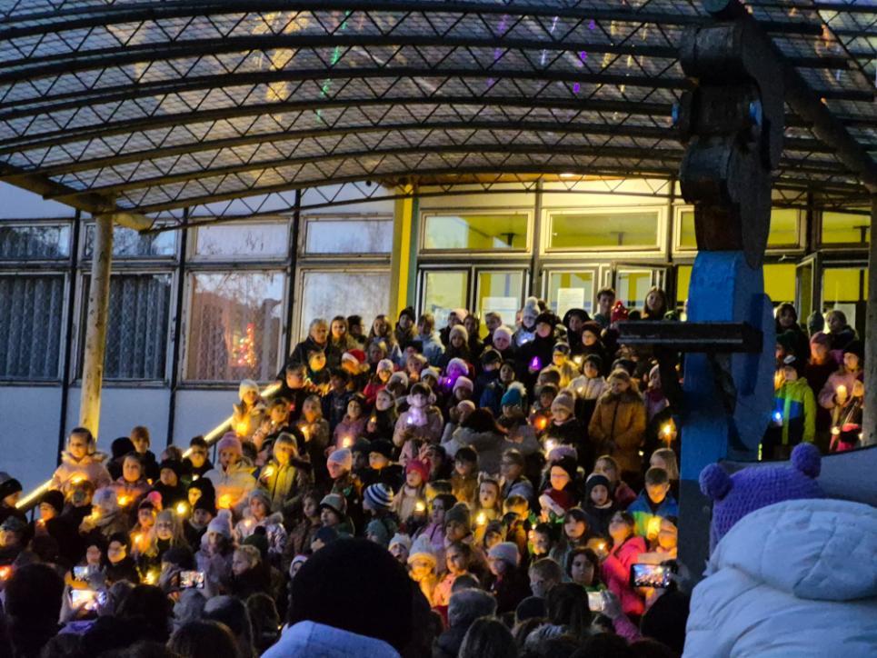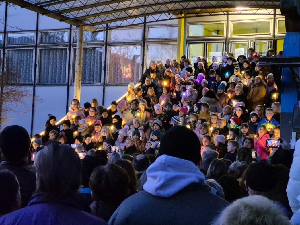 Novodobou tradicí na naší škole se stalo setkání žáků a rodičů v rámci akce Zpívání na schodech. Ve čtvrtek 11. prosince se tak prostranství před naší školou zcela zaplnilo diváky, kteří sledovali vystoupení žáků tříd nižšího stupně podpořených několika deváťáky. Příjemná atmosféra plná vánočních koled a písniček byla umocněna možností malého občerstvení nabízeného našimi vánočními skřítky (našimi milými asistentkami).