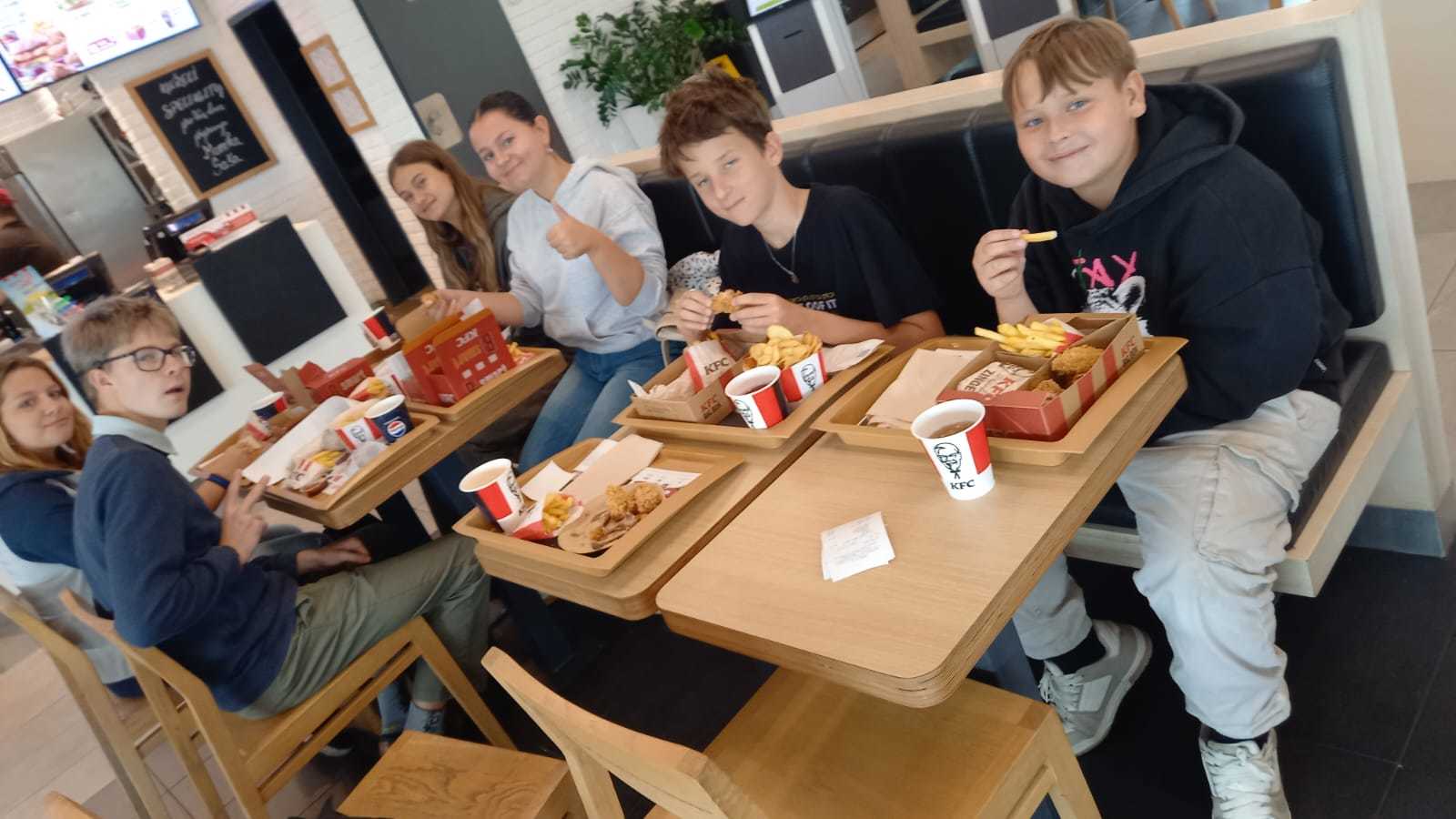 Po opuštění muzea jsme pokračovali v cestě na Zličín, kde jsme společně s paní učitelkou Kumstýřovou zamířili do KFC na oběd a naši legionáři do Globusu. Po občerstvení jsme vyrazili do Příbrami. Bohužel se velmi zhoršilo počasí. Po příjezdu do cíle se utvořily skupinky a každý mohl jít kam sám chtěl. Vzhledem k počasí jsme ale i s paní učitelkou zůstali v autobuse a počkali na ostatní. Domů jsme dorazili až v podvečerních hodinách.