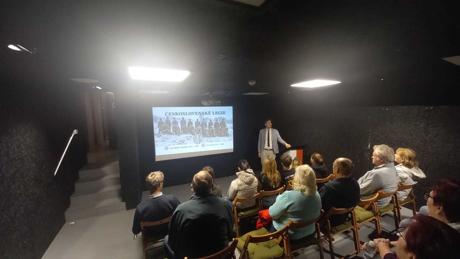 Dále jsme se přesunuli do přednáškového sálu, kde se konají různé přednášky a na umístěném plátně se promítají dokumentární filmy. My jsme shlédli film o 1. světové válce.