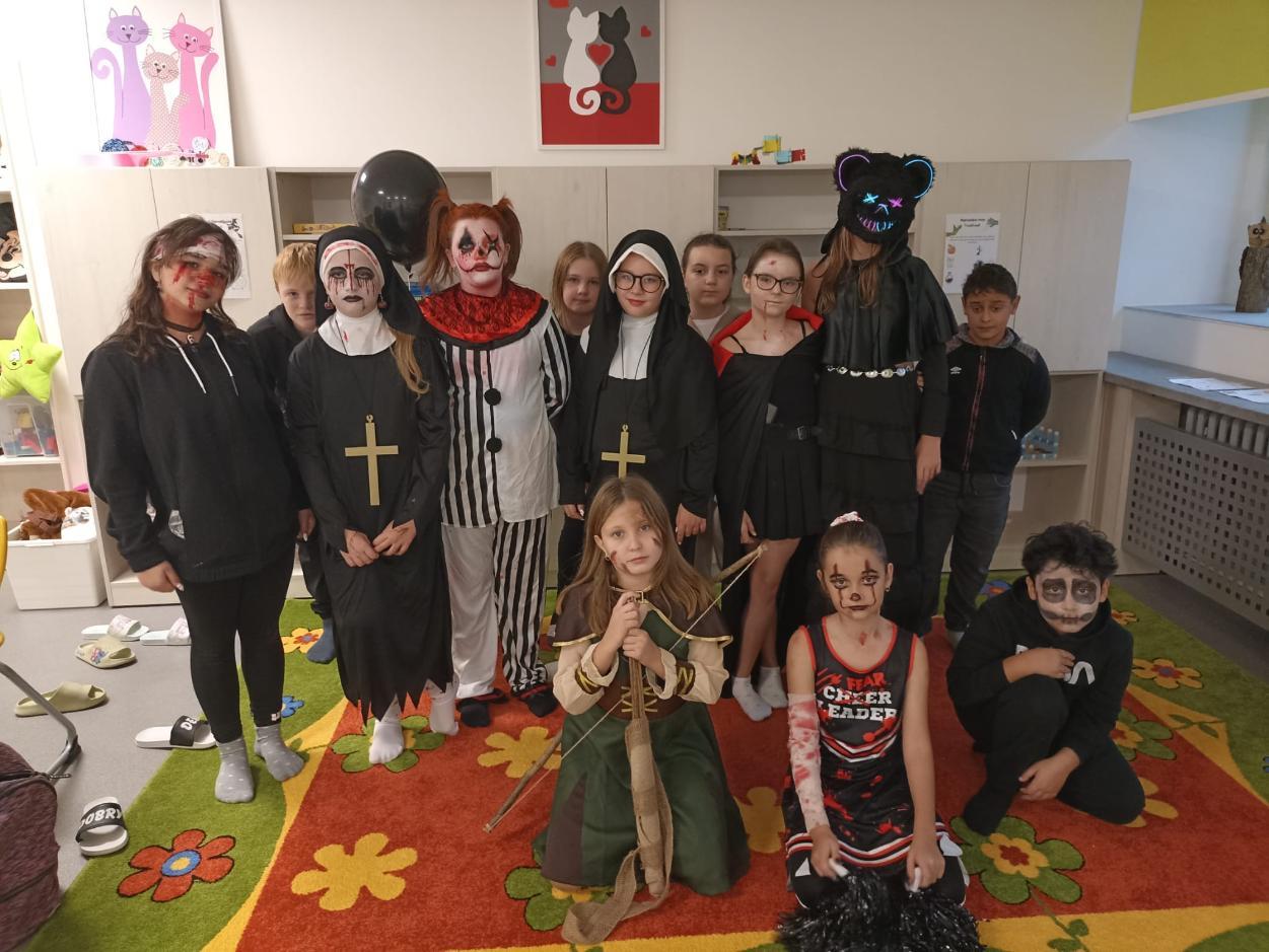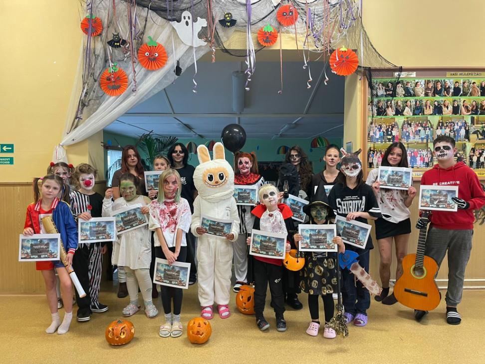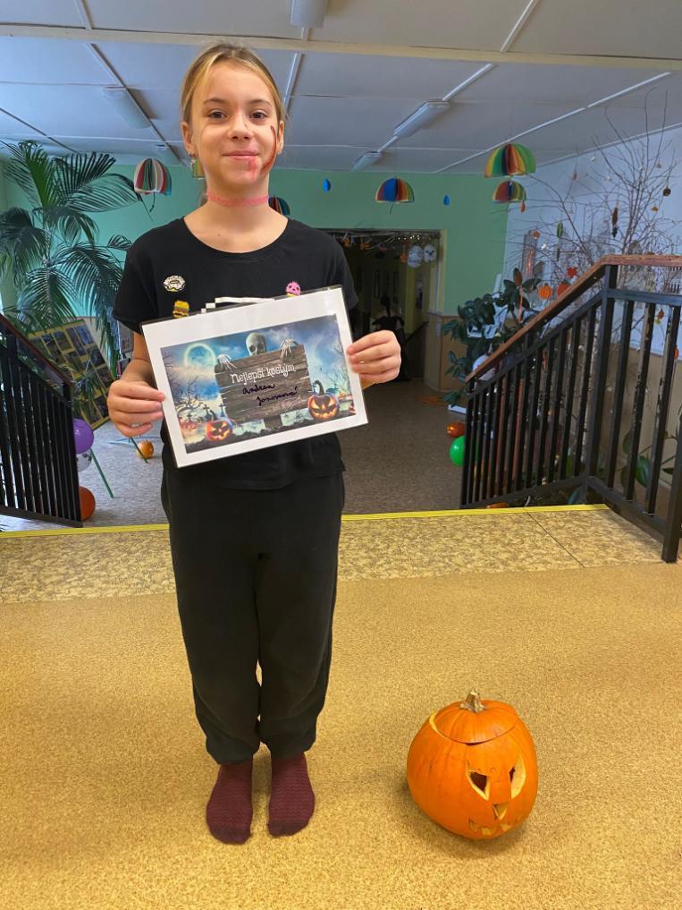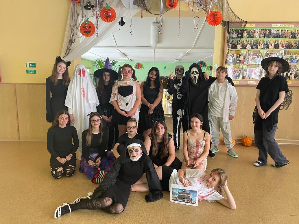 V pátek 24. října se naše škola proměnila v místo plné strašidel, která se sešla, aby oslavila svůj svátek - Halloween. Celý den měli v rukou členové Žákovské rady ve spolupráci s žáky 7.A a paní učitelkou Jaroslavou Kumstýřovou. Proběhla volba nejlepších převleků, v některých třídách (např. 2.A nebo 4.A) byla k tomuto dnu přizpůsobená celá výuka. Letošní novinkou byla "Stezka odvahy", plná různých soutěží a her, kterou absolvovali žáci nejmladších ročníků. Strašidla samozřejmě nevynechala i školní družinu. Záběry ze tříd, Stezky a družiny najdete v několika dalších fotogaleriích.