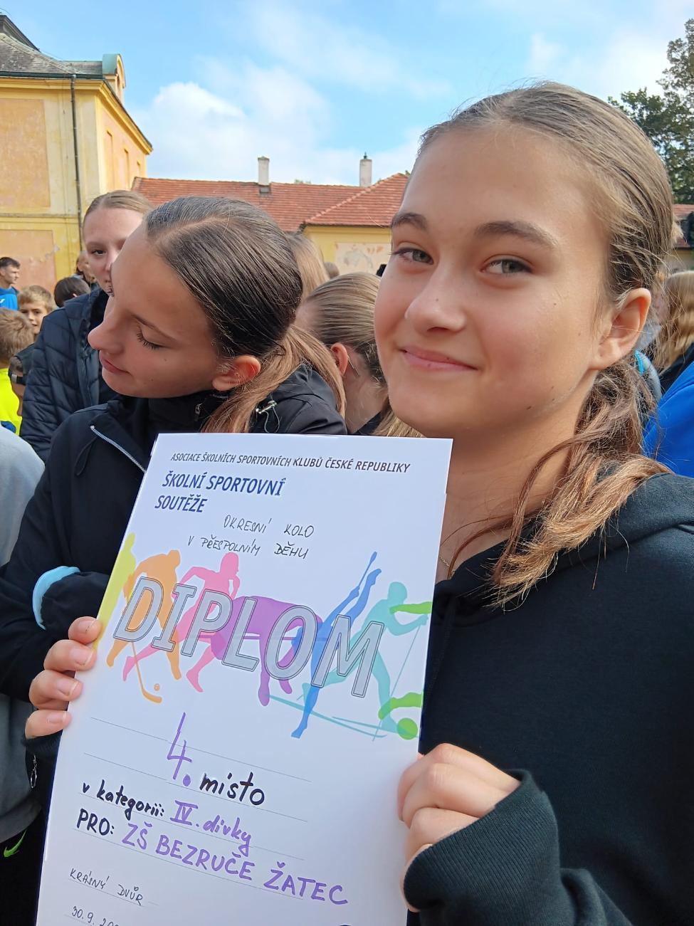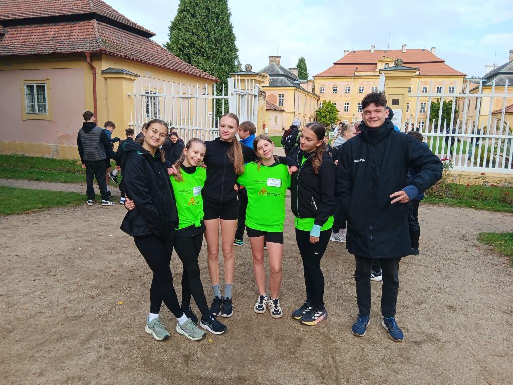 V úterý 30. září se v zámeckém parku v Krásném Dvoře uskutečnilo okresní kolo závodů v přespolním běhu. Za naší školu se jej zúčastnilo družstvo starších žákyň, které do něj postoupily z 2. místa kola oblastního. Dívky po bojovném výkonu skončily na pěkném 4. místě. Děkujeme za vzornou reprezentaci školy. Foto I. Kruml