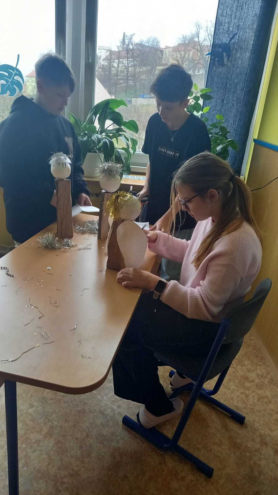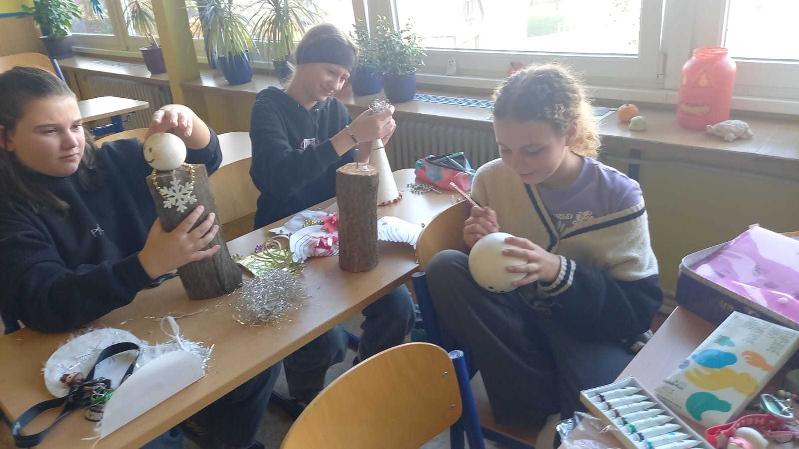 V hodinách pracovních činností žáků 2. stupně se vyrábí výrobky, které se stanou součástí sváteční výzdoby.