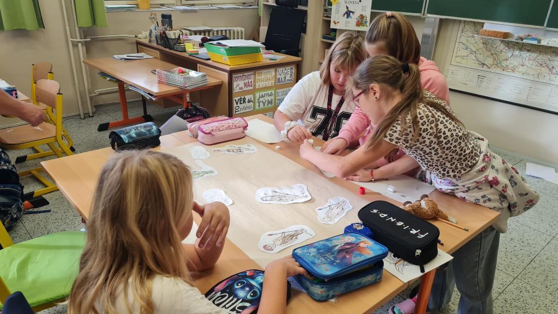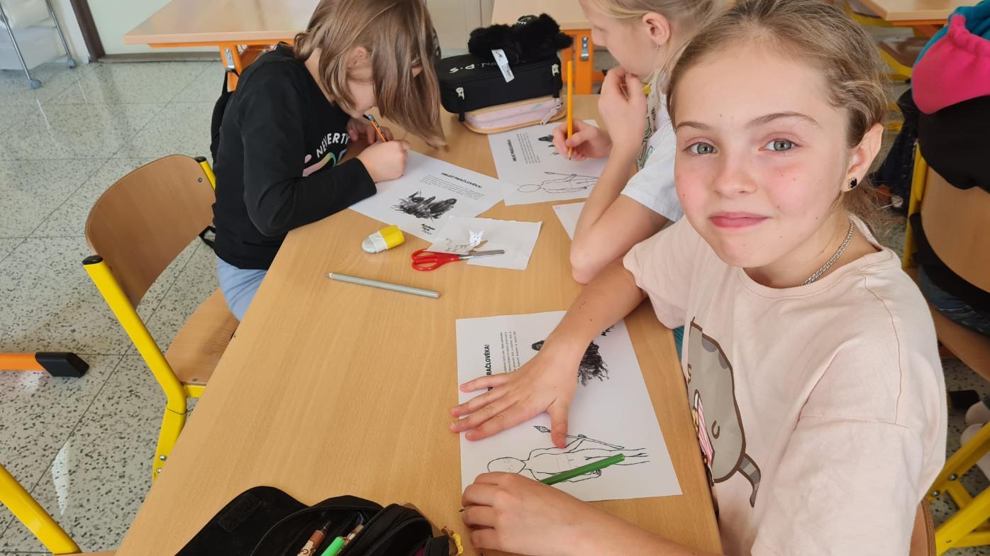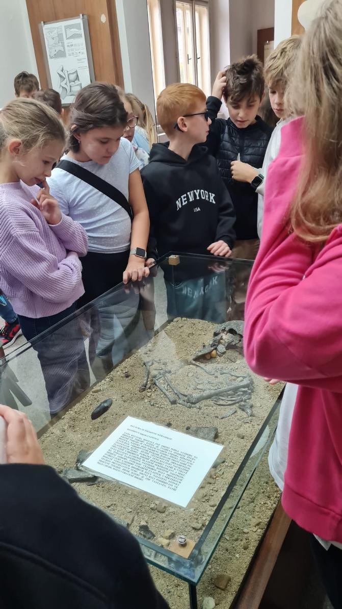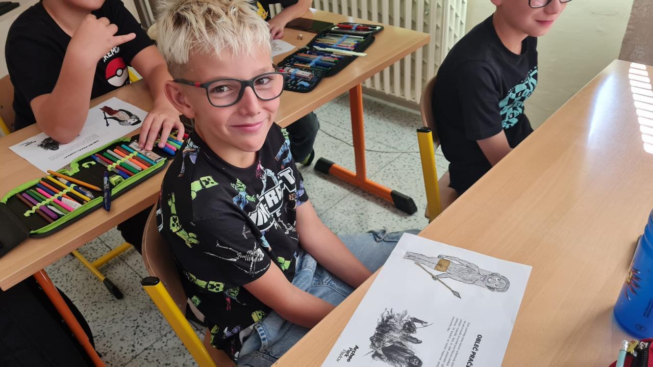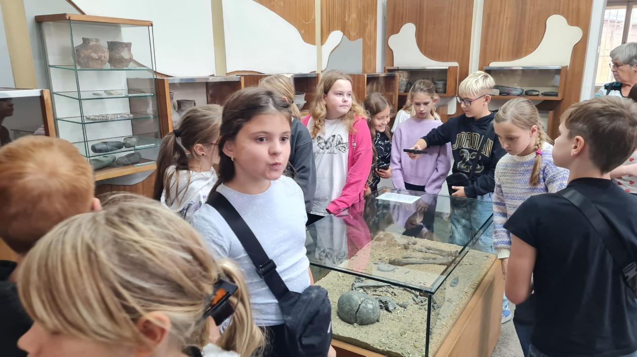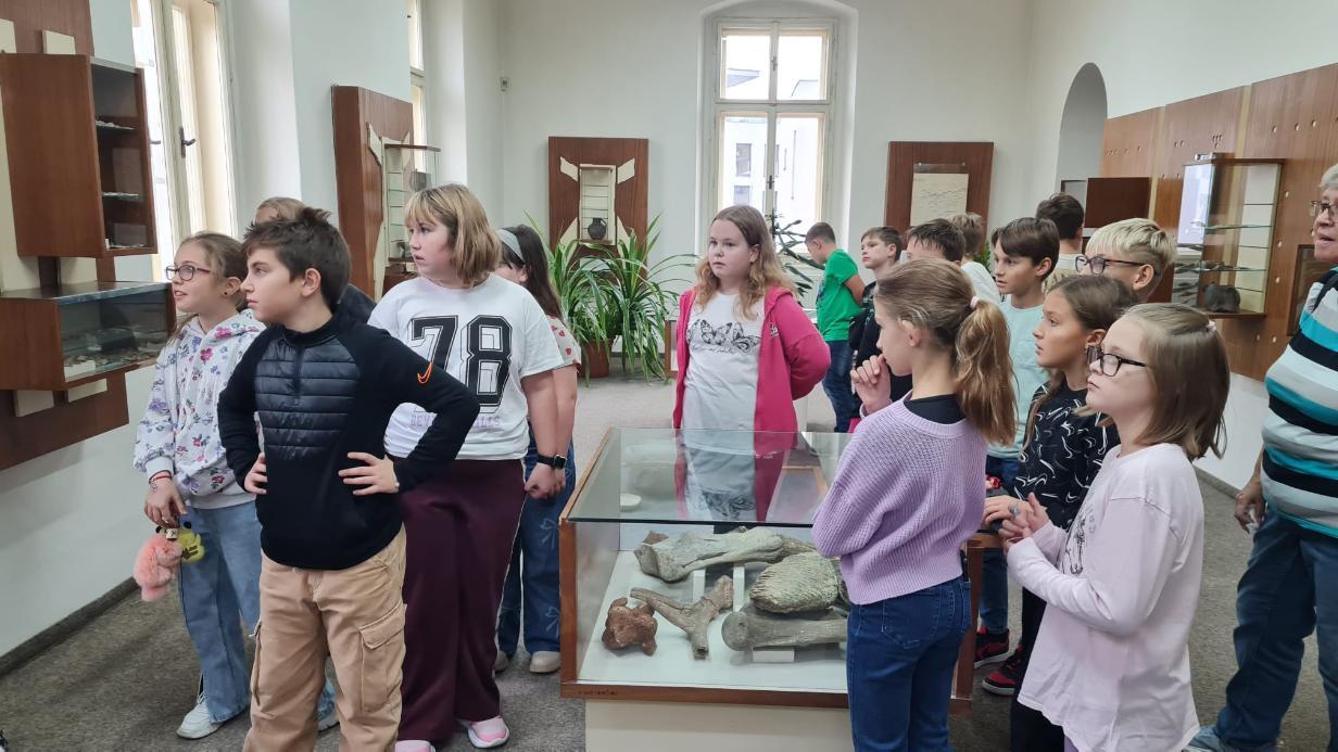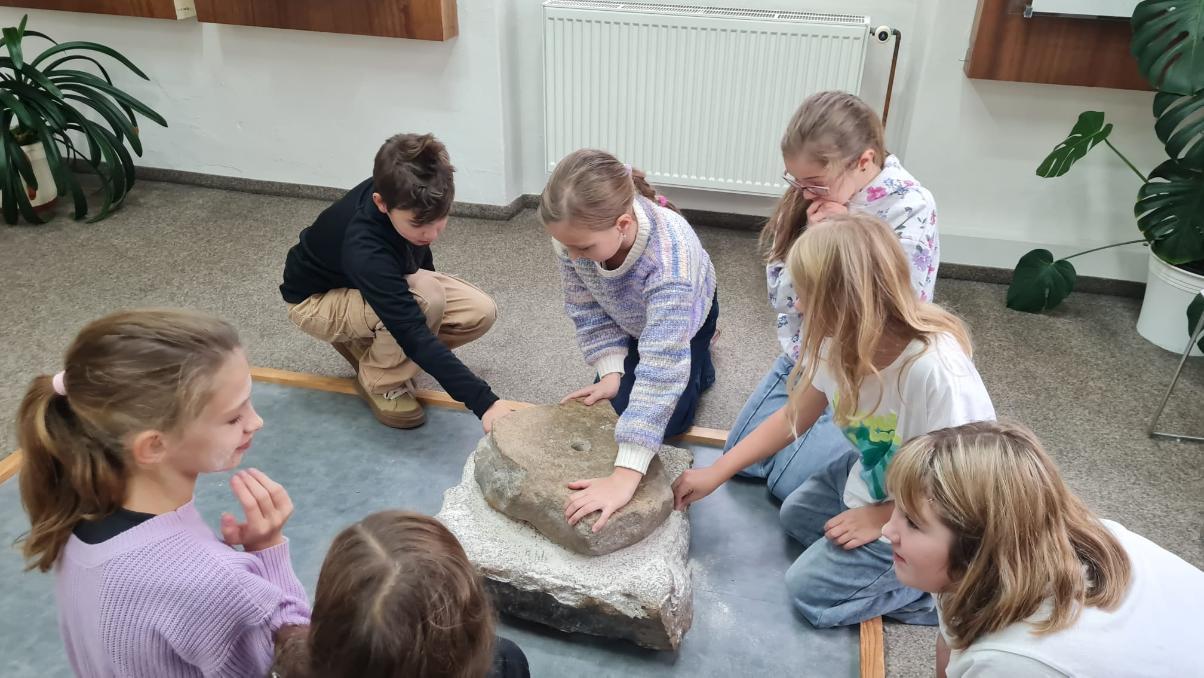 Užili jsme si období pravěku ve všech hodinách - luštění tajenky, matematický kvíz, návrh oblečení pro pračlověka a vše jsme zakončili v muzeu zážitkovou přednáškou. Překvapila nás velikost stoličky od mamuta, dokonale ostrý pazourek a spousta zajímavostí. Ze všech sil jsme se pokusili namlít mouku, ale na koláč to opravdu nestačilo:)