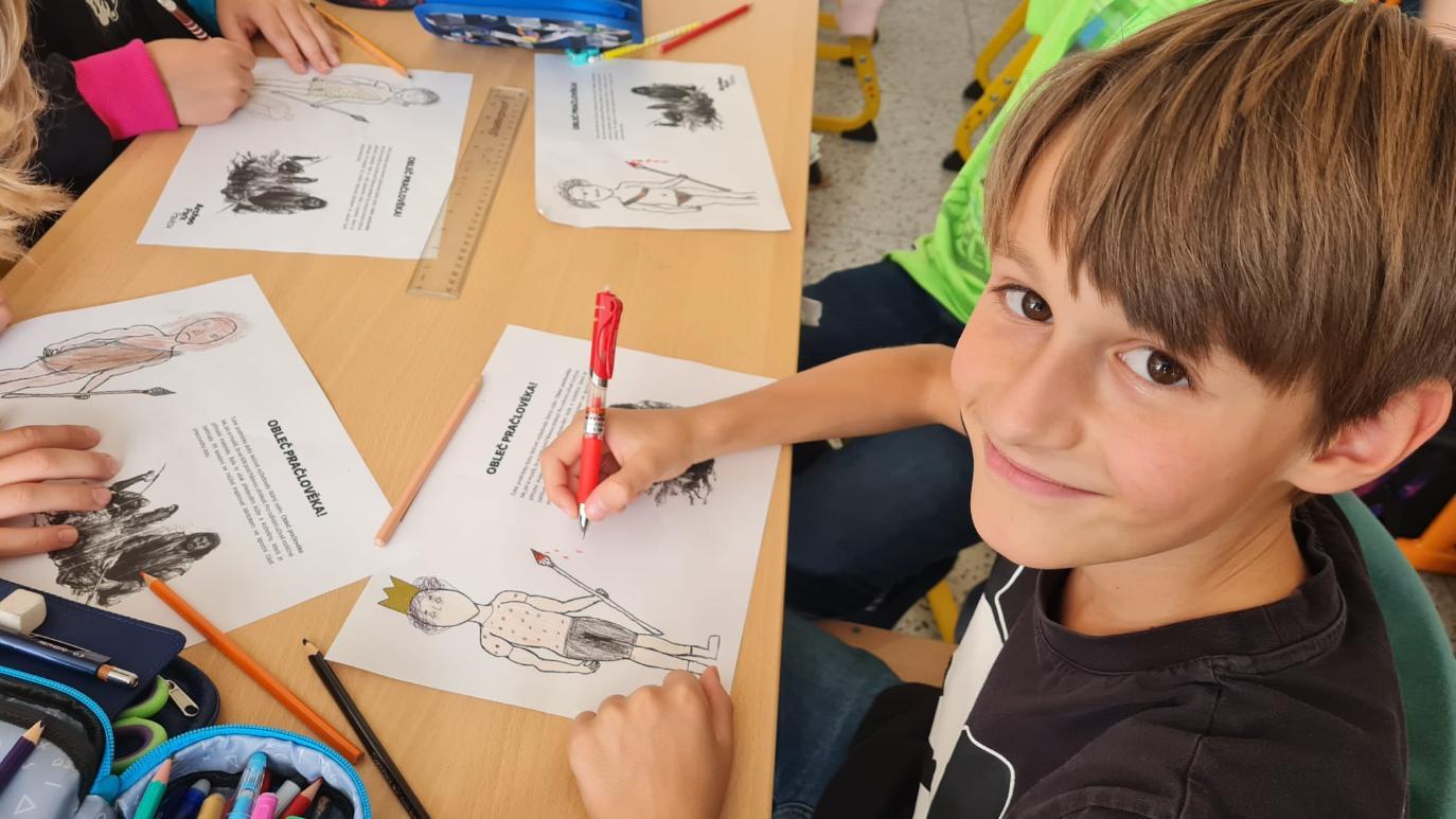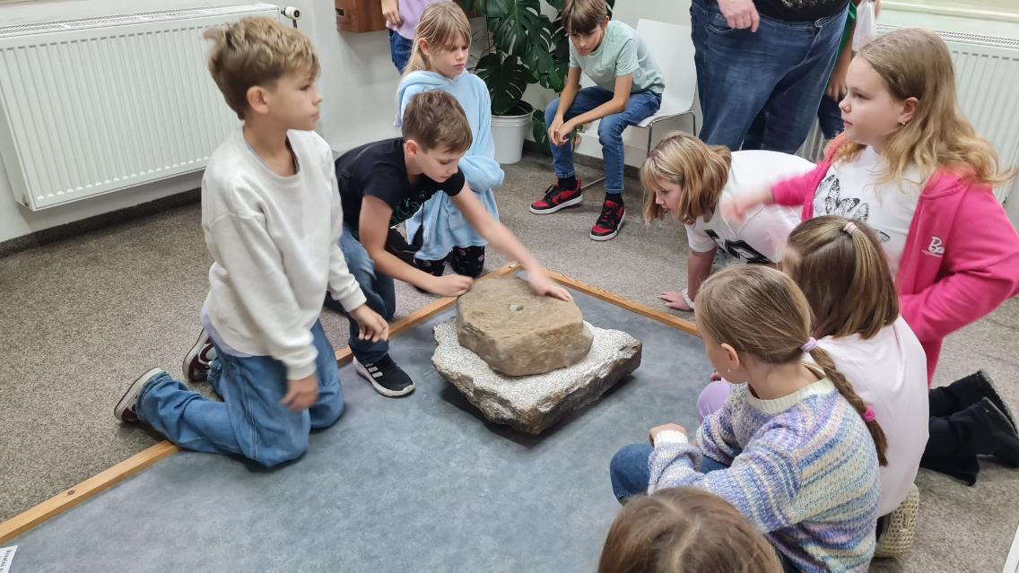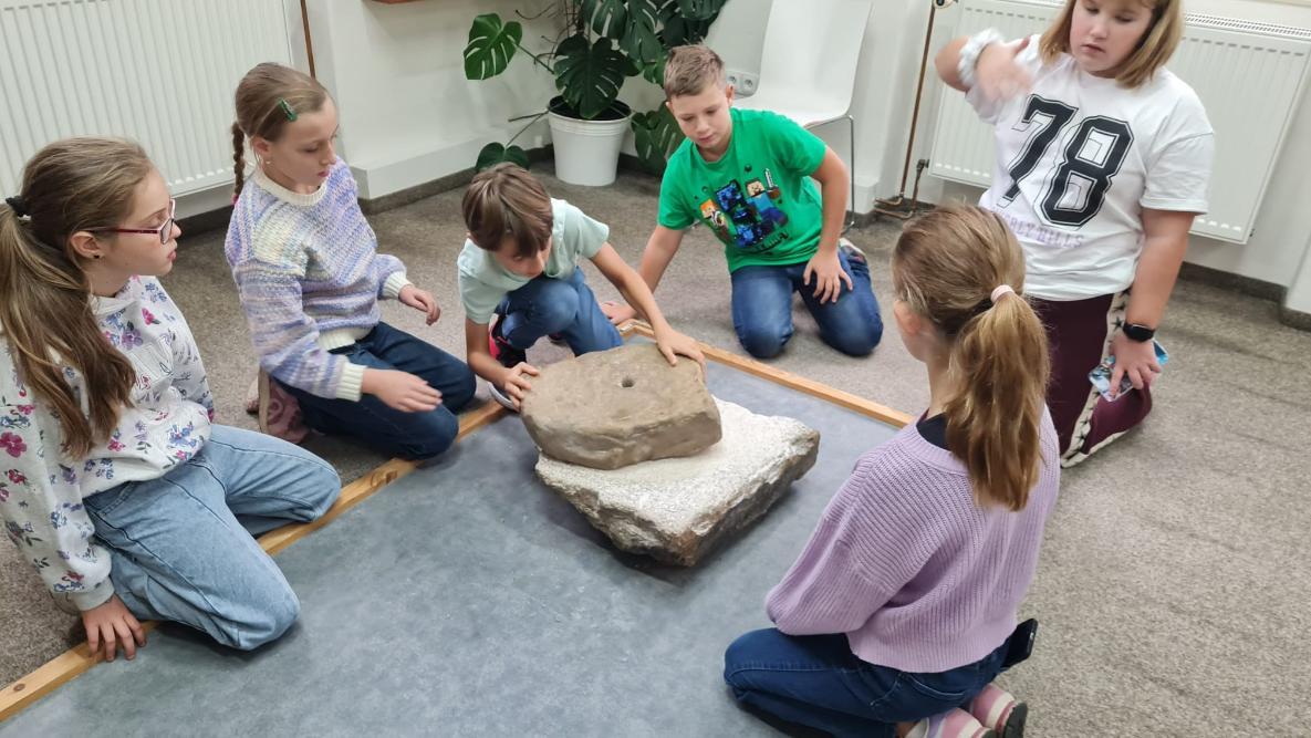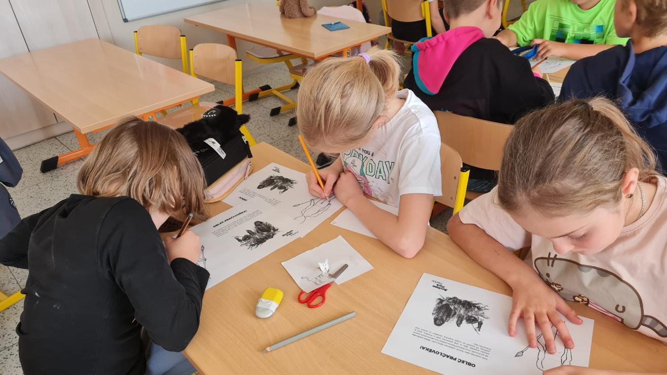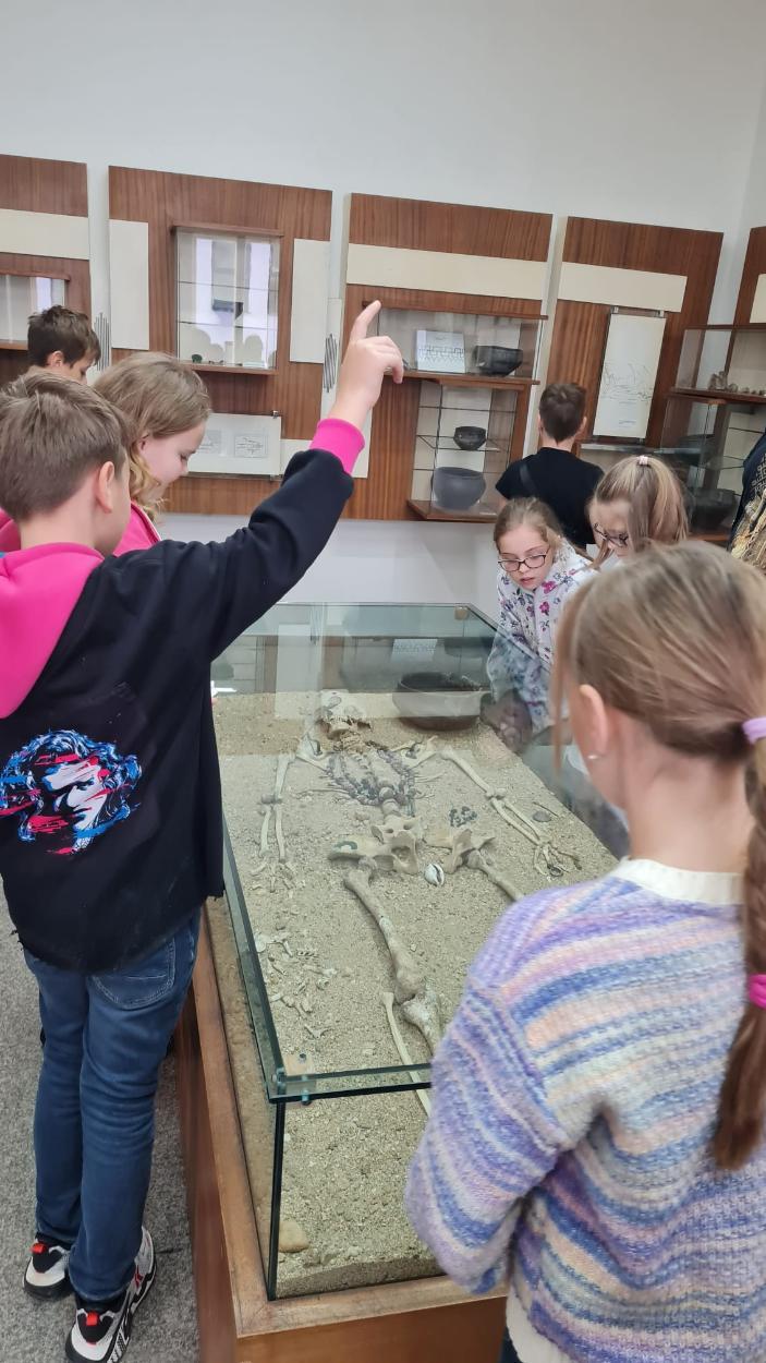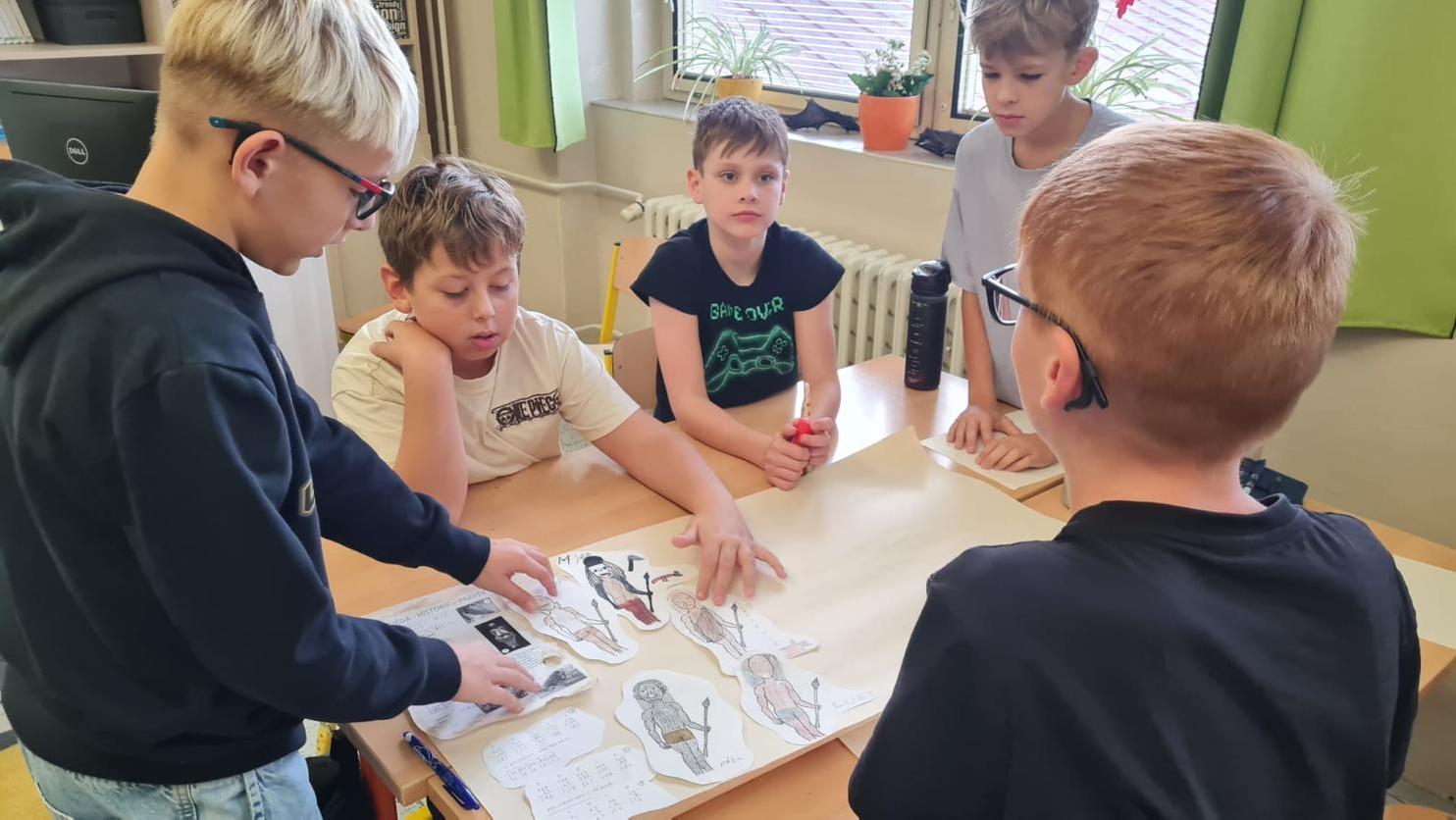 Užili jsme si období pravěku ve všech hodinách - luštění tajenky, matematický kvíz, návrh oblečení pro pračlověka a vše jsme zakončili v muzeu zážitkovou přednáškou. Překvapila nás velikost stoličky od mamuta, dokonale ostrý pazourek a spousta zajímavostí. Ze všech sil jsme se pokusili namlít mouku, ale na koláč to opravdu nestačilo:)