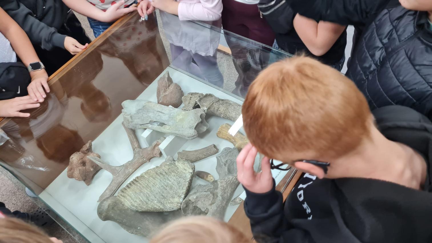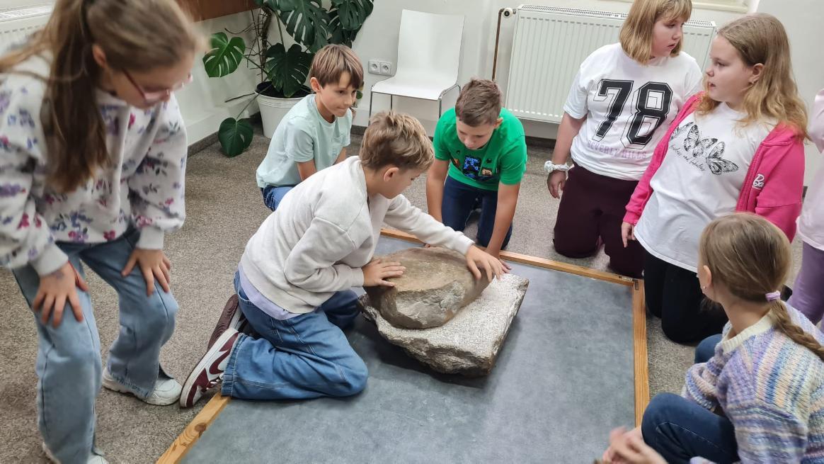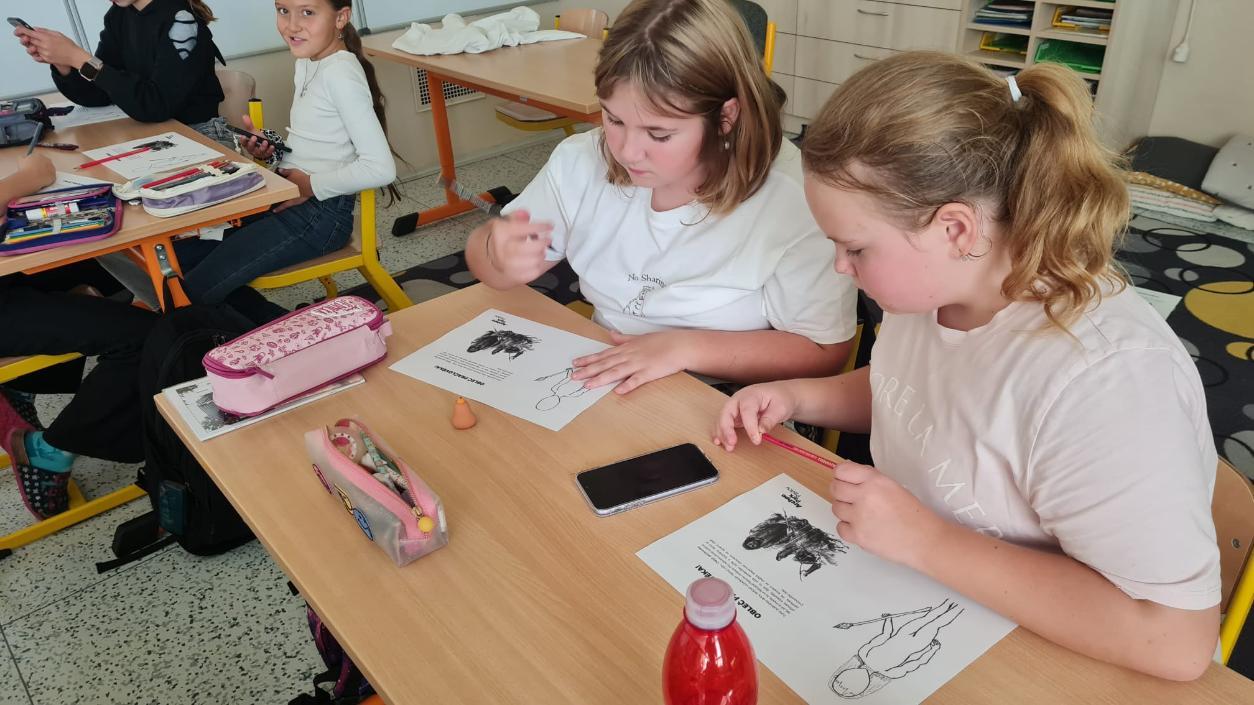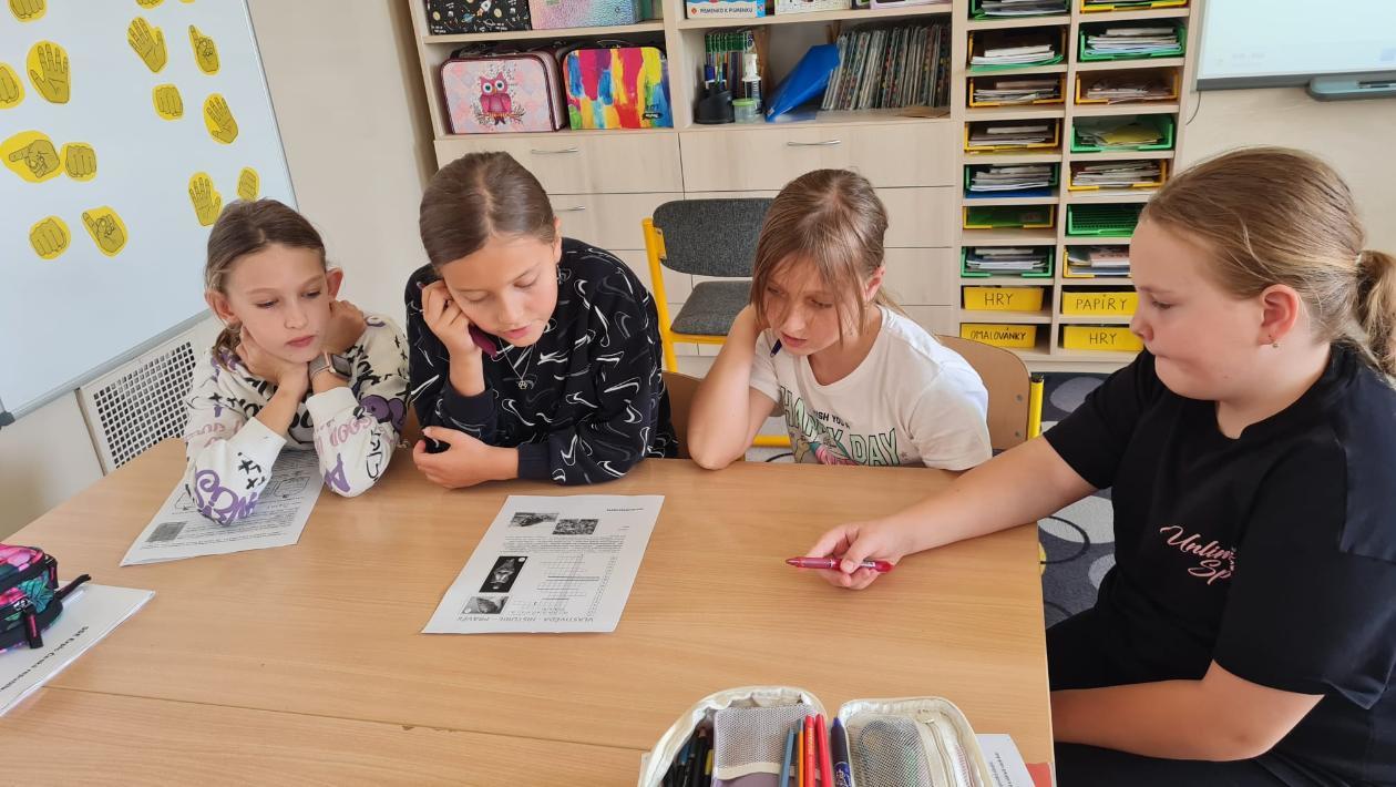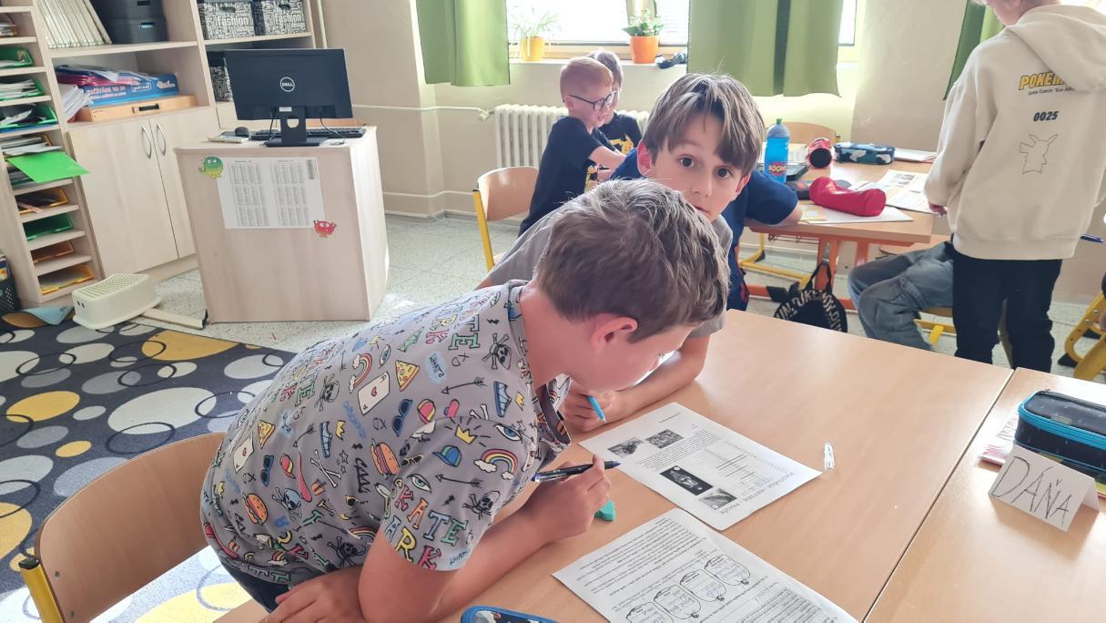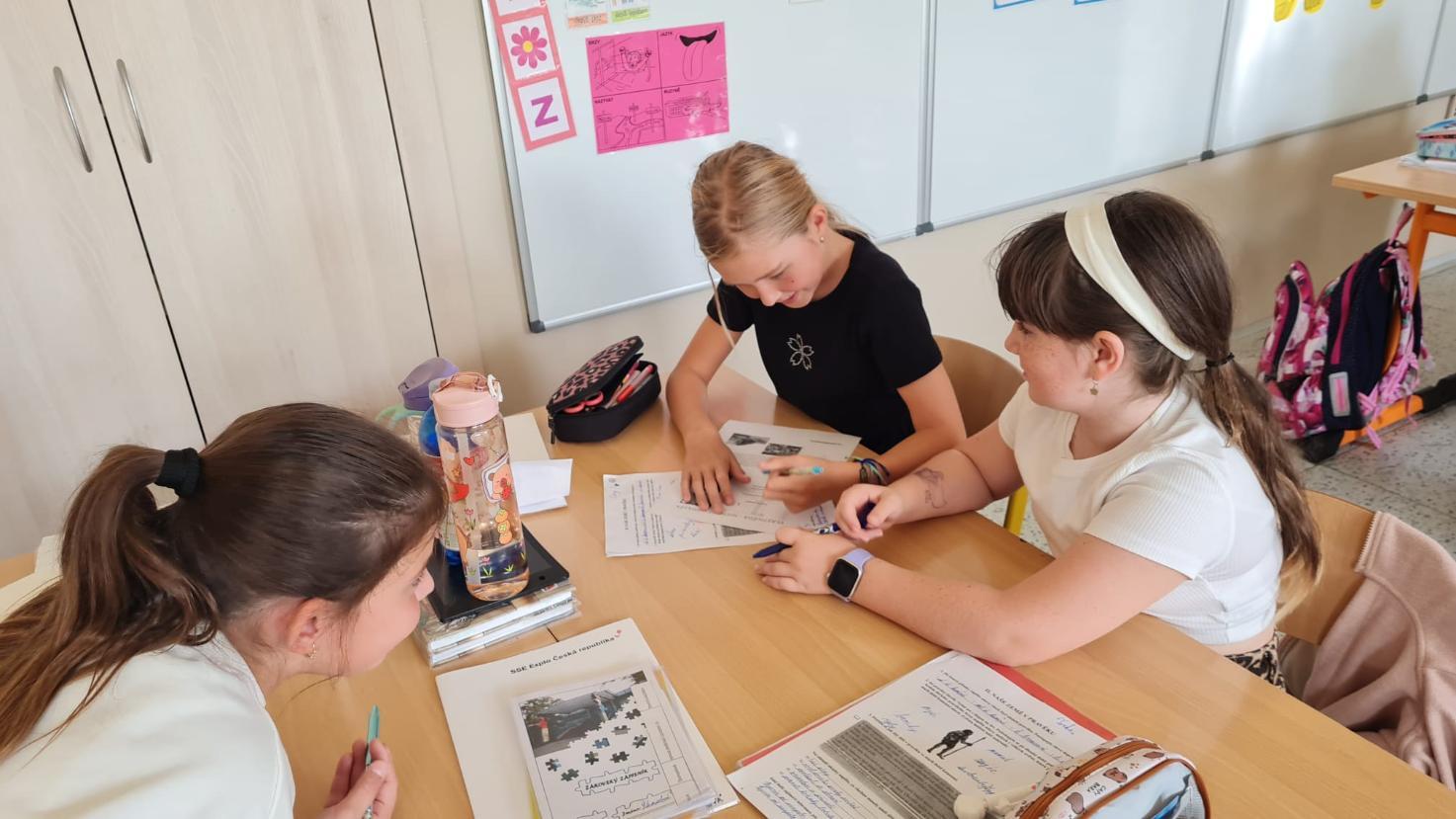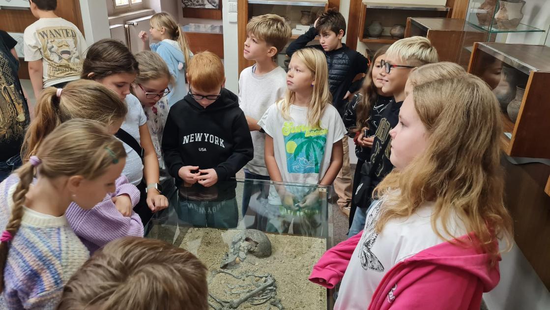 Užili jsme si období pravěku ve všech hodinách - luštění tajenky, matematický kvíz, návrh oblečení pro pračlověka a vše jsme zakončili v muzeu zážitkovou přednáškou. Překvapila nás velikost stoličky od mamuta, dokonale ostrý pazourek a spousta zajímavostí. Ze všech sil jsme se pokusili namlít mouku, ale na koláč to opravdu nestačilo:)