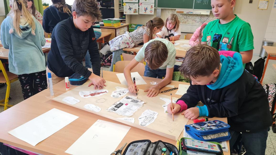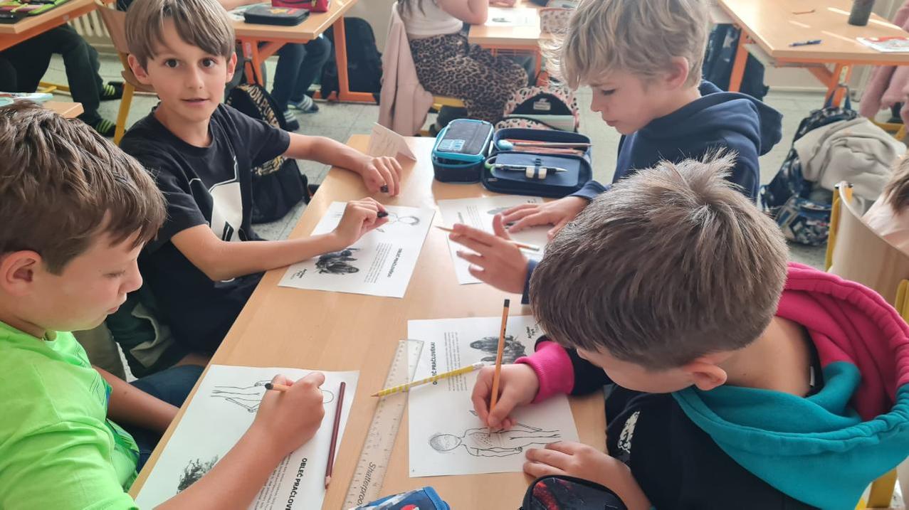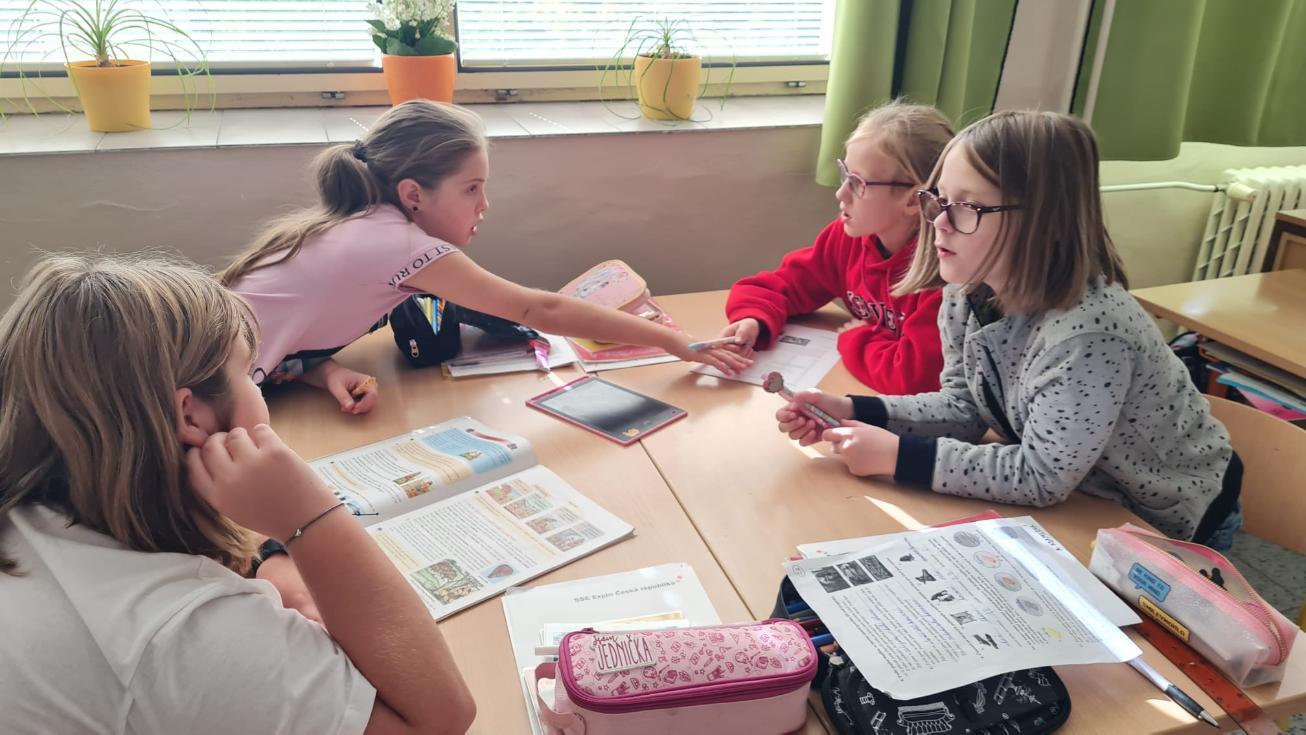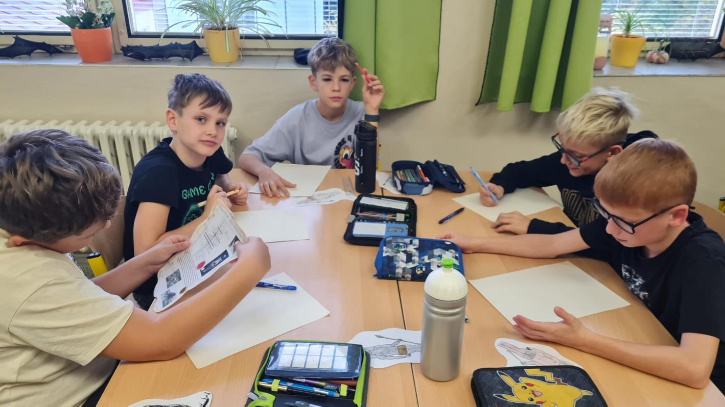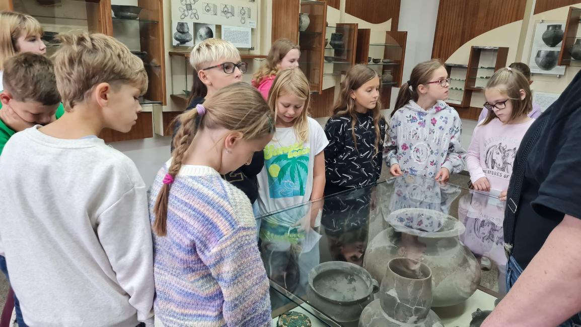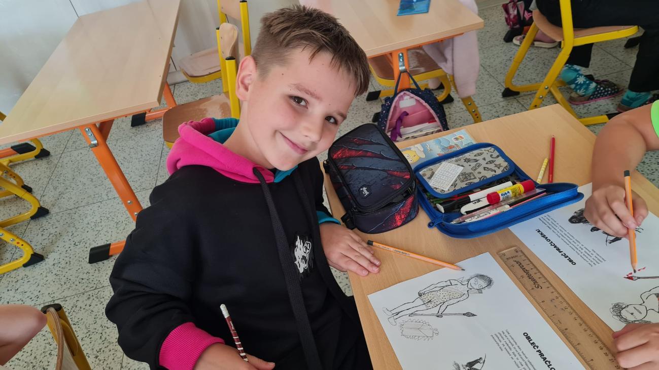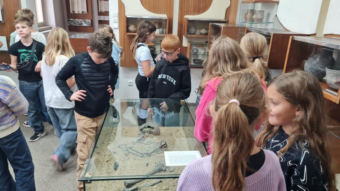 Užili jsme si období pravěku ve všech hodinách - luštění tajenky, matematický kvíz, návrh oblečení pro pračlověka a vše jsme zakončili v muzeu zážitkovou přednáškou. Překvapila nás velikost stoličky od mamuta, dokonale ostrý pazourek a spousta zajímavostí. Ze všech sil jsme se pokusili namlít mouku, ale na koláč to opravdu nestačilo:)