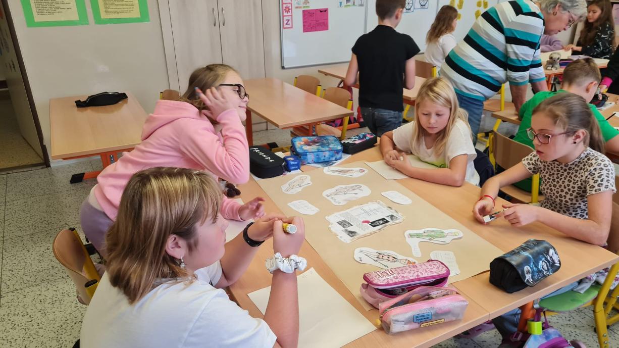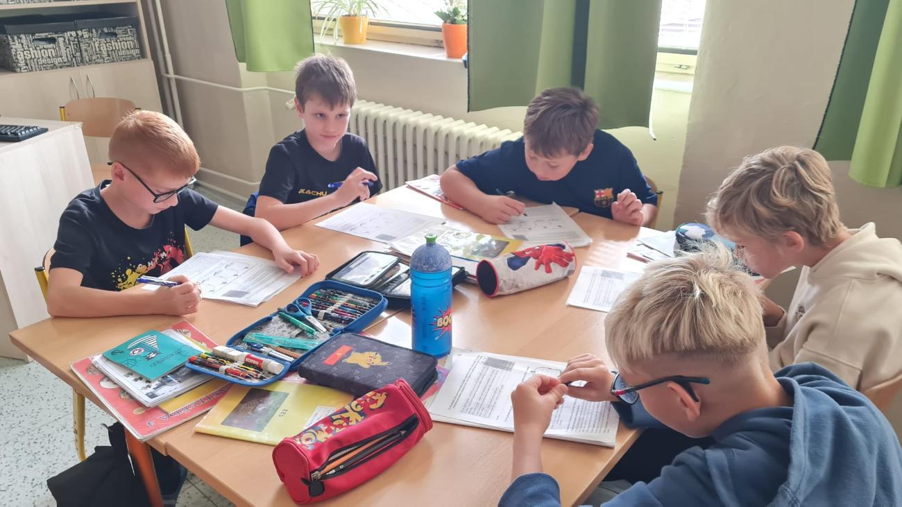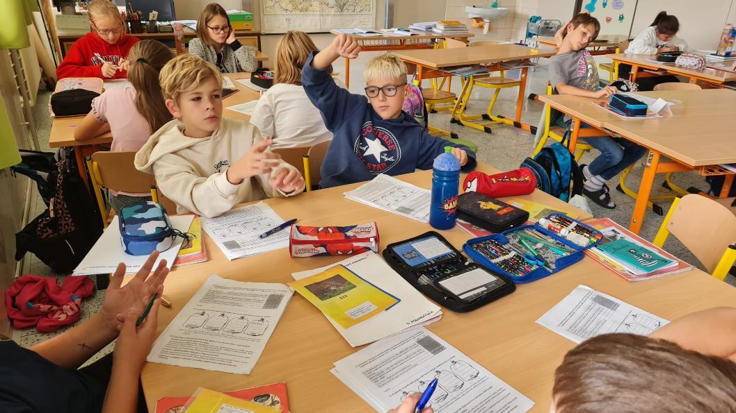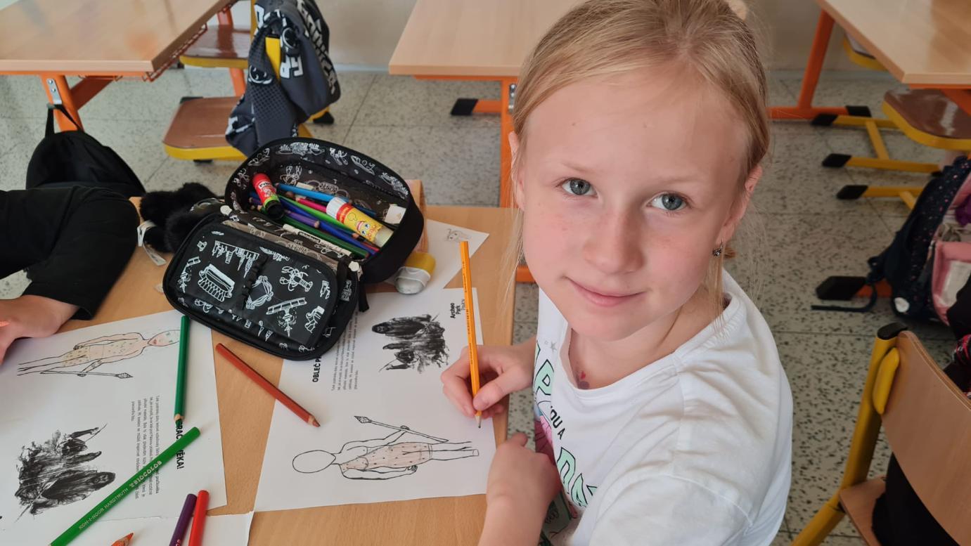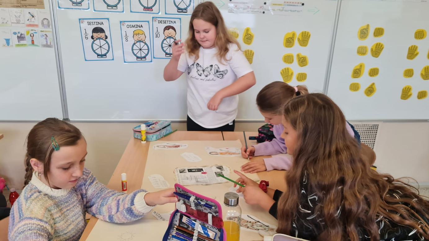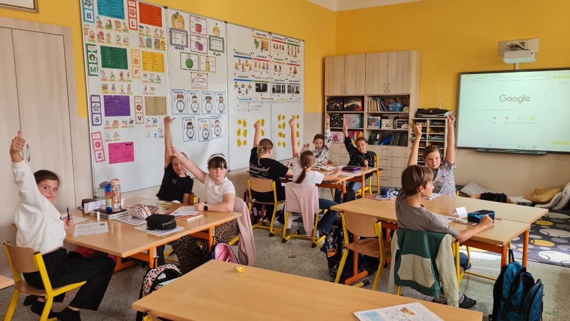 Užili jsme si období pravěku ve všech hodinách - luštění tajenky, matematický kvíz, návrh oblečení pro pračlověka a vše jsme zakončili v muzeu zážitkovou přednáškou. Překvapila nás velikost stoličky od mamuta, dokonale ostrý pazourek a spousta zajímavostí. Ze všech sil jsme se pokusili namlít mouku, ale na koláč to opravdu nestačilo:)