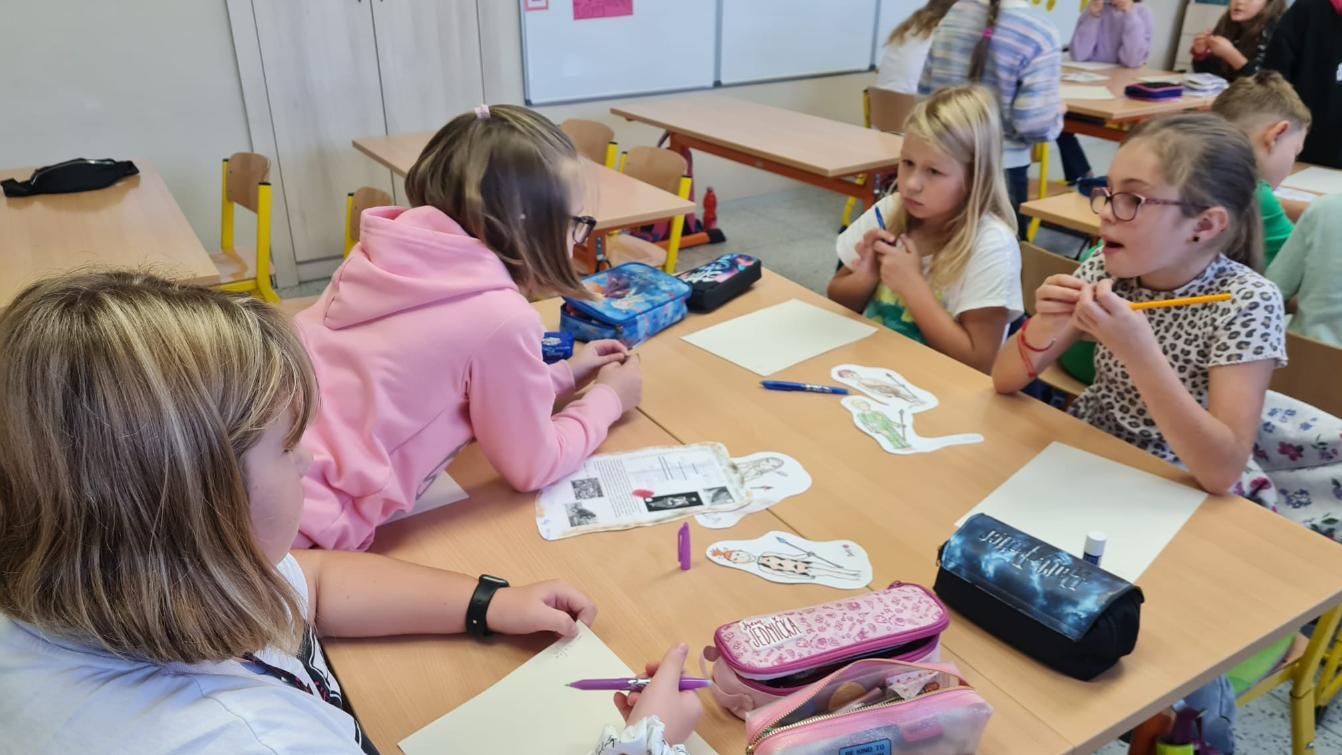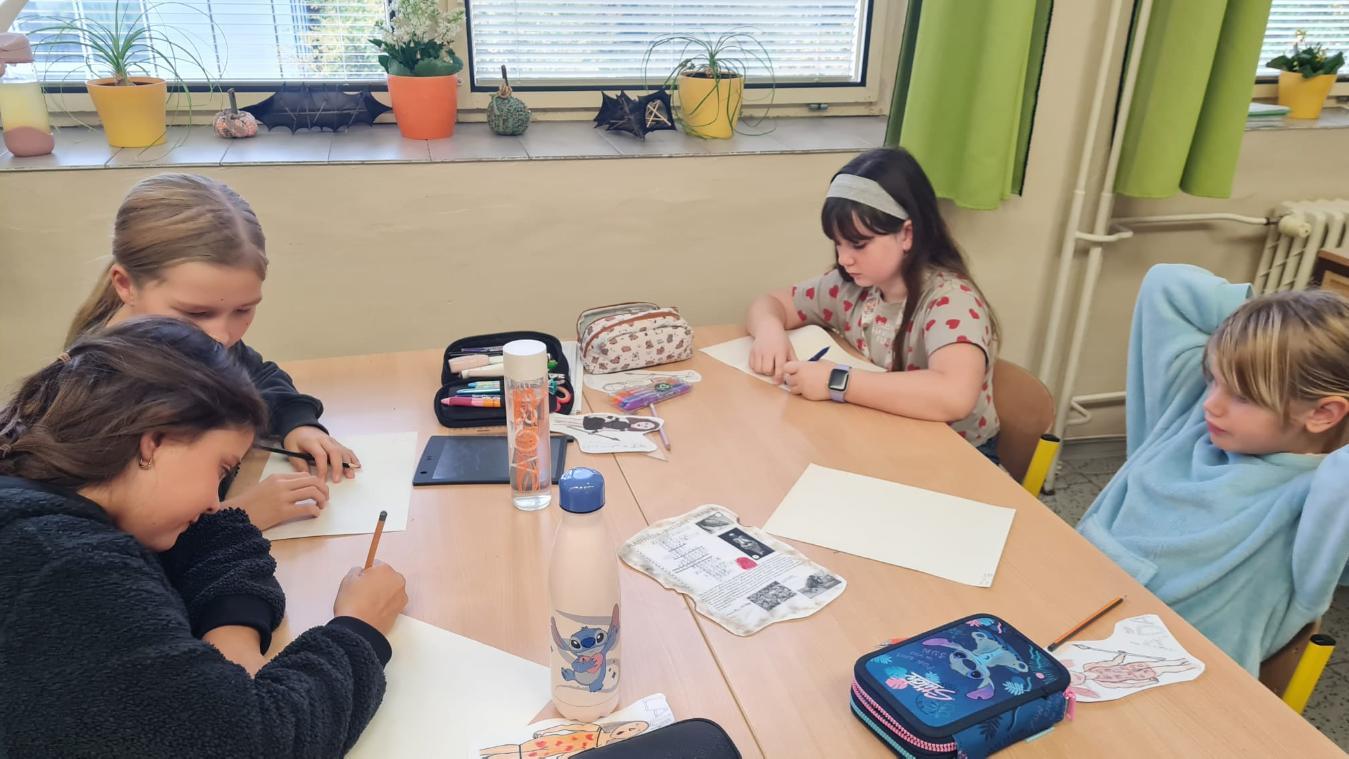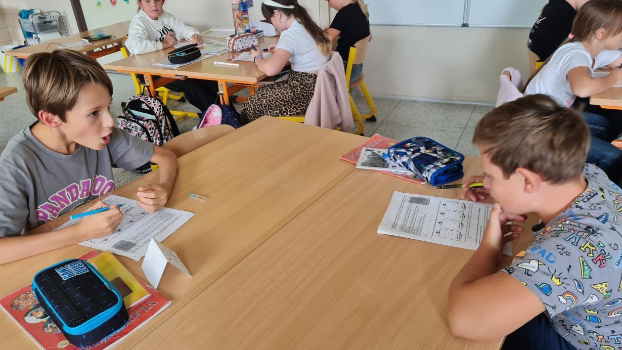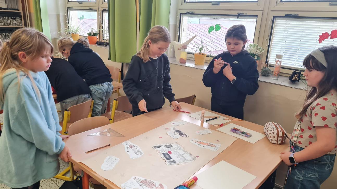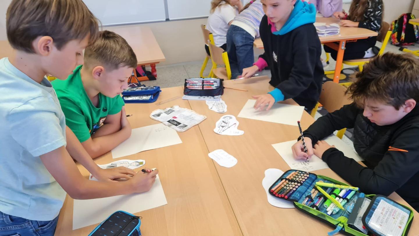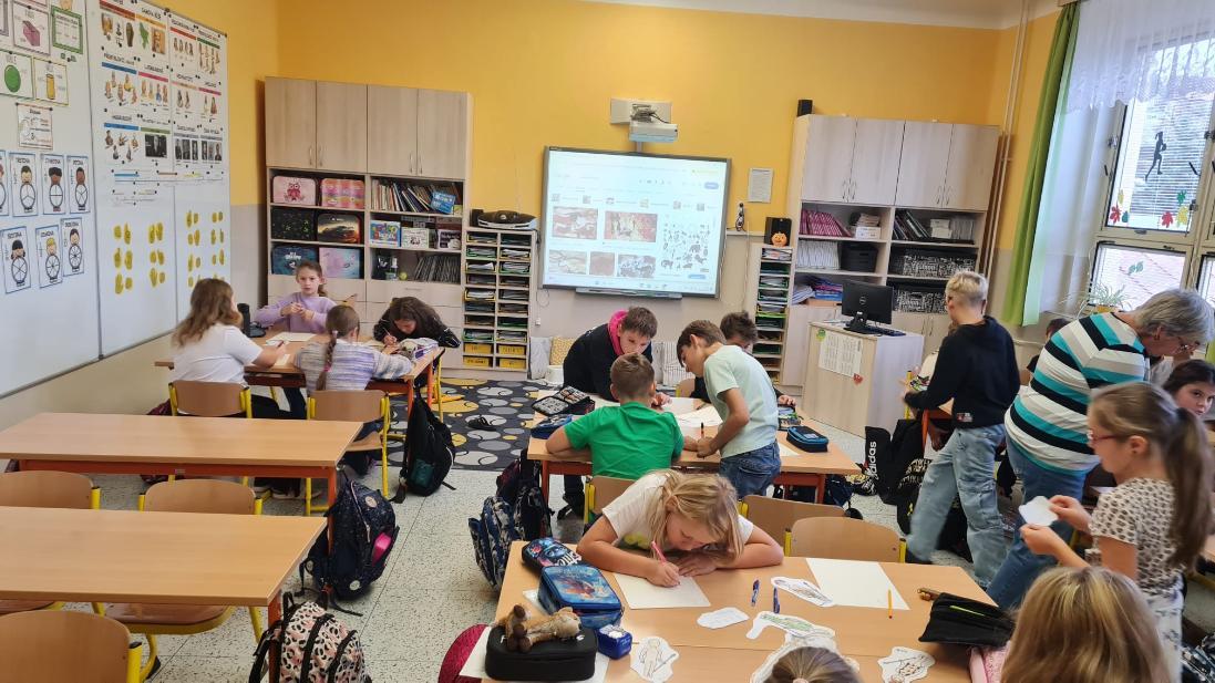 Užili jsme si období pravěku ve všech hodinách - luštění tajenky, matematický kvíz, návrh oblečení pro pračlověka a vše jsme zakončili v muzeu zážitkovou přednáškou. Překvapila nás velikost stoličky od mamuta, dokonale ostrý pazourek a spousta zajímavostí. Ze všech sil jsme se pokusili namlít mouku, ale na koláč to opravdu nestačilo:)