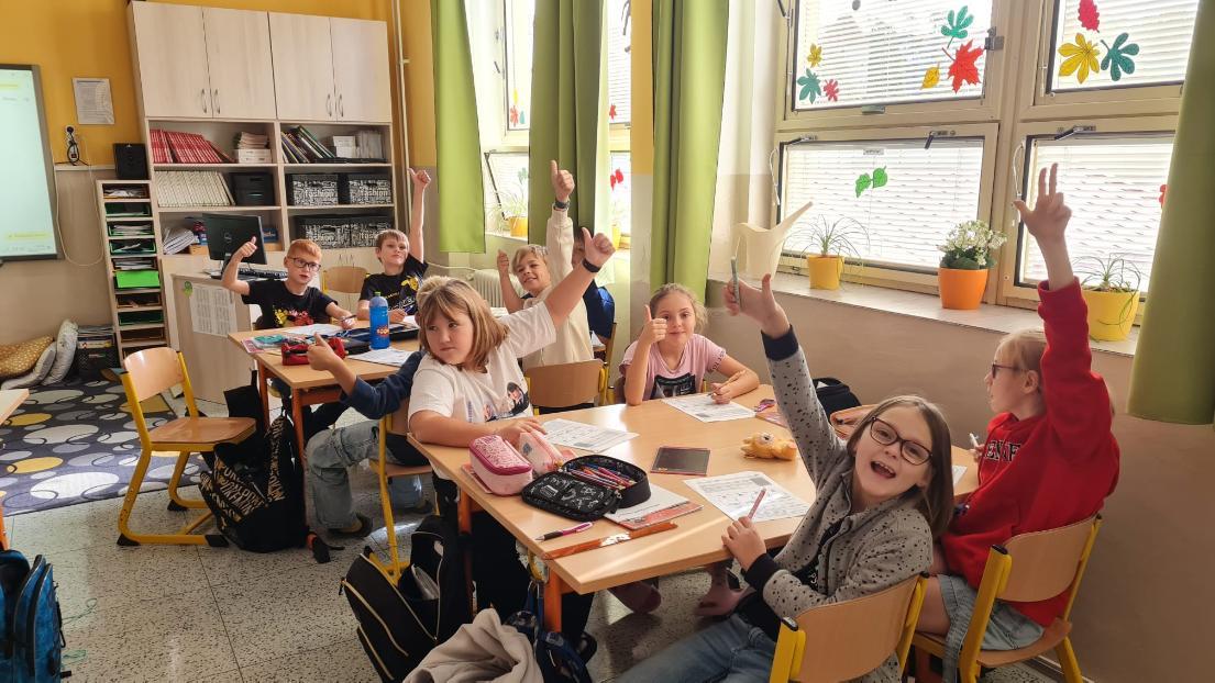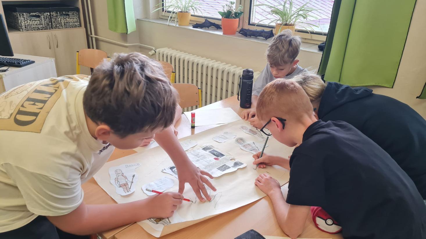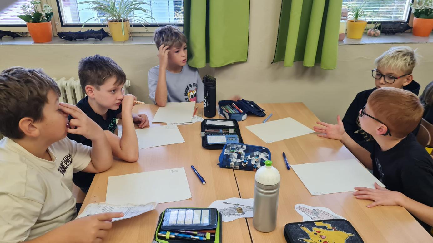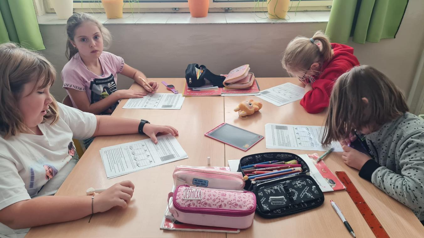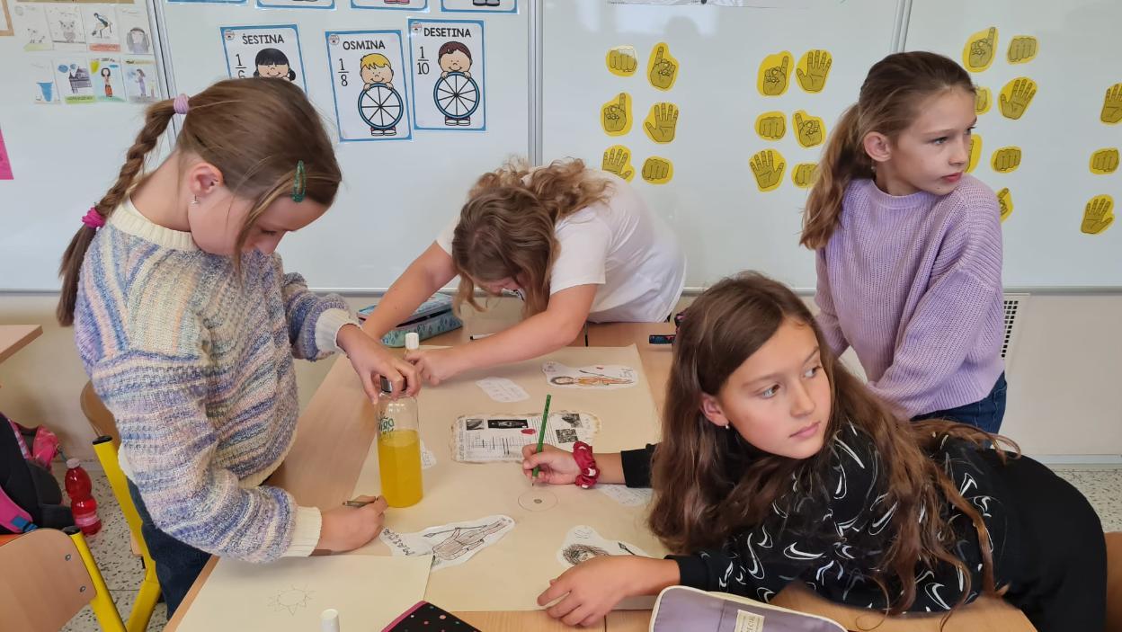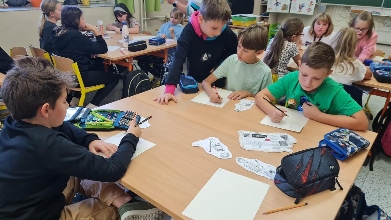 Užili jsme si období pravěku ve všech hodinách - luštění tajenky, matematický kvíz, návrh oblečení pro pračlověka a vše jsme zakončili v muzeu zážitkovou přednáškou. Překvapila nás velikost stoličky od mamuta, dokonale ostrý pazourek a spousta zajímavostí. Ze všech sil jsme se pokusili namlít mouku, ale na koláč to opravdu nestačilo:)