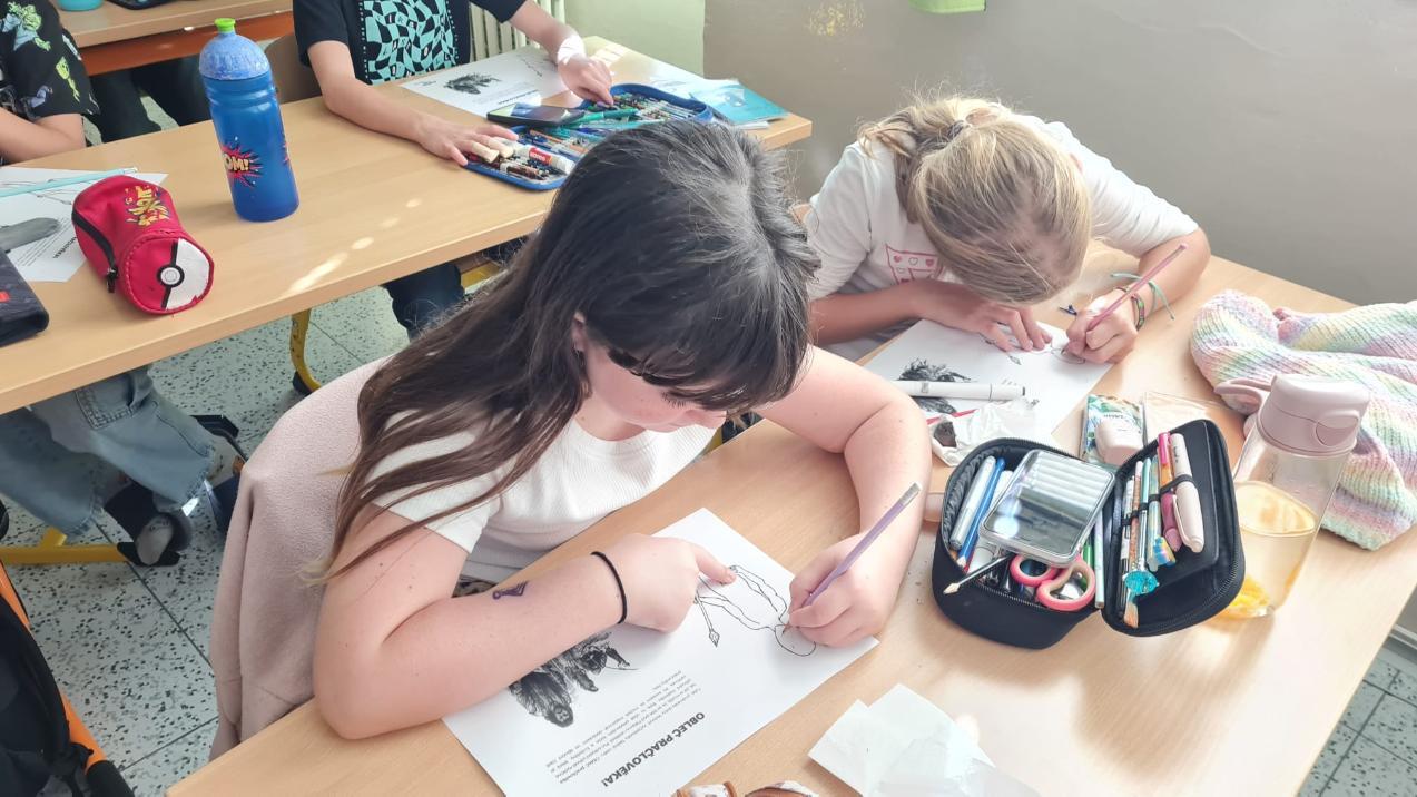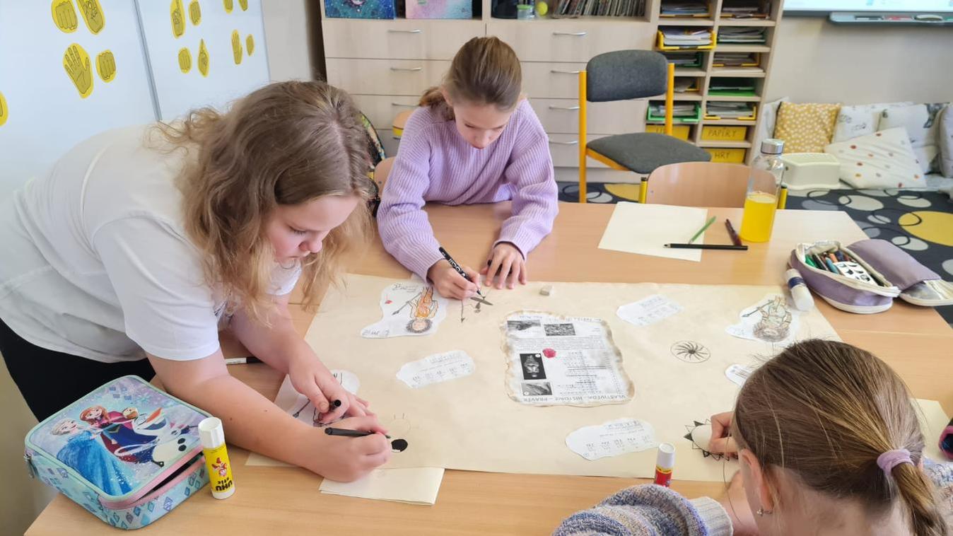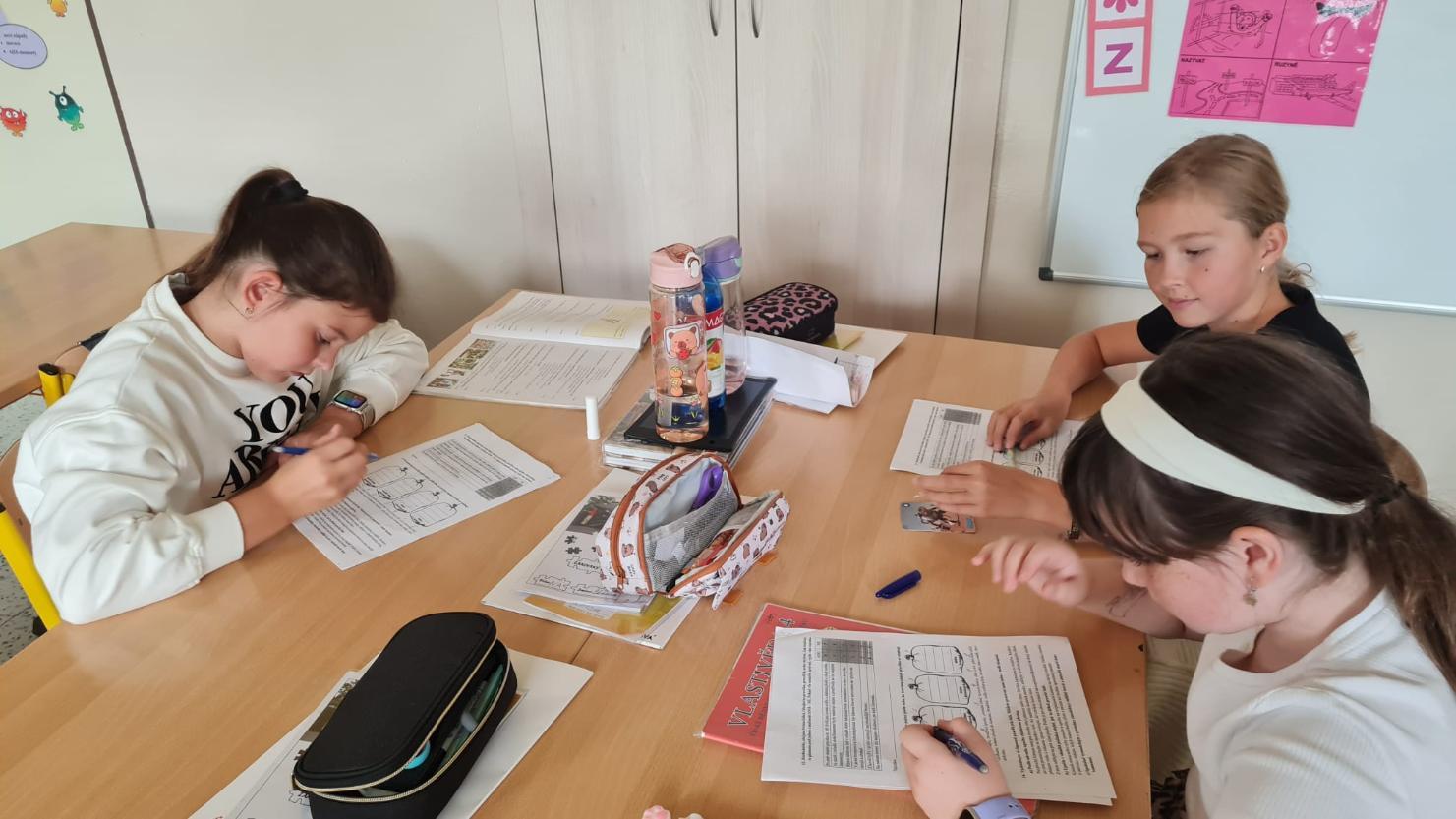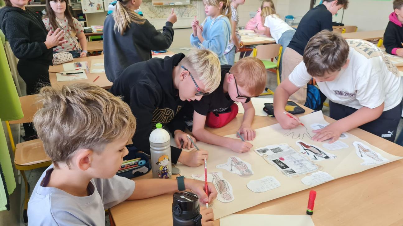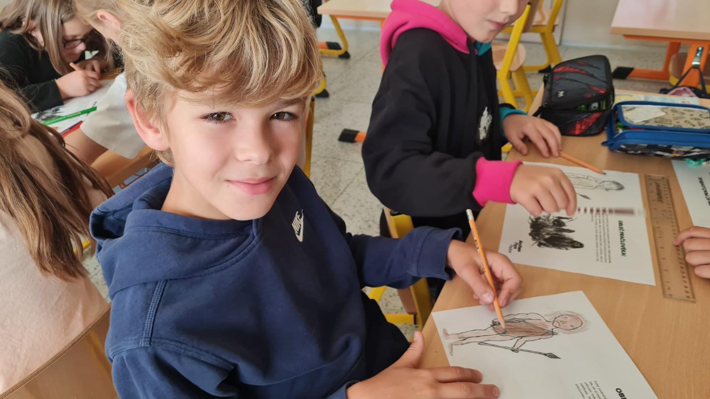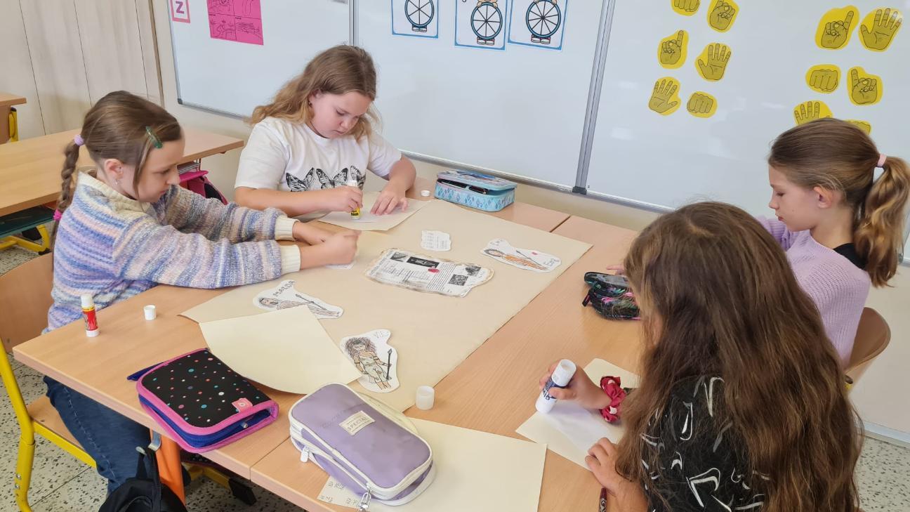 Užili jsme si období pravěku ve všech hodinách - luštění tajenky, matematický kvíz, návrh oblečení pro pračlověka a vše jsme zakončili v muzeu zážitkovou přednáškou. Překvapila nás velikost stoličky od mamuta, dokonale ostrý pazourek a spousta zajímavostí. Ze všech sil jsme se pokusili namlít mouku, ale na koláč to opravdu nestačilo:)